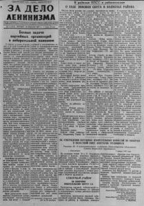 Пролетарии! всех стран, соединяйтесь! ЗА ДЕЛО ЛЕНИНИЗМА Орган Северного РК Коммунистической партии Советского Союза и районного Совета депутатов трудящихся Новосибирской области № 4 (1915) ЧЕТВЕРГ, 10 ЯНВАРЯ 1957 г. | Цена 10 коп. Боевые задачи партийных организаций в избирательной кампании В городах и селах области, ка к и по всей Российской Федерации, развертывается подготовка к выборам в местные Советы. Начало этой важнейшей политической кампании совпало со знаменательным событием в жизни советского народа—завершением работы декабрьского Пленума ЦК КПСС. Его решения направлены на новый мощный подъем производительных сил, умножение экономического могущества и оборонной мощи нашей страны, на дальнейшее повышение благосостояния советского народа. Выполнение решений Пленума является жизненной потребностью страны, выражением воли всех трудящихся. В деревне избирательная кампания совпадает с ответственным периодом в сельском хозяйстве— зимовкой общественного скота и подготовкой к весеннему севу. Перед коммунистами села стоит задача — мобилизовать творческие силы колхозного крестьянства на то,чтобы в зимнее время не только не снизить, но, наоборот, дать значительный рост продуктивности скота, выполнить и перевыполнить обязательства перед государством по поставкам молока, мяса и других продуктов животноводства. Дело чести механизаторов и полеводов — завершить подготовку техники и семян, полностью выполнить план зимних агромероприятий и тем самым создать условия для получения в будущем году еще более высокого урожая. Все эти задачи будут тем успешнее решены, чем оперативнее партийные организации развернут широкую и высокоидейную по содержанию про- пагандистско - агитационную работу ка к на предприятиях, так в особенности по месту жительства трудящихся. Партийные организации имеют возможность быстро, оперативно укрепить агитколлективы свежими силами п направить их непосредственно в цехи и бригады, в дома и квартиры трудящихся, в агитпункты, красные уголки, общежития. Надо, чтобы к избирателям шли не только так называемые рядовые агитаторы, но и руководители предприятий и учреждений, директора МТС и совхозов, председатели колхозов, заведующие фермами и бригадиры, партийные и советские работники. Наши руководящие кадры— наиболее политически зрелые, теоретически подготовленные люди. Они могут с большой глубиной и доходчивостью донести до трудящихся решения партии, великие идеи марксизма-ленинизма. Повседневное общение руководящих работников с населением еще более укрепит связи партии с массами, поможет парторганизациям мобилизовать творческую энергию масс на борьбу за осуществление практических задач хозяйственного и культурного строительства. Понятно, что, расширяя ряды агитаторов и пропагандистов, привлекая к политической работе новые силы, партийные организации не могут забывать о том, что главное в пропагандистско-агитационной работе — содержание, её направленность, идейная глубина и партийная боевитость. Особенную непримиримость, большевистскую принципиальность обязаны проявлять наши агитаторы и пропагандисты в разоблачении реакционной сущности буржуазной идеологии во всех ее проявлениях. В беседах, лекциях и докладах надо подчеркивать, что всем историческим опытом Советского государства, 