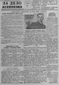 - Пролетарии'' всех стран, соединяйтесь) ЗА ДЕЛО ЛЕНИНИЗМА Орган Северного РК Коммунистической партии Советского Союза и районного Совета депутатов трудящихся Новосибирской области Развернулось социалистическое соревнование в колхозах, МТС и на предприятиях района за достойную встречу дня выборов. Пожелаем колхозникам и рабочим успехов в их благородном труде. № 13 (1924) j ВОСКРЕСЕНЬЕ ! ю ! ФЕВРАЛЯ 1957 г. Цена 10 коп. I НАВСТРЕЧУ ВЫБОРАМ В МЕСТНЫЕ СОВЕТЫ ► СЕССИЯ ВЕРХОВНОГО СОВЕТА СССР 5 февраля в Москве, в Б о л ь ш о м Кремлевском дворце, начала работу шестая сессия Верховного Совета СССР. В 10 часов утра вод председательством депутата В. Т. Л х т о а а в ц н С и о о с г ю а о за с С о о с В в т е е о р т я х а л о о в С с н С ь о С г Р з о а . с С е В о д в а е н 1 т и а 3 е ч С С а С с о С о в Р в е , та о н тк а р Н к ы а о ц л т и о о с о р ь н ом а з л а ь п с н р е о д е с д а т н с е е и й д е ат С е В о л е н ь р е ствовал депутат П. П. Лобанов. Депутаты и гости тепло встретили присутствовавших на заседании тозарищей Н. А. Булганина, К. Е. Ворошилова, Л. М. Кагановича, А. И. Кириченко, Г. М. Маленкова, А. И. Микояна, В. М. Молотова, М. Г. Первухина, М. 3. Сабурова, М ди . н А ов . а, Су Д с . ло Т в . а, Ш Н е . пи С л . о Х в р а, ущ Н ева М . . Л Ш . ве И рн Б и р к е а ж , н А ев . а, Б. II А . р А и . ст М о у в х а ит и Н. И. Беляева. Палаты утвердили полномочия депутатов, вновь избранных в сс м и е и сто и в п ы о б р ы яд в о ш к их е . е Т р а а к б ж от е ы б . ы В ла по у в т е в с е т р к ж у де д н н а я по с в е е с с с т и к и а в д к н л я юче с н е ы следующие вопросы: в д е а н т н е о л м ьс 1 2 т б . . в ю а О 0 д б ж о е п о б т л т е а н у н с е С е т с С р ен С о р й и Р а и с з т в н в к и а е ти в 1 с е я у 9 д д 5 е н 7 о н а в и р г ю о о с д д о н с . ю о о з ю г н о з ы н х х ы о х з р я р е й е с с п с т п у в у б а б л л и и и к к , гос з п у а р д к и а о н р н я с о т тия гражданского, уголовного и процессуального кодексов. ш ри е т н о и р я иа 3 в л . о ь п н О р о б о г с о о о в т у н с е о т с б р е л о н а й и с с и т т н в о к а г . о ве и ден к и р ю аев с о о г ю о зны а х дми р н е и с с п т у р б а л т и и к вно- р т а е з р р е4. Утверждение Положения о Верховном суде СССР, 5. Избрание Верховного суда СССР. 6. Утверждение Указов Президиума Верховного Совета л С и С т С и Р к . и С 7 о . С в о е В в т о е п т Н р с а к о ц о сы и го он м С а е л о ж ю ь д н з у о а н с . а т р е о й д , н к о р г о о ме п т о о л г о о ж , ен в и кл я ю и чил в в неш по н в е е й ст п к о у дня вопрос об образовании эконод ической комиссии Совета Национальностей. (ТАСС). Обращаемся ко всем дояркам и скотникам района 1т ш & я п ш тшшшт « in шшшттштт Кандидаты в депутаты районного Совета АюбовЬ Викторовна ЮХНЕВИЧ Л бовь Викторовна Юхневич р ск о о д й илась об в лас 1 т 9 и 2 , 3 го Б д е у ло в рус М ск и о н й ССР, в семье крестьянина. р те е л е В я х м ал 1 и а 92 Л 8 в юб С г о о е в в д ь е у р В н в и ы м к й е т с о т р е о р в а с н й а о р н о п д е и в с в д е е у л р о н о о к й Н он о с в ч р о и е - л д Т а н ро е 8 й иц к к л . ш а В с к с о о л 1 в е 93 и 8 в п С го о е ступила в Анжеро-Судженскую ф лу е , ль к д о ш то ер ру ск ю о- о а к к о у н ш ч е и р л с а кую в ш 19 к 4 о 2 г в о ер д н у ы и й б р ы ай л о а н. направлена в Сет в ор Д о Н в о н о в а 1 о 9 - р 4 Т а 7 р б о о и г т о ц а д к л а о а й Л ф ю у е б ч л о а ь в с д ь т ш к е о р В в о о и м й к больнице. Один год работала с ц з п т а и у о в н н я е к с д щ к т у о о е ю й м е щ . в е С р с й е е м 1 с Ф т я 9 р ё 4 о д р 8 й о а р б г о о о в т в д с а а к е С и т е м в п м е о м р е е д н н д и о а й районной больнице. с к 