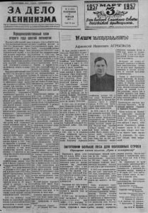 2 ЗА ДЕЛО ЛЕНИНИЗМА 17 ■февраля 1157 года Отчёты и выборы в колхозах НА ДОС ТИ ГН УТОМ Н Е УСПОКАИВАТЬСЯ Два года назад в колхозе «Новая жизнь» было такое положение, когда на общее колхозное собрание собирались по три дня. С' огорчением вспомнили об этом колхозники на отчетном собрании 14 февраля этого года, которое началось в назначенный день и час. Один этот факт говорит о многом. Было время, когда не верили колхозники, что завтра будет лучше, чем сегодня, не верили уже клятвам и обещаниям руководителей колхоза, которые обычно не сдерживали своего слова, без внимания относились к людям. Очень правильно об этом с ка зал на собрании колхозник т. Аверченко: «Несколько лет назад у меня семья состояла из трёх человек и я не мог иметь даже самого необходимого, а сейчас у меня семья одиннадцать человек, а на жизнь я не обижаюсь». К руководству пришел новый человек—тридцатитысячник Ф. И. Лесковский. Было избрано работоспособное правление. Больше стало внимания рядовым труженикам, по-деловому решаются все вопросы. И теперь колхоз «Новая жизнь» не занимает 14 — 16 место в соревновании колхозов по тем или другим показателям, во многом его можно поставить в пример некоторым другим колхозам. С глубоким анализом хозяйственной деятельности за 1956 год и задачами на будущее выступил председатель колхоза т. Лесковский. Против 1955 года доход увеличился на 158,5 тысячи рублей. Конечно, не так уж и намного, но против того, что было—это уже шаг вперед. В минувшем году в два раза увеличился в 1ЛОВОЙ сбор зерна по всем культурам, затраты на получение центнера хлеба снижены. Колхоз полностью обеспечил себя семенами. Их хватит даже в том случае, если МТС поможет разработать новых земель 250 гектаров и посевная площадь возрастет до 1700 гектаров. На 220 литров увеличен надой молока в 1956 году про тив 1955 года и в два раза против 1954 года. План молокопоставок выполнен, 334 центнера продано в закуп. На две тысячи центнеров больше было затотовлено грубых кормов и на 300 тонн силоса. В 1956 году колхозники заготовили 1500 кубометров леса, который пошел на строительство производственных и культурные зданий, а также на капитальный ремонт и строительство 24 домов колхозни кам. Получен доход в хозяйство от леса более 100 тысяч рублей. В этом году заготов лено леса до 2500 кубометров. Большая часть его пойдет на строительство скотных дворов, детских яслей, которые намечено иметь в трёх бригадах, домов колхозникам. Некоторая часть продаётся с тем, чтобы продолжать беспрерывно ежемесячное авансирование колхозников, как и было в прошлом году. При этом следует сказать, что размер ежемесячного аванса на этот год увеличен. Намного улучшилась трудовая дисциплина. Минимума трудодней не выработали без уважительных причин единицы. Большинство же колхозников трудятся добросовестно. Быработали в два раза больше трудодней иротпв установленного минимума, хотя надо с к а з а т ь , что он установлен немалый: 420 трудодней для мужчины и 300 для женщины, не имеющей детей меньше 8-летнего возраста. Заслуженным авторитетом пользуются такие работники животноводства, как дояр.ги А. Плотникова, В. Волкова, зав. фермой В. Васильева, пастухи М. Голубев, М. Нургалиев, И. Андреев, рядовые колхозники Т. Куминов, М. Матвеев, Александр и Пелагея Матвеевы, П. Кириенко и многие, многие другие, о которых с большим теплом говорил в своём д