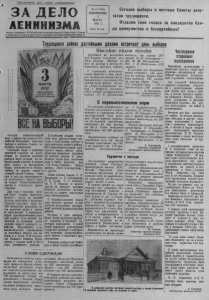 Пролетарии всех стран, соединяйтесь/ I ЗА ДЕЛО ЛЕНИНИЗМА Орган Северного РК Коммунистической партии Советского Союза и районного Совета депутатов трудящихся Новосибирской области № 19 (1930) I ВОСКРЕСЕНЬЕ | 3 МАРТА 1957 г. Цена 10 коп. I Сегодня выборы в местные Советы депутатов трудящихся. Отдадим свои голоса за кандидатов блока коммунистов и беспартийных! Трудящиеся района достойными делами встречают день выборов Сегодня знаменательный д си ен й ь ско в й жи Ф з е н д и ер т а р ц у и д и я : щи п е р с о я хо Р д о я с т в п ы ут С б а о о т в р о е в ы тс в к т и р м е у е д с я л т щю ны д и и е хся С с о . в ч ет у ы вств д о е м ж за е к н о и н я ной со гор в д р о е с м ти ени за про д ш ос л т ы и х в б св ы и о р б и а о т р е о л в г ь о н и л ы д о е у са т уч с а е з с г а т о к д и н к я а и нд о н т и а д д а а ю и то т з в б т л и о й к н а ых, ко з м а мун в и е с р т н о ы в х и с б ы е н сп ов ар и дочерей нашей Родины. Этим д с е я щ а е с в п о и л к о р е ч у щ е г н е но р К с а т о з ь м д м е н у м а н о ш и н с е с т г т и о р ч и е н р с а у к р е о о т й п т а е р л Д т ь и в с а т и ва г и . ода Со с ве п т р с о к ш ог л о ых пр в а ы в б и о р ж о е в нн б о ы г л о и т го р д у а д м а и за сам м оо о т щ ве н р ы й подъем экономики и культуры. с У т т о с и п й е п ш п р я н и т о н и е л в с е л ы т и п к о и л р , н ад е р н и а о дос и п т л н а ы г н а е зе в т п е ы я п н н е о и н й и выю п п е о р п л в р н о о е г и о н з и в г ю о о д д с а т и в ш ен п е н е с ы р т е о х в й ы за п д о п а л я ц з ж т я и и е й а л н л с е и т и т я в с к м а т и . и , ч н е п а с В ш о к к е о л о г е ю г о р ч о и с м е с в н о л ш ы р ь и е с с в к м ь н о о г д в о в о ан с х т и с и о о е б за оро д в ос и той в ну ч ю ест в ь ст 4 р 0 е - ч й у го д д н о я вщ в и ы в щ ы иес В я ел с ик п о е г р о вы О х кт д я н б е р й я, и тр эт у о д г я о года добиваются успехов. х т о и з л Д ы и ос д и т е о н й к ь н о ы л в х м ы о и з б н о и д ор к е в л и а т , м а р к и а ж б е о в чи с к т о е р л и е интеллигенция вашего района. н М т и о Т р з С н ат о з о г а о р к ы а п н а п ч р р и к е в к а а р , ю а т с м н н р о о е г м и о е т н р т уд т м я р е т а х с к а я на вывозке кормов и леса. Полным ходом идет заготовка леса в таких колхозах, как «7-й съезд Советов», «Новая жизнь», «Путь к коммунизму» и других. Наши лучшие доярки Е. И. Коплярова, А. Я. Плотникова, П. К. Боэва, 0. Р. Демчихи- на, Е. И. Иванова и многие другие за февраль надоили большое .количество молока, многие из доярок выполнили свои обязательства. С перевыполнением плана двух месяцев пришли к дню в ят ы и б й оро м в ес к т о н л о л й ек п т р и о в м ы ышл п е р н е н д о п с р т и и района. Сегодня, в день выборов, б н в у о е д т е с т к е а д я в и н н о д с в т е ь в м о п о р к и о р д а е т п м и од о я л н , и ст н р с н и о р н о о в в с а о о й силой выражено единодушное о н ск д е о о й б й р п е п о н а л и р и е т т и и в и н ки е и ш С н К о ей в о е м т и м с у к в н о н и г у о с т т р п и е р ч н а е вительства. рем То в ва н р а и ш щ и и С и о з в б е и т р ы ат д е о л с и т ! ой В н ы ы б х е ! СЛОВО СДЕРЖАЛИ Работники отдела культуры на совещании в начале февраля брали обязательство месячный план ,по кинообслуживанию выполнить не менее как на 150 процентов. Слова не разошлись с делами. Хорошими трудовыми показателями встречают механики день выборов. Киномеханик Василий Ипатьев выполнил месячный план на 202 процента, Сергей Мизев — на 200, Молот Козлов—-на 160 процентов. В первый месяц самостоятельной работы на кинопередвижке молодой механик Герон Хорошилов план выполни