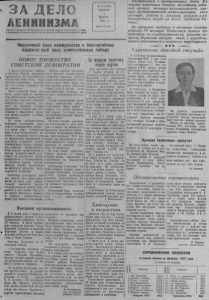 ■ л I г п I П , I и С и И п Н и Ш е С Ь I З А Д Е Л О ЛЕНИНИЗМА Орган Северного РК Коммунистической партии Советского Сс юза и районного Совета депутатов трудящихся Новосибирской области № 20 (1931) | ЧЕТВЕРГ 7 МАРТА 1957 г. Цена 10 коп. ; Нерушимый блок коммунистов и беспартийных одержал ещё одну замечательную победу Поздравляем с наступающим днём 8-е марта передовых доярок, телятниц, чабанов, лучших женщин-механизаторов, лучших представителей интеллигенции, всех женщин района и желаем успехов в их благородном труде на благо любимой Родины. На прошлых выборах в местные Советы избрано 78 женщин. Пожелаем нашим депутатам по-государственному решать вопросы, держать тесную связь с народом, чутко относиться к запросам трудящихся. — — _ * * * -------:— Удостоена вЫсокой награды Н О В О Е Т О РЖ Е С Т В О С О В Е Т С К О Й Д ЕМ О К Р А Т И И 3 мартапроходили выборы в местные Советы депутатов трудящихся. По праздничному р ш ж в м а ы и е е г М , н но о л н н я ж в ы о д с и г е е к е о в л о л п у и с е м л л и т н и а а ы с н р к ц с . а а ы а и ш н т я а и а с м й м и с р и ё , и а л б н ы а н , л л а о о е к з т г у у и о н к в в о г р у л м а о а т сёл, работниками клубов.чтобы как можно красивееоформить избирательные участки, аде лать их уютными, создать с т о р в у а д ни я я щим и ся пр у а с з л д ов н и ич я н д о ля п г р о ’ л ве о сти время в клубах и избах читальнях. По всем избирательным у в л ч о 6 а с ст ь ч к в а а с м у о ст в а г н о у о т л в о р л а е с . о н в н а о н е И и з е в би ре р н а м т я а е ч —л а и т ш о л ко и м и и шл о и тд н а е ва п л р и еры св в о н и ым голо п с о а за выдвинутых кандидатов в депутаты, за лучших людей, н с м д с о к а е о р о е в м а о й о л д е н и а с д п . и т а р з н р Д а и е р н т р у и к и уж я е а и н н ,п т о д р и е й К а с д н с в о а и о е м т м т е о , ь м е в л ё у н й ь ин с е б с г т р в о т л и у а л о ш ч о ка е и и коммунистов и беспартийных, за политикупартии, направ ляющую усилия трудящихся на всемерноеразвитие всего народного хозяйства. Советская демократия ещё- ж р те а е л н з ь и н е о н й а в ш о ла в к с а ёмм св п о а х ё н о и д я и р е . кое в О з р б в г ыы а р н р а ы а г р о а с ю у т д с а я рс у тве н н а н с ой са в м л и а м сти нар и о з д б о и в на основе всеобщего, прямого и равного избирательного права при тайном голосовании. с ц с с о и к и в л е о В е ы й г ы т о с б в и к о с ыи р н т с ы х р е о о к с я я о о г . й р в к а и П р л ж а у с и ш д и о ш с а м з ь н н о , с д а н т е а т е и м р л в о ь е о с д н л о н и о в с с е к е т т щ о т й и р ё араз показал тесное сплочение г н д в р о и о а м е к м р . м в у ы у г , п р о н о л д а н и ч я е т р й ь т п а в а н р ел н ти и у и к ю у X , X ю с ж ъ е п е л р з о а н ти ос з Т м т а ь, к м а о я е ж д п е и о т н л о б д и ы у ит ш т ч ь и ес е к , т ая ол п ь а к а о к т т р и ио в в т т с ж т ы т ы у и р ц О а т г в и б н е о е н л й е л а э , о и т р с С о г о о ки С м д д в е С м а у Р , н г з и . в о г в а л я д к о а о р е с в я н т т л ь о юм д д — е п и р н К р ь ез и о н с у н в о л а ы с д г ь т б р л и т о е е а ров—3 марта. За кандидата в депутаты областного Совета— Степана Васильевича Кемеле- п т ц т в о е а а ро н в — ты ц — т п е а н 9 , р р 9 т о а а й з г п а о о н р л о и к н о ц о а е с г н н о о с т д в е о и л а в С ь . д л о с а о в к т е 9 и т о 9 х а , в 9 — д С 9 п е 9 о п в р ,5 у о е ств О ую б т это п м ро т с а т к ы ж е е , от свид с е е т р е д л ц ь а идущие слова, сказанные и написанные на бюллетенях избирателями. в в ч и е е е т нМ с Ды т н е Т н п ы и С и у , з к е т б и а р т т , а р л а н у п у мыж р и ч е е шн л д в и и у е с ч к т