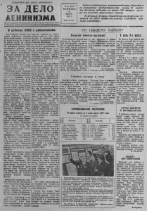 Пролетарии всех стран, соединяйтесь/ tm s v s r a ЗА ДЕЛО ЛЕНИНИЗМА № 21 (1932)" . ВОСКРЕСЕНЬЕ 10 МАРТА 1957 г. Пена 10 коп. Орган Северного РК Коммунистической партии Советского Союза и районного Совета депутатов трудящихся Новосибирской области 1 Задача работников животноводства—бороться за повышение продуктивности скота. В марте мы должны надоить не менее 130 литров молока на каждую фуражную корову. В феврале доярки Гражданцевской фермы получили по 192,5 литра на корову. Следуйте примеру передовых! В райкоме КПСС и райисполкоме ПО НАШЕМУ РАЙОНУ Бюро райкома партии и ио- подком райсовета обсудили итоги соревнования колхозов по надою молока за февраль. По району надой на корову за месяц составил 95,6 литра, л в ч е о то т го ст п в г р е о е н д в н ы а о ш г н о а а ет 3 п 1 у е , р р 5 о и в о л е д и н а т ь ра п . с р о о о шН то этого далеко недостаточно. и ш У т и ь й на г с о п р е р а с и з т д р ь о ос в т о б з о м л о ь з ж а ш н е о . с м т Н е и а с и яц н бо ад л о ь п о с л р о а г в о не г н о и д ю а д с ал ф и ев к р о а л лё х м озы: пр « о 7 ш -й съезд Советов»—78,3 литра, «Путь Сталина» — 71,3 и им. Калинина—60,3 литра. Первенство среди колхозов т с е н л о ь ва и у м д . ерживает сельхозар Калинина тель (председа А. И. Агрызков, тарь парторганизации секреН. И. л Ю о р к к а ин н ) а . к В ор ф о е в в у ра з л д е есь над п о о й дуч м е о н по 145,1 литра. Переходящее з к и о р с м п а Н с о н л а и о к м е о . м в з К а т н а о а л о р м о и с я м н т а и р ё н т а а м й с . я е к с о т м з е а а и к к о о р л л а х х й о оз «Память Ленина» тель т. (председаЧасовников, секретарь парторганизации т. Лосев). Надоено на корову по 130,4 литра. Третье место занял колхоз «Путь Сталина» седатель т. (предОвешков, тарь парторганизации т. секреБелов), получивший надой на корову по 126,9 литра. ств П о рочно удерживает первен Граждгнцевская ферма колхоза «Заря коммунизма». Надой за месяц составляет х к 1 с о о я 9 д м 2 я а , н 5 щ а и е л е э и т р т к о а р р й й а а и с с ф н н п е о а о р е л м к к е о о . з м р н о а а в м у. я ос П т р а ер ё ай т еВторое место разделили Ударницкгя ферма колхоза им. Калинива, получившая на дой 145,6 литра на корову, и Ургульс.чая ферма колхоза «Борьба за мир», Коллектив доярок этой фермы подучил в феврале тоже по 145,6 литра на корову. Хорошо потрудились доярки Образцовской за им. Калин ф и е н р а м . ы П к р о и л р х о о с т молока в феврале л р ти а и в тр н а я а н н в к а а о р р я о к в о у ро с в о п у с о . т в а Н ы в а л с я и 3 е л 0 т с , я 6 л 3 и н 5 п т , а р 4 о дой на Ичкалинской ферме колхоза «Путь Сталина», на 21,1 литра—на Алексеевской и на 20 литров—на Усть-Ур- гульской колхоза «Память Кирова». ка По в вы к с о и л л х а о с з ь ах т : о и в м а . р В н о о р ст о ь ши м л о о л в о а н — и 9 зм 5, а 9 »—пр 9 о 4 ц ,5 ен и та и ,« м З . ар К я ал к и о н м и м н у а т — аё 9 т 3 с ,9 я пр т о о ц ва е р н н та о . сть Низ м к о о л й ока ос в артелях «Память Куйбышева», им.'Кагановича, им. Молотова. б д и о л я Л и м у с ч ь с ш р и д ед о х я и рк р д и е о з : я у р л о ь О к т л а ь р т г а о а й в он п а Р о о д м н о а а новна Демчихина, из колхоза «Заря коммунизма», надоивл ш ё а н я ны н х а ко к р а ов жд п у о ю и 2 з 54 за л к и р т е р п а молока и занявшая первое место в соревновании;Евгения Ивановна Коплярова, из этого р с д я о о ц е й ж м о е т е с с о т к к с о т а о ж а л в в д х л о о я с з й е о а т р , к е о з в р а н н о о в я в ы в а ш ни а з и я а . в м Н т е а о 253 литра. Третье место заняла доярка колхоза «7-й съезд Советов» Антонина Захаровна Ко