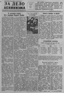 Пролетарии всех стран, соединяйтесь/ ЗА ДЕЛО Оргаи Северного РК Коммунистической партии Советского Союза и районного Совета депутатов трудящихся Новосибирской области ЦК КП СС выражет твердую узе- ренностъ в том, что проведение 40-й годовщины Октября ещё теснее сплотит все народы нашей страны вокруг Коммунистической партии и Советского правительства... ________________________________________________ (Из Постановления ЦК КП СС ) . № 26 (1937) ЧЕТВЕРГ 28 МАРТА 1957 г. ; Цена 10 коп. ЛЕНИНИЗМА За достойную встречу 40-й годовщины Великого Октября м р м О н е и я е к в е т н о 7 б т я л а с б у ю н р т я д л ц о у е ь я и с ь т б н с и к о р о . у в р я й ю с о т Д с к 1 р и о о 9 а л с е 5 ц ч т е 7 а а о т д т й и ал о г н ь и р е о ы с о д м т г э у и а п В т ю ч е у е л д и с и в е к с з с к п л н о е о а й о м а й л х шн н т д с о иы о а е и ц з н е т я . а н у и х , х а ы , в л т П е 5 в р и я о р т у с в к а ы о т д з о сю б в и я л е я к д щ ч х и р з о у о е н а н е : з с т к у с а я е к р л х н л о е о , а ь н т с е ь с н а М т ы с ш Т в о п е е а р С ш , й р . е е и в д п и р н п о о Т о с в с к р р р в ы о и о а у а в е я дящиеся дают слово также успешнозавершить второй год ш н н ш и и е ё т я н с ь т , о п й п п е р о р л о п в у и ы я ч з й и в т , о т ил д ь с е д т тк о в в с е и р ын , о н с ч к о ы н а к е о и к й в з ы з а а п в у д о е р л а р о с ж с т т а в в й у а , . б п о р л о ь д ш у е кто с в дат ж ь иво г т о н с о у в д о а д р В постановлении ЦК КПСС о подготовке к празднованию т 4 я 0 б -й рьс г к о о д й овщин с ы оциа В л е и л с и ти ко ч й еск О о к й революции говорится о том, чтобы поддержатьинициативу н к р с о и п а в к о б о р о в т п чи р а, М о х м , к Т ы С о и шн лх и ж л о е е з н н с н н е о и о р к в с о о х т о в в и зов и и и т п р т о а е р б х а н о о н р т и ганизации и развёртыванию всенародного л с с о е к н ц о н и го о а г л о и с с н о т а р и е ч д в е а н с л к ь о о н й в е с а й о шн э ц и и и к й о я а н , п л н о о и а м д п и с ъ р т к ё а и м и в , ч е н л л г н о и е а а т че к в д н и т о и , о с е р р н о о г ч а о с н е о л е г з ь о н с д в к а ы а ч о и п х т ш о о л е з е н л я с ь е й т н н с о и т ое й е ве п п н я у н л в т а о и е произовдства, на более полное испольозвание всех возможностей и резервов,на расцвет советской науки и культуры. Конкретные обязатлеьства б б о е т р н у и т ки так М ж Т е С и кол п х р о е з д н п и р к ия и, ти р й а , многие трудящиеся нашего рай Т он ру а д . ящиеся Фёдоровского д се у ль с с д о а в т е ь та го р с е у шда и р л с и тв в у это н м е г м о е нее 14 центнеров молока от г к а а т ж ь д , ой что ко э р т о о в т ы. цен Н ны ад й о п п о о чи ла н б в у е д та ет м п и о .Р дх а в зв а е ч р ен н д у р л у иб ги ор м ь и бу С з о а получение т г к и о и вн п с о о е с г л т о и ь ло ох в и за ья р за т в е с ы с л к с и о о о т х к а о р й и а м к н . о е л п н х р о К и о в з а ес д л ни е и у к нина. Как можно больше сдать молока и мяса решили ч н я р л в а я е и » н л . к ы и о Ц м к к е м о н о л у н л х х у н о о ю и з за н з и и м к н « а и и П » ц : а у о и р т н ь т а и и е тв ли у Ст п « п а о З л р м а и о о гают своемуколхозудосрочно выполнить план исдать больше сверх плана молока и мяса. Многие контрактуют скот или б с е ом рут и об с я д з а та т е ь льст п в о о с т д ы ат с ь яч м е я и больше литров молока. Повышенные обязательства берут наши механизаторы по мн по и е л щз у а е ч н е ц н и и и й. ю жи у в р о о т ж но а в я о , дч п е о ских ме п х о а с т н к и и у в т К ь в р а г а л о 1 й о д 5 п в о р о в о й о м й д к п о е р п м о к л б д а и у а к н б н ц а и р т и а п я о п в о ы в в п ы с о е п к м л у о ллек показателям в ассортименте и 