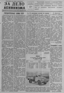 Пролетарии всех стран, соединяйтесь! ЗА ДЕЛО ЛЕНИНИЗМА Орган Северного РК Коммунистической партии Советского Союза знойного Совета депутатов трудящихся Новосибирской области № 29 (1940) ВОСКРЕСЕНЬЕ п I АПРЕЛЯ 1957 г. Цена 10 коп. Труженики сельского хозяйства! Шире развертывайте соревнование за достойную встречу 40-й годовщины Великого Октября, за успешное выполнение стоящих задач! ГОСУДАРСТВЕННЫЕ ЗАЙМЫ СССР За 20 центнеров молока на корову н л о и е т н в я С н е м р ы о и в ж й е е X т н с н и I к о с и т с й о ъ р т е р и н з ч у д а д е р а с и о к д К и тс , мП я в и С о С н о а , д р у с е в ш а ш с м е е е в х о участках хозяйствен ого п культурного строительства и у д в а е м Н р о е к н в о ы н м о й м и ун дё и п т з я м т к и а. л н ет о н вы ий м по п б л е а н н п у р ю едст п а р в о л г я р е ам т м со у бой дал г ь р н а е н й д ш и е о г з о р с д о а и с н с т ц ы о в . я ет т Г а л в а в в а т н шы ом е е й , з ч а т в о д е а б л ы ч и и к н ой а пл б а а Р з н о а е преимущественного развития п г н т д р р о и я в е е ж т р ы с е ы с й е л а ь в л н н м о о и о о й г с щ п о т п р и н о о ы в м т т ы й е ы р ш х шн у р е о л д н и с е и а т ч н е я о н с б к о е с о в п с т с р п го и е о е , х ч и п и з н в р т о о е о ь т раслйе народного хозяйства, осуществить крутой подъём в се о л д ь ст ск ва ох и оз н я а йс эт т о в й ен с н с о н г о по в р е ои д з о ш с б н о и я с е т . т н ь о ия с я я н м и з а я н т и е а р ч к и и у т а л л е ь л ь т ь н у н о р о г н г о о о го б у л п р о а о в г ы в о Планом предусмотрен общий рост промышленной продукции за пятилетие примерно на 65 процентов, производство ч ср и е т д ся ств на произ 7 в 0 одс п т р в о а цен у т в о е в ли и предметов потребления—на 60 процентов. Новый крупный шаг будет, сделан в деле дальнейшего развития сельского хозяйства. Н н м з о е е а р л ст н ь о и а сн е и к о ж в е е к г о о о с п д в н о о ц н в ы е у ыни ш й я ш е в н е а и с л я н т о о о в у й в о р ый о х п ж сб я а о з й т р и е летки будет доведён до 11 л м и ил чи ли тс а я рдов пр п ои уд зв о о в д ; ст р в е о зко м у я в с е а , молока, картофеля и овощей. т н з ы я а й с З я с а ч 1 то 5 в п т - я р с п т а и к л о т ь л ь о у л н р ч ы е о и т е в т ), о с ( к в е о 5 л л 6 ь о 0 с п к е о р 1 е т ев . ы 6 о с 5 д х я 0 е ч о с з я ер ч нов к ы о х мб к а о й м н б о а в йно д в л , я 25 уб 0 о т р ы ки кукурузы и силоса и много другихмашин. Высшим законом нашей партии является неустанная н т т з б и у о о а г л л р б о ы е ь о т ш , и ат с о е н т е м а р о р р о о п б а и д с л л н т а ш а о н е и ь г ге л р о е с е п т н в н р о и а а е б , е д р р р у о о с а д м с з ж т о а о т и . а к В в р у н л е и л н и п щь я о я , здравоохарнения. Реальная щ за и рп х л в а ы т р а ас р те аб т оч з и а х э и то сл вр у е ж м а я н х а оды 30 к п о р л о х ц о е з нт н о и в к , о а вн—о е бщи м е ен д е о е в ч м е о н мм ог у о на За 4 п к 0 е о н н п с у р ии оц у е в н и е т л о н и в в ч . а е л н и ыП д о ам н н о а и п щд р о и е л н с ж а т и м а т р е е л л п ь ы о н м о . ст б ь е У р в е о е м т л е п и н у ч н с о к ен с а т а и ж . п е р н оВ новом пятилетии значительно расширяется сеть родильных домов, детских учреждений, б ш д п о я у ч к т с о и м и й л л о , т ет д р с к е е т н и н о ь л н . п о е в а О р ы б е с х щ х е о и м и д й ич в т а о . б со ъ д в т ё о . е м й че р П н р о и а р з е е т ни и ч л н ет ог к о ун то а в м а е р ч о а о е б т о с р я от у а ве з л а ичи п т я ь примерно на 50 процентов. н н н Н ы и о а г к е о о в м с с р б ё д е ю э д о д т х с о ж т о е д в в т а о к а в л . и О б а з с юн д г д ы о о ж а с вн в у е ю д ы та т а м с р я в и с к т а с ш р в т е у о е ч н й п стра