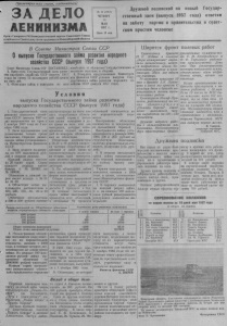 Пролетарий всех стран, соединяйтесь! ЗА ДЕЛО ЛЕНИНИЗМА Орган Северного РК Коммунистической партии Советского Союза и районного Советй депутатов трудящихся Новосибирской области № 40 (1951) ЧЕТВЕРГ 16 МАЯ 1957 г. Цена 10 коп. Дружной подпиской на новый ственный заем (выпуск 1957 года) на заботу партии и правительства ском простом человеке Государ- ответим о советI ► ч В Совете Министров Союза ССР_ Ширится фронт полевых работ О выпуске Государственного займа развития народного хозяйства ССОР (выпуск 1957 гада) Совет Министров Союза ССР ПОСТАНОВИЛ: 1. Выпустить Государственный заем развития народного хозяйства СССР (выпуск 1957 года) на сумму 12 миллиардов рублей сроком на пять лет. 2. Облигации займа и выигрыши по ним освободить от обложения-государственными и местными налогами и сборами. 3. Утвердить представленные Министерством финансов СССР условия выпуска Государственного займа развития народного хозяйства СССР (выпуск 1957 года). У С А о ви я выпуска Государственного займа развития народного хозяйства С С С Р (выпуск 1957 года) 1. Государственный заем р д ст а а з в ) в а и в т С ы и С п я С ус Р к н а а ( е р в т о ы с д я п н у о с н г к а о 19 х с 5 р о 7 о зя к г й о с я 1 б н р 2 о я . я З б 1 а р 9 е я 6 м 2 1 п 9 г 5 р о 7 е д д а г н . о а д з а на п ч о ен 1 д н л о я размещения только среди нщ ся а е с н е М и л и я е н н и з и а с я й т . м ер П а с о т у р в с я т о д а м н о а к ф в и л н р и а а в н з а м с е о т е в СССР . л ды е 3 й К . а п в ж о За д к е 1 ы а м 0 ж й 0 д д о е м р м л а и и з л т р р л с а я я и з д о р н н я а о д с в е о р . с а т р з о у р и б я т из 20 тысяч серий. Серии каждого разряда имеют намера с № 220001 по № 240000. ри Ои б и л миг е а ю ц т ии но в ме к р а а жд с ой № с 0 е 1 по № 50. пу 4 с . ка О ю б т л с и я гац д и о и сто з и а н й с м тв а ом вы в 500, 200, 100, 50, 25 и 10 рублей. Облигации достоинством в 500 и 200 рублей состоят соответственно из пяти или д ци в й ух од с н т о о й руб с л е е р в и ы и х с об п л я и т г ь а ю и ю л т и п д р в а у в м о я на н п о я м т е ь рам и и ли и д д в а а д н в в ы ы ы ре й х и м г и е р н н з ы а н ш н о о о а б м , л п е и а р к г д о о а а в т ц ю , о и т р о и ы б . е о н з а н о а к д ч а н е ж н о Облигации достоинством л в ся и 5 г 0 а ч , ц а 2 и с 5 т й я и ми и 10 с р д т у а о б юр л у т е б й л п е я р в в а ы л в х я о ю о н т б а с н о а от в в т е о т р с а т я в , у о ю д щн у а ю ч д е о т л в ю ер ( т о а д я , о п л д и а н в г а ш ац е д и г е юо ся . н т а ая с ) то в р ы у и б г л р е ы ву ш ю а,в о ы б5. По облигациям займа весь доход выплачивается в форме выигрышей. Общая сумма выигрышей установлена в среднем за пятилетний срок займа из расчёта 2 процента в год. В течение пятилетнего срока займа выигрывает 6 процентов всех облигаций, а остальные 94 процента облигаций погашаются по их нарицательной мо В ст ы и и . грывшая облиг с а т ц о и и я погашается и исключается из дальнейших тиражей. на В вл ы и и в г а р юы т ш ся и в по ра з з а м й е м р у е:5 у 0 ст 0 а 0 , 1000, 500 и 200 рублей на сторублевую облигацию, в и л к е м л й о ю ) с . т ч ь ая об н л а и р г и а ц ц а и т и ел ( ь с н т у о ю р с у т б о 6. В течение пятилетнего срока займа производится пять тиражей выигрышей— по одному тиражу годно. Тиражи выигрышей е п ж ро е - ; изводятся, начиная с 1958 е с г о м о в д ы а е С , МС в С и с н Р р и . о с к т и ер , с у т с в т о а м на ф в и л н и а в н а 7. В тиражах выигрышей на каждый разряд займа, т о . но е в . н р а уб к л а е ж й ды р е азы10 г 0 ры м в и а л ет л с и я и сл гр е ыду ш ю е щй: ее количество выТракторная бригада Н . Н . Юдина