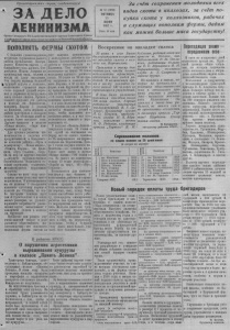 Пролетарии всех стран, соединяйтесь! ЗА Д Е ЛО ЛЕНИНИЗМА Орган Северного РК Коммунистической партии Советского Союза и райокногоСовета депутатов трудящихся Новосибирской области^ № 52 (1963) ПЯТНИЦА 28 ИЮНЯ 1957г. Цена 10 коп. За счёт сохранения молодняка всех видов скота в колхозах, за счёт покупки скота у колхозников, рабочих и служащих пополним фермы, дадим как можно больше мяса государству! пополянтьФЕРМЫскотом С большим удовлетворением встретили трудящиеся нашего района предложение Центрального Комитета партии — в ближайшие годы догнать Сое динённые Штаты Америки но производству мяса, молока и масла на душу населения. Эта задача вызвала большой ^трудовой подъём в колхозах, колхозники стремятся вырастить хороший урожай зерновых и кормовых культур,заложить больше силоса. Организованно проходят эти работы в колхозе им. Ворошилова, например. Наряду с уходом за посевами, здесь первыми в районе приступили к закладке силоса. За несколько дней заложено более шестисот тонн. Дружно трудятся в колхозе «Новая жизнь», «Заря коммунизма» и других. Для лучшего развития животноводства и подъёма его продуктивности, в большинстве колхозов района—«Путь к .коммунизму», «Новая жизнь», «Память Кирова», им. Калинина, «Путь Сталина», «Борьба за мир» и других—широко развёрнуто производственное строительство. Возводятся типовые коровники, телятники, > механизируются трудоёмкие процессы. Однако во всех этих неотложных делах унас ещё много недостатков. II успокаиваться мыне должны. С опозданием начинают заготовку кормов в колхозе им. Сталина, не особо быстрыми темпами идёт там истроительство ив очень малых размерах, не удовлетворяющих потребности размещения скота; запаздывают с закладкой силоса в колхозе им. Крупской. Предстоит нам решить ещё очень важный вопрос в деле развития общественного животноводства—это пополнить счёт закупки, контрактации у колхозников, рабочих и служащих. Хорошопроводится эта работа в сельхозартели им. Калинина. Там закуплено и поставлено на ферму 70голов молодняка крупного рогатого скота. 50 голов из 70 по плану закуплено в колхозе «Память Кирова» и 30из них на ферме, вим. Крупской на форму приведено 55 голов, 56 голов из 60 закуплено вколхозе «7-й съезд Советов» и более половины приведено на ферму. А в ряде колхозов такая работа пущена насамотёк,не прилагается никаких усилий к тому, чтобы выполнить контрольнуюцифру, а у нас есть возможности намного и перевыполнить её. В колхозе «Намять Ленина» закуплено только 14 голов и ни одной не поставлено на ферму, нет ни одного телёнка из 36 закупленных на фермах колхоза им.Ворошилова. Только 7 голов закупил колхоз им. Молотова—это слишком мало. Плохо идёт закуп в артели «Новая жизнь»—20 голов из ста. Из такого же количества только 13 телят имеет колхоз «Борьба за мир», 16—«Путь Сталина». Возможности для пополнения ферму нас большие. У колхозников, рабочих ислужащих есть скот иони с удовольствием продают молодняк. Есть возможность купить также поросят, овец, птицу. Надо только настойчиво вести работу, производить своевременно расчёты. Без проведения такого мероприятия нам не обойтись. Колхозы наметили трёхлетние планы производства продуктов животноводства. В этом году необходимо оставлять в зиму, на передержку, молодняк,, чтобы в будущем году сдать мяса больше, сдаВоскресник на заклад