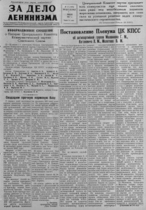 Пролетпарии всех стран, соединяйтесь! ЗА ДЕЛО ЛЕНИНИЗМА Орган Северного РК Коммунистической партии Советского Союза и районного Советадепутато в трудящихся Новосибирской области Центральный Комитет партии призывает всех коммунистов еще теснее сплотить свои ряды под непобедимым знаменем марксизма-ленинизма, направить все свои силы на успешное решение задач коммунистического строительства. (Из постановления Пленума ЦК КПСС). № 54 ( 1965) ВОСКРЕСЕНЬЕ 7 июля 1957 г. ИНФОРМАЦИОННОЕ СООБЩЕНИЕ о Пленуме Центрального Комитета Коммунистической партии Советского Союза ми 2 П т 2 е л —т е а н 2 у 9 К м о и м ю о м б н у с я н у с д и . и ст г л . ич с в е о о с с п к т р о о о й я с л п с о а я б рт П и л и а е н н т С у и о м п в а е р т Ц т с и к е й н о н т г о о р й а С л о ь юно з г г а р о . уп К п о е Маленкова Г. М . , Кагановича Л . М . , Молотова В. М. ро П П е л л с е е е н н г у у о м м дн в п я ы ри п ве н у л я б л л и и з с к о у о е с т о т в с с е т я т а . с в т а вую чл щ е е н е ов по П с р та е н зи о д вл и е у н м и а е, Ц ко К то и в в и а а з ; к ч с а н л н я е д н л и ов д с а Ц п т о о К с в т К а в П С С е ч к С л р е е т н т т ы а .Мря а П л р Ц е е н К з к и о д К в и П а у , м С К С а аг и Ц ан в К о ы в в и и е ч л и а з , и Мз с о о с л с о т о с а т т в о а а членов ЦК т. Шепилова. Пленум избрал Президиум ЦК КП СС в следующем составе: члены Президиума: тт. Аристов А. Б., Беляев Н. И., Брежнев Л. И., Булганин Н. А., Ворошилов К. Е., Жуков Г. К ., Игнатов Н. Г., Кириченко А. И. , Козлов Ф. Р., Куусинен 0. В., Микоян А. И., Суслов М. А., Фурцева Е. А., Хрущев Н. С., Шверник Н. М.; кандидаты в члены Президиума: тт. Мухитдинов Н.А., Поспелов П. Н., Коротченко Д. С., Калнберзии Я Э., Кириленко А. П., Косыгин А. Н., Мазуров К. Т., Мжаванадзе В. П . , Первухин М. Г. тар П е л м ен Ц умК К по П п С ол С ни т л . состав Секретариата, избрав СекреКуусинена 0. В. Создадим прочную кормовую базу Постановление Пленума ЦК КПСС об антипратийной группе Маленкова Г. М., КагановичаЛ. М., Молотова В, М. С первых дней заготовки к а н р о о т й р е м л о о и р в га с п о н р в и а м з в а е л ц с е т и н н е и о й е с с в п е с а л ё р ь с т х в и о о й з ё внимание сосредотачивают на вопросе создания прочной кормовой базы для скота. Обсудив с колхозниками с т м о и о с я в то о и я б н щ и п е е е с р т п с в о п е е з н к а н т г и о о г в т о ы овк ж е р и а к в з о в о и р т н ж о и в т о ь дс в тв э а т , ом мы го р д е у шил н и е з 2 а 8 л 0 о 0 д т ся о у ч н с и м н о т с т о и р н л е н о н с о и а , , п с л к л а а е н к д о о м б в ы , а л т а о ел 4 п ь т н р ы о е , л г н о о а ж р к е о а н г ж о а д т у п о ю о го, 1 г с 4 о к л о т о т о в а н у н б . у к д р е у т пн з о а зва П л о а ста б в о л л е ь н шна о я й зад т а р ч у а дов в о ы й подъём среди колхозников. В но В н с п а и е с л р т о о в с я ы а щ е е 2 е 0 в 4 в 5 1 р 9 е т 5 м о 7 н я н г . з о а д л у ож м е ы приступили к скашиванию на силос ржи. Скосили 25 гектаров и заложили 760 т сы онн п . ол У у р ч о е ж н ай неп з л е о л х ё о н й ой — ма п с о 340 центнеров с каждого гектара. Будет скошено 86 гектаров подсолнечника, а с т з мы ак о , т ж в р е с я х 2 о н 0 д а ы ге р е к у ё т ч а н х р о у о р ю в ош п к и о у с е к а . у д Н р к у е у , к в в и а П л д ь р р н и а ы т з е ы а . кл п а о д л к у е чи с л и и л с о ь са п а р к а тивное участие принимают все колхозники. Особенно т х в о у о р д б о ч р ш е и с о к г о ад й о и рг р б а р н и и п г з а е о д р в ы в а о л й Ле р п о а о н б л и о е д Т д в н е и к е х в о н и н о о з в а р . к а л В б а о е д т г ы а о е в б т а р е д т и о с г я а 7 д 0 д е о ч е е ж л 13 е о 0 т н о я н ю н т с 