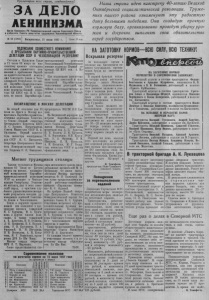 Пролетарии всех стран, соединяйтесь! ЗА ДЕЛО ЛЕНИНИЗМА Орган Северного РК Коммунистической партии Советского Союза и районного Совета депутатов трудящихся Новосибирской области Л1ь 58 (1969) Воскресенье, 21 июля 1957 г. Цена 15 коп. Наша страна идет навстречу 40-летаю Великой Октябрьской социалистической революции. Труженики нашего района ознаменуют эту радостную дату большими победами. Они создадут прочную кормовую базу, организованно проведут уборку урожая и досрочно выполнят свои обязательства перед государством. ПОДПИСАНИЕ СОВМЕСТНОГО КОММЮНИКЕ „ О ПРЕБЫВАНИИ ПАРТИИНО-ПРАВИТЕЛЬСТВЕННОИ ДЕЛЕГАЦИИ СССР В ЧЕХОСЛОВАЦКОЙ РЕСПУБЛИКЕ Сегодня в Пражском Граде к в ов 1 с 2 ко ч м ас у ов вр 0 е 8 мен м и ину с т ос п т о оял м о о с с ь м н п ц о о и ю - д и н п п и р и С к а с о е в а в и н е о т и т е с е л п к ь р о с с е г т о б о в в ы е м С в н е а о н с н ю о т и й н з я а ог П о в д а е р Ч л т к е е и о х г м й о а словацкой Республике. От нм'е н щ н т н а и и о е р й к в ь е , П д Ц о п е а т о л К р д е т и г п и К а м и й П ц е с н и н С а о и и л С - п П р т П е С о а р а в в С в р . и С ы т т Р И и й е . й ль н к С с с о о . т е - м Х в п к м е р р р ю н у а е вительственной делегации к Ч м р е ю е х н т о и а с к р л е ь ов п а Ц о ц К д к п о К и й И са Р Ч л есп П т у о е б в р л . в и ы к А й и . к Н о с м е о вотный. в с т л а е л о л П в и ь р с а и т ц ч в к л п е о е н о й н д н ы п ы и х с с о а П в н д е а и е т р и л с т е к и г п о й а р й ц н и и о с и - й у п т , р ч с а п т е в в а х и р о о я л т т и и е й к л н и и ы . е Че и хо го сл су о д в а а р ц с к т о в й енн Р ы ес е пу д б еВОЗВРАЩЕНИЕ В МОСКВУ ДЕЛЕГАЦИИ Во второй половине дня 16 с в и т р ю в а л е т я н и н л и а а з я сь П д П р е а а л р г е т и г и а й ц в н и о я М -п о С р с о а к в в в и е у т те с в к л о о ь з го Союза—Первый секретарь Центрального Комитета КПСС Н. С. Хрущев, Председатель Совета Министров СССР Н. А. Булганин, тель минист П р е а рвы и й нос з т а р м ан ес н т ы и х дел СССР Н. С. Патоличев, Секретарь Центрального Коми т т и е и та Ук К р о а м и м н у ы ни 0 с . ти И ч . ес И к в о а й ще п н а к р о , п ш р и Н е н д а . се В д н а у т к е о л в ь ск В и Ц й С а П эр С од В р . о В м . Г д р л и я встречи Партийно-правитедь ственной с щ к и о е г с о я СоюМ з о а с д к с е в о л ы б е р . г а а л ц и и Д с и ь еле т С г р о а у ц в д и е я т ю встречали тов. А. Б. Аристов, Н. И. Беляг'В, Л. И. Брежнев, К не . н Е , . В Е о . ро А ш . ил Ф о у в р , ц О ев .В а, . К I у I. ус Ми . Шверник, II. Н. Поспелов, х А и . н Н , . м К ин о и сы ст г р и ы н, СС М С . Р Г и . д П р е у р г в и у е официальные лица. Митинг трудящихся столицы Тысячи трудящихся Москвы пришли 16 июля во Дворец с п н п р ы о а й р в т и а т в е о л з н в ь а р ст а м в щ и е е н т н и н и н о ю г й , П д п е а о л р св е т г я и а щй ц н е и о н и к с б С в к и о а С и к ц С м о й к Р г у и о ю н т и и а з у р н Р д о г п о е д а о с в , , п е л к з у е д а б т с к к в л и о и ч р и к у е в у н в в с . и е т с в я У Ч ь о ч в е м а о х с с с о о т г п с в н л р л е у и и о т н к го я о л в С о и д ою я р щ е з з а и у х л в ь д т е Ч а я е т т х ы е о л с е п л й о о е в з С а д о к к в и и е ю т . с р к у о з в и ов д Т а и е л у п и м ло е о и м ни и с т е п и р о н д я е г в ч а л н е о н т и о п е в р а и р в в и е п щ т р с е е т й г Н н а и . ц н и С а и . , и Хр д а у р щ уг е т и в а х а к , же ч Н ле . н т А о о в . ва Б р у д и л щ ел г е а е й А. Б. Аристова, Н. И. Беляева, л Л о . в И а, . Б 0 р . е В ж . не К в у а у , с К и . н Е ен . а В , ор Е о . ш А и . Фурцевой, Н. М. Шверника, П г д и е . н н Н т а а . , МП Д . о Р с В Г п . е Х л П о о е в р Ш а в , и у А хи . М н Н и а . н , а п К . р о е с з ы 