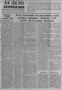 _j^-j етории всех стран, соединяетесь t ЗА ДЕЛО ЛЕНИНИЗМА и Р1.е„вег«рного РК Коммунистической партии Советского Союза и районного Со вета депутатов трудящихся Новосибирской области. № 60 (1971) ВОСКРЕСЕНЬЕ, 28 июля 1957 г. Цена 1R коп. Итоги выполнения государственного плана развития народного хозяйства СССР в первом полугодии 1957 года свидетельствуют о дальнейшем росте экономического могущества Советского государства и о мощном трудовом подъёме советского народа, готовящегося встретить 40-летие Великого Октября новыми успехами в борьбе за осуществление исторических решений XX съезда КПСС. J Ликвидировать отставание \ на заготовке кормов % ""Заготовки кормов во мно- 5^ д г о и п х ус к т о и л м х о оза м х ед р л а е й н о н н о а . и П д о у р т а н н а е - т ч р и а н ть ать ур ш ож ир а о й к , им а фр в онот к м олх у о б з и а х «Путь Сталина», «Новая жизнь», «Память Кирова» план стогования сена выпол- ^Рнен всего лишь на 22 — 29 с п т р а о в ц а е н н и т е ов. яв Т и а л к о о с е ь п р о е з з о у р л н ь о т е ат о о т м y f к м к о а е ч с д к а л , и ит н с е е л п ь р р н а о о з и в с з т е в и р о т д и ы и в в т а р е н е л д и ь н н е о м о й го с р е и а н с с о пользования техники. Чем могут, например, похвалиться руководители Северной МТС, ► к к н о о я г с ю д и т а льн у з ы а н д е и ан х аг и р п я е о . г ч а т В т и и ы ди н в м е с о е , вы с р п е у о н к л о о водителям отстающих колхо- зов тов. Овешкову, Лесковско- * му, Осипову и директорам М х ч в и Т а в С т о а с е т т т и т. , и ч н т Ю и об ц д ы и и а н т л у и у в ч и ыш , е Ят о н и р а с г у с а т н о п и й о зовать работу на сенокосе во всех бригадах и колхозах. У нас получается так, что ь в жи о в д а н е о м й ой и М то Т й С ж , е мо зо ж н н е о , н о а б б с л л ю у - j дать разительные контрасты.! В колхозе «Заря коммунизма», например, не используют своих возможностей для накопления кормов, отстают с юсовицей трав, плохо скирдуют сено. * в М л а и е т н ж ь и д н у д а ел т с о е у м , м ч е в л то и ко в т л ы а х ш к о л з и е ор в п г м а ч . н и и с К з л о а о - п за ер р е а д с о п в о ы л х о . ж А ены вед п ь о о с б о а се к д о ст л в х у о , н ви ах я о х П . д о я л т о ся же в ни о е дин с аков з ы аг х от у о с в л к о о й кормов вызывает серьёзную л б т ы р аг е а в с т е о е й г л у ч ь . а н с Н ы а е д м о м а е к п р с ы р и и м к н а я л т т ь ь о н м о у б , е ч у з т о с о п т л р и ее ть п за р г о о в т е о ст в и ку к к о о с р о м в о и в ц : у б т ы ра ст в , стогование и вывозку сена к м м е а с м т , ам з з а и г м от о о в в ки ит с ь ко к т а а к , к мо ф ж ер н о больше силоса. Повсеместно на щ полную мощность пустить все н т ы ра е к с т е о н р о н к ы о е с , и с л а к м и о , х и о с д п н о ы л е ьз и ов к а о т н ь лафетные жатки. в е а в ть ко к с а ар к ей мож в н р о уч б н о у л ю ь . ш О е р Ш г з а и в н р е и о н з к ь о о п м р о и в ме м ня ат т е ь ри н а а льн за о г е от п ов оо к щ е ре к н о и р е колхозников и механизаторов. Создать в каждом колхозе надежные запасы кормов— боевая задача тружеников п р се о о л л т ь ь н с с е к я н о и с г е о о в эт с о е х й й оз н з я а а й д с с т а т о ч в й и а ч . и н в З а о а д с о ть б в ю о ы , не теряя ни дня, ни часа. х т а е н с Т ь и о з в а з а т а р о и в р щ ы ы п и ! ол Н к н о а е с л н т х и о о й е з ч н с и и в в к о о и их б и о о р б м и я е л з ы ате и ль с с р т е в д , с и тв сп а оль д з л у я йте со вс з е дан си и я прочной кормовой базы. Итоги выполнения государственного плана развития народного хозяйства СССР на 1957 год за первое полугодие н п Ци ол с е т н н р е т о н 