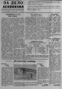 пролетарии всех стран, соединяйтесьг ЗАРДЕЛО ЛЕНИНИЗМА Орган Северного РК Коммунистической партии Советского Союза и районного Совета депутатов трудящихся Новосибирской области. Труженики полей ведут напряженную борьбу за хлеб. Обеспечить удовлетворение всех их потребностей—-долг работников культуры и торговли. Решительно бороться против тех, кто проявляет неповоротливость, плохо заботится о питании, жилье, быте людей, занятых на работе в поле. № 68 (1979) ПЯТНИЦА, 23 августа 1957 г. Цена 15 коп. ЗАБОТИТЬСЯ О ТЕХ, КТО В ПОЛЕ Уборочная страда в разгаре. Соревнуясь в честь 40-й годовщины Великого Октября, труженики села прилагают ^усилия к тому, чтобы убрать урожай вовремя и без потерь, досрочно выполнить обязательства перед государством. У с пех в этом деле решают механизаторы-машинисты лафетных жаток, водители подборщиков и автомашин, работники токов, колхозники, занятые на уборке. Следовательно, главное внимание необходимо сейчас сосредоточить на удовлетворении их бытовых и культурных запросов. Каждый труженик полей, где бы он ни находился, должен иметь возможность купить продовольственные и промышленные товары, получить медицинскую помощь, познакомиться со свежими газетами, журналами и новыми книгами, посмотреть кинокартину, послушать хороший концерт,получить вовремя вкусный обед. Правда, кое-где проявляют заботу о людях. В колхозе «Варя коммунизма», например, хорошо организовано питание, в тракторные бригады доставляются газеты и журналы. В бригадах колхоза «Борьба за мир» созданы передвижные библиотеки. Остяцкий сельский клуб готовит агитбригаду для обслуживания тружеников полей. Однако, есть у нас еще такие люди, которые говорят: «Теперь не до развлечений, некогда читать книги, смотреть кино, ходить на концерты», Рассуждая так, они и на Два комбайнера— два итога работы деле не организуют культурно- просветительную работу. В колхозах «Швая жизнь»,«Память Куйбышева», им. М.Горь- кого и других не было на полях ни одного концерта, кино, как правило, в бригадах не показывается. Равнодушие к нуждам трудящихся чувствуется у торговых и медицинских работников. В колхозах зоны Северной МТС председатель сельпо Гончаров плохо организует торговлю. Торгуют только в селах и то не в полном ассортименте, а на поля не выезжают. Не бывают на полях и медицинские работники.Рядом с бригадой № 6 расположен Красноярский медпункт, но ни разу в этой бригаде никто из медиков не 'проверил состояние пищеблоков. Уборка хлеба— страда нетолько для хлеборобов, но и для всех работников культуры, торговли и других организаций. Их долг — быть там, где решается судьба урожая, своим участием способствовать организации и развертыванию соревнования за быстрейшее проведение уборки и досрочное выполнение плана хлебозаготовок. В текущем году хлеборобы убирают урожай только раздельным способом. Это— верный путь сокращения сроков жатвы и борьбы с потерями. Между тем находятся люди, которые сопротивляются раздельной уборке. Обязанность всех агитаторов разъяснять преимущество, распространять опыт раздельной уборки хлеба. х м о я Х з т н о ь и р к К о и ш ир о с о е в л о а ь т “ х з о ы о з в а к а р о ют м е т л б с а я и йн к „П о ер л а е Е р со а . б е С т о . м х . Мл В е а б и л н ы д р х а р и з о н д у е е э . л р ь о н м О ы н м в д у с е б п н и о ь скашивает по 15 гектаров ржи, вместо 12 по 