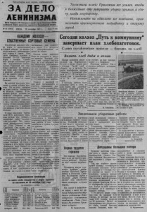 ■А- Пролетарии всех стран, соединяйтесь! ЗА ДЕЛО ЛЕНИНИЗМА Орган Северного РК Коммунистической партии Советского Союза и районного Совета депутатов трудящихся Новосибирской области. № 82 (1993) СРЕДА, 25 сентября 1957 г. Цена I е»коп. Труженики полей! Приложим все усилия, чтобы в ближайшие дни завершить уборку урожая и сдачу хлеба государству. Использовать на обмолоте все комбайны, организовать круглосуточную подработку и отгрузку зерна\ I КАЖДОМУ КОЛХОЗУ— СОБСТВЕННЫЕ СОРТОВЫЕ СЕМЕНА ра Ув з е е л р и н ч а ени в е в з а н л а о ч в и о т г е о ль с н б о о й »■ к н с а ы т ч е х е п с е с т н о в и р е т н з о а н в в ы и х и с , ит р с а е й о м о т я н н в и . ы ро со О в к а н н о и дают прибавку урожая в среднем 2—2,5 центнера зерна с гектара. Однако э з о т у н о е а т тс р я е н . з е У е д д р о е в с л т ь а к н т о ы о л ч й х н о о з в а е м и с и сп р о со л ай р ьт н о и в е ы г х од п ы ос д ев а о ж в е с з н а изи п л о с с я л . ед А в колхозе „Борьба за мир“ т н о е в т ы н х и с о е д м н я о н г . о г О р ч а е м н м ь а м с а о л р о их в колхозе „7-й съезд Советов“ . хо В д о ит м к но к г о и н х цу ко у л б х о о р з к ах а у п р о о д - ^ жая . Но до сего времени Р ни один колхоз полностью с н м к ы е а е ч п н е а н з с а т ы т с ь е в ы с е я п ф н а о н л о н ы т д е б ы с о с е р о м н р д е ы т о н о е л а в ж . ы н д е ы В о б р с з е о а се мена с семенных участков, а там, где эти участки при- ^ к зн у ан п ырои н з е в п о р д и и г т о ь дны с м н и а , и з б ас о ы ле п е урожайных участков общих посевов. В ряде колхозов Тартас- с ш к и о е й п М о Т те С ри до п п р у и скаю уб т ор б к о е л , ьа некоторые сдают семена в с з п ч о и е в л т и „П по у п с т р т ь е а д в с о С е к д т . а ат л Т е и л а н и к а“ к и п о о л с и т х м у о . К но рупс п к ш о е й н . иц О ы н , и с у у б х р о а е нно з е ер с • семенных участков, сдали в госпоставки. Надобности в этом не было никакой. На полосах ещё сотни гектаров д н о е в о ы бм х ол п о о ч с е е н в н ов о , го н х а ле т б о а ках ря и сушилках есть зерно кроме семенного, надо только его подрабатывать и сдавать. мш Н о е и С л л т л о ь ь т е з о д п я м у о е к з т а а в т а я л х н г о к а и р о п в в о о а , ш м ть н а н я и а т и д п ь о о , с г о с ч о п д т б а е ю. л та о к м ж го е ду по к ст о у л п х и о л зыи в „З п ав р е о т ш ы х в И о е л з т ь о о и в в ч . “ а И и “ , р ч я „ т д 7 о -й д п р о у с л ъ г у и е ч з х и д л к о С о сь о л ? Семена з а с ы п а л и некачественные, л т тр е и а с т ь—ы • п д о н о а р п ч о о е л б . н м Ии е о т н н е . в и льн р п ы е о з е д у в л е ь р з т а г а Погода стоит хорошая. Н т р ы а а т д ь в о р х е н л м е е е б у н , п и у . с с д к а Б а в ы т а с т ь т ь р и е го е с м у и у д б н а и р ус б к т ы а в ч у е о с , б т е н в с о е п н е и н ч ы и н м т е ь и за с б е ы бя в се а в м т ы ь е , с н о ч а к т м о о и на всю посевную площадь будущего года. Тот, кто не з с а т с у ы пл п е а н ет ие с . ем А ен в а е ,д с е н л о а й ет сн п о р в е а будет просить семена, лезть в государственные закрома. мя Н н а н р а я д д о у о с рга за н с и ы зо п в к а о т й ь с и е х о н ч ен и и ст е к . у С , ем п е р н а а ви д л о ь л н ж о н е ы б х ы р т а ь засыпаны не более 10—15 н п р ы р о о ш е ц и х е е р н , а т н о п и в р л о в и д л щ е а з а ж и , н н ф с о л с и о т ц е и и м , ро в 1 в ,5 х ан о — 2 метра. чи П х р л и е м б е а ро г м осу у д сп ар еш ст н в о у й и сд хо а з сы яй п с к к е ог с о ем о я т н но м ш о е г н ут ия слу к жи з т а ь к н р о я и л з к х м о о у з м “ ы , му и н м „ и . П з у К м т а а ь л “ ин к и ин д а к р , о у м „ г З м и а е у . Здесь руководители и сами колхозник