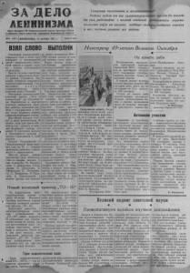 Пролетарии всех стран, соединяйтесь< ЗА ДЕЛО ЛЕНИНИЗМА Орган Северного РК Коммунигтической партии Советского Союза и районного Совета депутатов трудящихся Новосибирской области. - ' ; | Товарищи колхозники и механизаторы! Родина ждет от вас самоотверженного труда.Не жалейте сил, работайте с полной отдачей. Добивайтесь перевыполнения норм на пахоте, подборе соломы, подвозке кормов и вы с честью решите все задачи. №90 (2001) ВОСКРЕСЕНЬЕ, 13 октября 1957г. Цена 1S коп. взял слово выполни Навстречу 40-летию Великого Октября ств О е к н о н н о ч г а о ни г е ода се в ль э с т к о о м хо г з о я д й у совпадает с исторической д н ск а е о т й о — й—в с л т с а р о с р а т н о и к е а в ле п н т о а и шб е е е м д й и С в о с ш в т е р е г т а о социализма. Вместе со всем советским г н о аро р д а о й м он и а тр с у т ж р е е н м и я к т и ся на к ш а е к можно успешнее завершить сельскохозяйственный год, выполнить в з я т ы е социалистические т ст е в л П е ь е н с р т н е в ы д а е ов п ы е а р е р е т д е с л е Р и л о ь д с „ к и П о н х у о о о т б й з ь я . я з й а к коммунизму“ , им. Калинина, им. Ворошилова и другие в у ч ы е с т п е ы ешр с а н б о г о о т с ы з у а , д в а п е р р р с ш о т и в и з о л в м и ели и по с р е л а й е с час ведут подвозку кормов к фермам,подбирают солому. вя Д т о и ст н о а й шн иый жи п в о о д т а н р о о в к од г ы от . о В з д н а о а т й ч е а л л ф ь е у с р т г а в о ж о д —н а о н о й а н д и о к и б о т р р ь а о л о в и т ы к о а б н ж я е менее 18 центнеров молока и большинство артелей с честью справляются с этой задачей. Доярки Томиловской и Г ил р и аж у д ж ан е це п в о ск 1 о 6 й ф с ер л м ишн н ад и о м центнеров, занимают первые места в соревновании. Многие доярки района с в т ы в п а ол п н о яю на т до с я во м и м об о я л з о а к т а е . ль К л к н я и о м р ва о , в о а т О , н . о Е Д ся . е т м с ч Ж я и : и х М г и у н . л а М и , н е Е а л . , К ьн оп и К . Афанасьева, П . Петрушен- ко, С . Пещерская, В. Рыль- ская, А . Кашкодарова и многие другие, они надоили за девять месяцев по 1600— д 19 о 0 й В 0 ер к л н о и ы р т о р в о ы с в во с м е в о м о л у и о х ка с г л р о о т у в п у к п а . ж по достойному выполнению производственной програм-; мы рабочие райпромкомби- п н о а л та н . ен Зд д е е с с ь яти д м о е с с р я о ч ч н н ы о й пл в а ы н д н у о кц в иы и п , уск н у амн в о а г л о ово с й ниж п е р н о а себестоимость выпускаемой продукции, перевыполнен план накоплений. л н и и Т ть ор о п г б л о я а в з н ы ат е е т л о р ь в а с б а т р о в т о о н о —и б к о в и р ы о п т б о а р л а к 5 декабря. Как показали с и я т ц о е ги в, р п а л б а о н ты вы з п а ол д н е е в н ят н ь а м 10 е 1 процент. Лучше других! справились с планом в этом году работники прилавка ряймага, они достигли 116,9 п во ро Т ц р е о н и т ц а к , о С г е о вер с н е о л г ь о по и . НоВ о те с л та ь в ск ш о е й ес к я оо в п р е е р м а я ци п и отр н е е б о и б -; хоцнмо улучшить дела в торговле, чтобы взятое обя -1 зательство в целом было выполнено. Досрочный расчет с го с у - , дарством по поставкам сель -] хозпродуктов и денежным; платежам ведут Граждан-1 цевский, Потюкановский, Биазинский и Федоровский сельские Советы. Много труда вкладывают депутаты сельских Советов. лаг Т а р й у т д е ящ вс и е ес с я ил р ы айо к на! т П о р м и у , чтобы с честью выполнить в в з а я . тыЭт е им на с с а е м б ы я м об в я ы за в т н ел ес ь е с т т е достойный вклад в дело развития нашей Родины.' На взмете зяби Новый колесный трактор „ Т О —16“ На Харьковском торосборочном завод т е рак