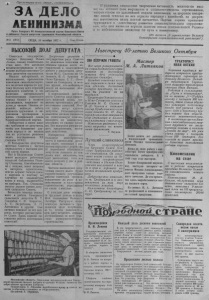 * Пролетарии всех стран , соединяйтесь; ЗА ДЕЛО ЛЕНИНИЗМА Орган Северного РК Коммунизтической партии Советского Союза и районного Совета депутатов трудящихся Новосибирской области. «91 (20(2) СРЕДА, 16 октября 1957 г. Цена 15 коп. В условиях социализма творческая активность миллионов масс народа находит свое выражение в социалистическом соревновании, н н н о а и е п е р в а н ы в о л п в е о о н й л н н о е т м н ех и н н е и а к п д и л а а л н в ь а о не шв й с е ше ст и о о й й тр п а п о с я д л т ъ и и е л м н е а т э р к к о и о д . н н П о о м г а о р и т к и х и о я , зя н й а г с о шт р в я и ^ ч р , о ок н о а п е ри д в з о н ы с е р в д о а р е ч е т т н р и у я д , я и щ б и о хс о я но к я .д вл ал я ь е н т е ся йш в е е м р у ны р м азв з и ал т о и г ю ом со н ц о и в а ы л х ис у т с и п ч е е х с о к в ог н о аше с й оре Р в о н д о и в н а ы в ее пооедоносном движении по пути к коммунизму. {Из тезисов „К сорокалетию Великой Октябрьской социалистической революции“) . ВЫ СОКИМ Д О Л Г Д Е П У Т А Т А Навстречу 40-летиюВеликого Окт Советское государство, говорил Владимир Ильич с Л т е ь н ю ин, ма си сс л . ьно Эт с о озн н а а т г е л л я ь д н н о о продемонстрировали и пос- * л в е ет д Н ын а и к д е а е з в п ы ы ут б а о и т р о з ы б в и в т р м р а е у т с д е т я л н ще ы й и е , х С с и о я х . высказывания, критические |' замечания свидетельствуют, т ч о т м о у по п л о и д т ъ и е к м а у п в а с р е т х ии от п р о ас к л р е у й н вы ар ш о е д н н и о ю го хоз м я а й т с е т р в и а ал и ьно п г о о благосостояния советского народа близка и понятна трудящимся, выражает их д р у а мж ы ают и ча в я е н л и и я к . у Ню аказ з ы або о т т у р ук я л д о о н во н г о о м тру п жре е т н в и о к р а ени о и нев жизнь генеральной линии Коммунистической партии. зах Из т б р и е р б а о т в е а л л и и в от св д о е и п х ута н т а о к в а , ч ж т и о л б и ы н о а н р и од б у ез и зав н е е тно жал с е л л у и сил на успешное решение задач, поставленных XX съездом КПСС. И большинство депутатов местных Советов с честью с г п омр В а с в с е л л у я в г ю и Б т и с н а я а зи р с о н д в с ы а к . о с м оки С м ов д е о т л е знают молодого работника н с н е а у ль с О с т л к л ю о и й д к ь о м б в и и у б , . л О з и н н о а а т е е т о к б и з щ а и п П т р о е о л л с и ы ь и интересы односельчан, всегда держит тесную связь с народом и поэтому не случайно ее кандидатура вновь и вновь выдвигается на выборах. Тов. Отликова в т в а а ы т юБ с а т о о л к с о ь е в лш д ь у е с р ю р к а жо б г о и п о т т о е м з С о в о щ а С в н е е ь и в т е е а о р . к д н а е о з п г ы у о сельсовета депутаты В. Т. Голдобин, С. Ф. Коростик, А . С. Загребалов, Л . П. Антоненко и другие. Они е а р т к о т с С иы о в , н в к о е о т т в . о н З р и д ык е а е с ю ь т ра х в с о с о р м о в а ш с т е р о и в п в о а о п ставлена работа постоянных комиссий. Досрочным расчетом с государством ряда Советов по денежным платежам мы о п б р я я з ж а е н н ы но п й ре и жд п е ов в с с е е д г н о евн н о а й т р а а т б о о в те М с . С н . ас С е и л л ен к и ов ем а и д з е Опу с- танинки, В. Л. Чуякова из Ново-Троицка, Е. Г. Лопа- т ги ов х ой др и у з ги С х е , ве к р то но м г о о би и ли м зу н е о т л за ю т К д е е л п й ь о с в т н с в а е . д в н ы е п вн ол о н й ен д и е е ят о ел б ь я н к ви а о т л ст ь ь и н шо С и о о р р в о г е к а т и н о й и в зо н а в а к а д т т о и ь в п , р р а и б в п о л р т е а у п го о е сто з я д н е н с ыь х к м о о м гу и т ссий с . де Мла н т о ь депутаты. Исполнительные комитеты должны оказывать им повседневную помощь, поощрять их инициативу, 