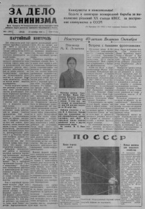Пролетарии всех стран, соединяйтесь! ЗА ДЕЛО ЛЕНИНИЗМА Орган Северного РК Коммунистической партии Советского Союза районного Совета депутатов трудящихся Новосибирской о блести. №94 (2005) СРЕДА 23 октября 1957 г. Цена 15 коп. Коммунисты и комсомольцы! Будьте в авангарде всенародной борьбы за выполнение решений XX съезда КПСС, за построение коммунизма в СССР! (Из Призывов ЦК КПСС к 40-й годовщине Великого Октября)* ПАРТИЙНЫЙ КОНТРОЛЬ Навстречу 40-летаю Великою Октября * -К------------------------------------------------- Встреча с бывшими фронтовиками ц в и и й Д чн л ыя х М п п о Т а в С р ы т ши и е й н н и ык я х ол р о х о р о л г з и а о н в п и е з р а и и то х ян о и т е вет р с а т б в о е т н ы но У с с т т и ав з К а П со С с С предоставляет им право м в к и о и И л н н ь т з и н р в с о о е т л г с р о т я а н ц р д и о у е , и к я . о т ч в е т л о о ь д н с д т о л в с я т а и н п ед р ад о а т ст а ат р о у ч к н о о во о д д и н т о ел го ей л , и е ш го ь о н п ад ы о дополнить опытом масс— р п р ыо я с д е р о е н в д а ы с х т с в в е о р н е а н м б о от у н ч и а ч к с у т о в к в с , е тв к у о юн то т е , к в а о к дст о в с о у , щ и ест н в е л р я е е д т к с о я в р и ук ^ о т такие недостатки, которые не всегда может заметить руководитель. н н о и Ч е ть т р об е о шы п е ы н п т и ол е, у р ч н у и у к т ж о ь в н о о п д р и д а т о в е п и л о л е л ь й т о р п о ы л т ь ом пе р р у в к и о ч в н о ы д х и п м а ы р х т . ий К н о ы н х з о н я р о й г с а с т т н ь в и е о з н а б н ц ъ ы и е й д х ин и р и у д т к а ь о е в т о о п в д ыо и з т т м ел о х е жо й т с н о о К в о г п о о ы м а т м и к о у т м н и ш и в с а и в т . р с ы е о х ко у г к о о н м к а м о с у л — н х э и о т з с о п щ е и р е ед н о а вые раз л н юы д х и, р у а ч б а о ст т к аю ах производства. Они тесно связаны с колхозниками, з т н н а и а я ю е . с т т У ь и к х ч а е ж н м д у о ж п г д о о ы м , о к ч о ь н м а м с р у т у н р к и о о е см во ер д о с м тву в : т с р в у о д и е м , л в и ы чн яв ы л м ен п и р е и м н т н а е и , д ем о р ст а п з а ъ т о к я л с о о н в ж и , и т т е р е л л а ь с ь н п н о р о й о г с о т р р о а а п б н ы о е т щн о ы е й с й т и в к л т о я . н т т д ь р . с о я П ль оэт д о н о м е л у же п н а у р з т о к и и с й у м кругом лиц или, еще того т м а е р н е ь м ш , е, э о т д о н —им зад л а и ч ш а ь се в к се р г е о коллектива коммунистов. Примером ной работы в по п л а о р ж т и и т й е н л о ь м к н о ы н е тр о о р л га е ни яв з л ац я ию и тся ко п л а х р о т з и о й в „ р П я уть ко к мм к у о н м и м з у м н а и “ з , му „ “ Н , о „ в З а а я жизнь". Так, в партийной организации колхоза „Путь к коммунизму“ ство коммунистов б р о а л б ь о шта и ю н т с в е ч т т а в й ж е с н и н а о в м н , о ы ы т ч х е н т о о л у в ч у о эт ч а д о с ш с т т т и к в к е а е о х л п н , х а о о к н з о а е т з и с в а л м е т у т е е л в и одс в тв р у а . йоне по животно з м а у ц И н и л и и и зм к в а о “ л . п х а П о р о з т ч а и е й м н „ у З о а й Г р р я о а р ж г к д а о а н н м и - цевская ферма, имеющая разные условия с другими ф во е й рм ф а е м р и м , ой явл в я р е а т й ся оне п Р е О р п е я д т о ь м ж го е е к р д о а е н б й т о с р т т а о в юл е я н т . н т о Н р с а и ть к э п о т а м о р й м ти у ф н й е и н р о с т р а е , та з р д ь есь па ч р а т щ о е рг б а ыни ва за е ц т ии сек и другие руководящие, работ-! з н а и т к ь и. и Эт о о к ж о е лхо м з о е жно „Но с в к а а я л с ж т о и в з у н в , н ь б и “ о . м л а З ь н д ши е я е сь к ж б о о и н л в т ь о р шт о н л е о я в с о т с д а о г з с а а т н ц о П и р и е о з и р а н . в ц ы и и ч я п н а а о р я б т я и з п й а а н н р о а т й и й б о н ы р а т я г ь ан о и р в т в ы ку к р о с л е 
