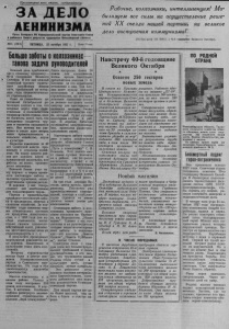 Пролетарии всех стран, соединяйтесь/ ЗА ДЕЛО ЛЕНИНИЗМА Сргвн Северного РК Коммунистической партии Советского Союза и районного Совета депутатов трудящихся Новосибирской области. №95 (20(6) ПЯТНИЦА, 25 октября 1957 Г. I Цена 15 коп. Больше заботыоколхозниках такова задача каждый день приближает нас к славному празднику— 40-й годовщине Великого Октября. В эти дни каждый с в о а в ет етски м й ыс ч л е е л н о н в ы е м к о в х з в о а р т о ы м шп го у и О т е с ь д т , н р г о п о о и р д о т ы и й е з л д с е ь г о н с л ц т н а и в ы в а а н й л . е и й з с ш а ти и и ч х с е т ск е з к о а в в о о е л в ю а ц н и и и й со О с к т т о я и б т р в ьс т к о о мй , ч р т е о с в т п в е е р н в н ы ы е м на и ро п д ол с н т о а в л ласт е н д ыин м хозяином своей страны, всех ее богатств, всего того, что д е о ж м ед и не т в а н л о ант с о о м зд т а р е у т д с я я щи т х р с у я м ре а н с н с. о и Во с т ме п л о о че им д у ет та в к пе у р в е е д наша промышленность и сельское хозяйство, наука и культура. Большие изменения за 40 л с и т е з в т о е ш . С л о Ни в а ет в п с о к л о се я й л х ь в с н л к а а о ш с м т е и г х о о п з р я р а й о й она нет конного плуга и примитивной молотилки, все д р я а т В б с о е я т л ы и м ки ашн й а и Л н п е а о н м л и и я н . х у п ч р и о т изв н о а л ш я у ть па н рт а и ст ю оящи у ню аро з д аб п о р ту ояв о р ч е е д л с о т в в е е к н е н - о т м ружпр е о н и и з к в е о , д н и е т п ел о е с. В деревне у нас теперь создано всё необходимое для плодотворного труда. Партия и правительство т п у ро о яв т л р я у ю д т ящпо и с х т с о я я , н з н а у н ю ят з ы а х бо в л м се е ы л д ь н с и о к б е о я м з г а о т х д е о ыл з ь я н й с ын ст и х в ж е е . п н о З ы с а та н п в о о о р с к п о ст б о в щ а е п , р а од о с у т к м 1 т е 9 а н 5 м 8 яю г ж т о с д и я а в , о о т н з н н и о а в ч в о и о д т з н я е ы й л с ь з т н а в о г е о н т н с о н ы в и й и ж т н е е н л ал ьн ог ы с , е е л ув ц ь е е с н л к ыи ох ч н о е а сельхозпродукты и т. д. В результате проводимых м цо ер д о е п р р е и в я н т и и . й З и а з жме и н т я о е ч т н с е я е ли и к хо у з л н В ь и т о к у п и р р н . ос е ы е ста с л т и ро ж ит и е т л ь ь к ст о в л а в м с а е н г и д я а бы К ли омм в ун ц и е с н т т и р ч е ес в к н о и й п в а и р т т е и л и ьств и а. Сов И е з тск го о д г а о в п г р о а д увеличиваются масштабы строительства. Многое изменилось и в нашем районе. Только в этом году построено 350 д б о о м в, ов 2 к м о а л г х а о з з и н н и а к . ов О , со 6 бе к н л н у о д хо уа р л о ь ш н о ое раз с в т е р р о н и у т т е о ль и ст н в д о иви в колхозе „Заря коммунизма“ . руководителей Здесь построено более 30 домов для колхозников, члены артели благодарят председателя колхоза П. К. Блохина за его отзывчивое о хи тн н ош зн е а н е и т е н к ужни д мы . Т к о а в ж . д Б о л г о о колхозника в жилищном л з с а т о р ж о р е и е н ш т и е и юл л ь о ст п п в р о е а с , в т л п р е о о н и и е т е г ь о к ш п ол р ес е х т д о ь квартир для престарелых и б о ч д а и , и ва н к е о о т к т с о и я р х ы ст й р ж о е и н б т у щ е д л и е ь н т с . т л в у З о ч а шк ка л и н у м о к н ол е. хоз В ным дер к е л в у н б е ом Ка в бат р о а в й о с у н л с и т я е а ц , н и о о п в н р л н о е а в н я е о д л е э и н л н а е и к я т р . р ад оо и с о в т е р щан е ляе Н т аст о оя с щво у и ю х за к б о о л т х у оз п н р и о к я а в х депутат областного Совета председатель колхоза „Путь к коммунизму“ С. В. л н е К и т и е е м в с в е а о л м р д е ы а с в й т е . о в н л у Э , у е т , ч о ш а т к и т а к е а к о к л жп п х о е о о к з р а и а з и с а м т т п е е е о животноводству. Здесь