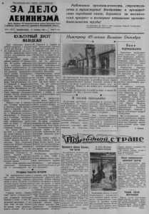 к Пролетарии всех стран, соединяйтесь! ЗА ДЕЛО ЛЕНИНИЗМА Орган Северного РК Коммунистической лартни Советского Союза и районного Совета депутатов трудящихся Новосибирской области. л 96 (2007) ВОСКРЕСЕНЬЕ, 27 октября 1957 г. Цена 15 коп. КУЛЬТУРНЫЙ ДОСУГ МОЛОДЕЖИ Для молодежи нашего района создаётся с каждым годом все больше и боль- * т ш у е рн в о о г зм о ож п н р о о с в т е е д й ени д я ля св к о у е л г ь о д д е о я В с т у е г л а н ь , н а д с о т л с о т я я и ,р щ . а е з е вити вр я ем са я мо в т р е а к й , оне 16 им к е л е у т б с о я в, 13 ра б й и о б н л н и ы о й Дом культуры, работают д г р и е о с х в я ы т к х к р , и у т ж д а к н р о ц а в м е , в а а т л с и ь а ч н м е ы о ск д х и е и я х т , д е х р л о у ь ность клубов пополняется образованными людьми. Большой популярностью п в р о о о - л ш Т ь о р з о у и юб ц л т к а с и г я о й у у ст н и р а о с Б е е и л н а е н з н ы и и е н я ск Н х и о о й сельские клубы. Вечером л эт о и де к ж л ь у юбы , зап к о о л л н х я о ю зн т и ся ка мми о. Сюда приходят послушать лекцию, беседу, посмотреть д к н о и о жн ст о е и с . и т л в и енн в о ы й ст с у а п м л о ен д и ея е тел х ь у тек Н , ем к а о л т о ор у ые нас во и спи б т и ы б в л а и ю о т у молодых людей любовь к к п к а н ри и м г и е е , р Б к , и р з а а н з й и а о н н н и с н к я а а м я я . б с и Т е б л а л ь к и с , к о н а т я а е , заведующие тт. Родомаки- с п н ч к е а а и ю ск е и т и О п к т о о п л н р и р ф о а к в е д о р о и в д е о а н я , т ци с с и и ч , с и о т т б е в а з м ы т о а е р с т л т о и ь у м л ст и в Н т е е о н р н а ы ту п м р о ы д ч ч т а е с н и ие в с м с . тр х е у ч д а о ем ж с е я т ж в мм е о ыи а л р н , ь я и е н к е е щ о т о й г е д к з а у р а и л а п б у ь р с о р т о т о у с т ы в р ы а е н к н н о и ю ь е - м п н и у р и о д о ш ф с о с е о в в а й д е л к т е е т и р т а и девушек. Есть секретари комитетов ВЛКСМ , которые недооценивают значение культурной работы просе воспитания мол в одо в г о о поколения. Поэтому-то и работа ведется скучно, д о и д т н с о я об л р и а ш зн ь о, к и п п р о о р в о е й ден св и о ю вечеров танцев. сом В о зя л т ь ь ск т и а е кие к о р р у г п а н н ыиз е а к ц о и м и, как в сельхозартели им. М . Горького и „Борьба за мир“ . Заведующие клубами д и го е с ж е в ь к о р з е м н т у е а щ р п и а о ю с к т е о с щ м я а , и е т т ч е т т о о к в л м у м о б л н ы о о , л б а и юбл т и , о ч т т е о к б и ы , н з о аи м н а т л е о ре ч с т о о ва д т е ь их в культурном отдыхе, а кто, как не работники культпросветучреждений и секретари комсомольских о м р а г т а ь ни к з у а л ц ь и т й у , р д у о , лж тв н о ы рч п е о с д к н у ию активность молодежи. Продолжительное время д и в а ча д “ к е , о р л е н в х и о н к з е т а о Та н „ й З е ч а и в з н е а т к х ы е о , д б и р И л и л г ь а в к уюлу т б н . о. Там Но бы в л о о т гр с я о з б н р о а , ла н с е ь молодежь, обсудила, что так продолжаться жме е щт, ен о и т е р , ем и он те т п и е р р о ь вал н в и е н м п е о о м м ве о с О ж т д и н н о о д й с о у с д у о г и . в з ольс р т а в с и п е р м ос п тр р а о ненных форм культурно- л п м я р о е о д т с е с в я я е т т е и х л у т ь д е н л о о ь ж с н т е о ь с й т , в р е а н б н к о а о т я ы тор я с а в а я с г н о л и у я и ж . и к О т у ч л е ц ь н е т ь л у я р п м н р о и п г я о о т л н и о в т о и п с ч о п е с и с м к т о о а т д р е е я т т ь ел к ь о н н ы ц х ерт арт с и в с о т и ов х . сам Н о о т к а и к е и . е В ко о нц в е р р е т м ы я о у ч б е о н р ь оч р н е о д й т к к ыи ам й Б п , и а П а н з о и и т и н ю с п к к о а и с н т й о а , в в с Н и к л о и и в й о к - и Т он р Б ц о е и е р р ц - гульский клубы. А Дом с б к к р у о л и 