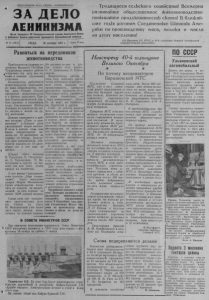 Пролетарии всех, стран, соединяйтесь! ЗА ДЕЛО ЛЕНИНИЗМА Орган Северного РК Коммунигтической партии Советского Союза и районного Совета депутатов трудящихся Новосибирской области. № 97 (20С8) СРЕДА, 30 октября 1957 г. Цена 15 коп. Трудящиеся селЬского хозяйства! Всемерно развивайте общественное Животноводство п р ш и о и к в е и ы г ш п о о д а Ый п т р е д о о и п г з о р в н о о и д д м у с к т С т в о и у е в д н м и о н я с е с т н а ь , ны с м к е о о л Шт о а к т ! а а В т и Ы бл м и А ж а м с а л е й а на душу населения! (Из Призывов ЦК КПСС к 40-й годовщине Великой Октябрьской социалистической революции). Равняться на передовиков животноводства дов П щ ри и б н л а и В ж е а л е и т к с о я го сл О ав к н т а я я бр г я о . Трудящиеся нашего района ^ в в ы ст м р и еч и аю н т ов э ы ту ми да т т р у уд в о с в е ы н м о и успехами. Большинство работников жю бы и т в с о в т о д н и а о т в ь о о б д я с Р з т о а в д т а е и л н п ь е е ст р в е б а к о , р л ы ь ч ш т в о а е продуктов животноводства и т зыи с и в — ч К е д о с о м т г ь м н ю а у т н ь и вы ст п в и о ч л б е н л с и и к т ж о ь й ай П п ш р а и и р е годы Соединенные Штаты с А ш а м у , Д е о м р н я и о а р л к с к е о и и л к п е а н о п и и е п р я р . е м и д а з о с в в л о о а д г с о т н в в а у р м д а у я й о м н у е ни к з о м л у х “ оза с к „ а П ж у д т ы ь м к д к н о е м м увеличивают надои молока. И если в начале года они брали обязательство доить по 18 центнеров н н а а н т з к у а е о в ю р р о о т с в с в в , я у о , и н н т о а о в д о о т з и и е м т п о ь е э ж т р п н о ь о о , с 1 е т п 9 щ и о , е ц д о е сч н б н и т я е * предел. Доярки этого колхоза - В. Рыльская, П. Петрушен- л к н е о о ю , гр т Е а . д с о и Т в л ы а р д ыи ля ш др ки у т г н о и г а е о , , Н н ч е . то ж В б и а ы крепло их хозяйство. А вот ферма Гражданцев- с н к и а з я ма к “ о . лхо З з д а ес „ ь Зар п я ер к е о д м ов м а у я доярка Мария Мельникова л б ч е и р н а т л н ь а о о й т об к з я а а з ж а н д т е е о ю л й ьс к т о и в р з о о з в а ы п к о р л е н п у е менее 2200 литров молока. л м я и С е . т лов С п а е р й с а в ч к о т а и и с ч о е н ск а н и а м п и од с к д ч р е е е л т п а у М . Мельниковой уже более д че в н у н х ы т х ыс о я т ч к л а и ж т д р о о й в, ко п ро о в л ы у. Н ги е е от д с о т я а р ю к т и от эт н о е й е и фер д м р ы у, О . Р . Демчихина, Е. И.Коп- лярова. Животноводы района в э ч н т е о о н г м о ия г с о п к д о о г у т о а л д , о о в б ь п и я о л д о и н б с я щ ь л е и у с в т е в л е е г и н о продуктивность, превысив результаты прошлого года. Поголовье скота увеличено в таких хозяйствах как б „З а ар з я а к м ом и м р“ у , ни и з м м . а К “ , али „Б н о и р н ь а, им. Крупской и других. Опыт их работы должен быть достоянием на каждой ферме, в каждом колхозе и применен на практике. Надо и впредь вести повседнев ную борьбу за всемерное н р во и аз т е в н и ф о т в е и о р е д м с о т б б в щ о а л , е е с е т за в п е р н п о н о д о п у г к о о л т ж и н в е и н че ы т м о и м, пор чт о о д б а ыми з с нач т и ем тел р ь а н с о улучшить доходность от животноводства. В колхозах у нас еще много нерешенных задач и с ц щ п т о е е в р в с а о в т , е в й п н е р ш н е о н а в о я у е г м с о т и е и з н ьшж з н и а и и т м в х ь о о — , т в н о к о у б а в р о о п а д б о з вышать надои. Для этого необходимо направить на фермы лучших л в ю од д с е т й ва, кол к х о о м з м но ун го исто п в роизи к ст о а м т с к о е мол к ь о ц р е м в о , в, им с е о т б ь лю в да д т о ь зимние рационы кормления и распорядок дня. Трудящиеся сельского хозяйства! Всемерно развивайте обществен
