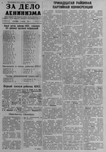 А Пролетарии всех стран, соединяйтесь! ЗА ДЕЛО ЛЕНИНИЗМА Орган Северного РК Коммунистической партии Советского Сск>8 И Рай°ннога Совета депутатов трудящихся Новосибирской обп асти. № 100(201! ) ВТОРНИК, 5 ноября 1957 г. Цена 15 коп Новый состав райкома КПСС, избранный XIII районной партийной конференцией Агрызков А . И. Алексеев П . С . Антипина М . А . Блохин П . К. * Большаков В. М . Виноградов И . Д . Гордеев А . П . Готовчиков П . М . Гузеев В. Ф. Данилов Н . М . Дьячук Я. Д . Ерохин А . И . Емельянов П . Ф. Камушкин П . Н . Кемелев С . В. Кирилин Н . Ф. Квакушонок М . Д . Курдюков В. А . Крестьянов А . И . Киченко В. И . Ковалев А . Ф. Лесковский Ф. И . Маевский И . Н . Медведев Л . С . Майоров Ю . Р . Мельникова М . М. Никифоров В. И . Осипов А . П . Прокофьев В. В. Пудов К. В. Петрушенко П . А . Парамонова Л . В. Петрова А . В. Родомакин Г . Я. Стряпченко В. И . Смык В. М . Тарасенко Ф. Ф. Устьянчик В. С . Финишин Ф. С . Филимонов А . С . Харузина Н . П . ЧасовНиков Е . С . Шаламов В. Е . Шушаков А . И . Ятис А . Б. Кандидаты в члены райкома КПСС Архипов И . А . Лобкова Н . И . Маньковский В. П> Паньков Ф. Н . Погорелое В. И. Громов В. М . Рогов Ф. 3. Члены ревизионной комиссии Баранов П . С . Горбачев Ф. Я. Муринченко Н . Д . 'Голстикова Е . М , Яковлев С . Е. Первый пленум райкома КПСС Состоялся первый пленум районного комитета КП СС , избранный на XIII районной партийной конференции. н ко и П Пм за л а е ц р е и н в К о ы у П н м м н С ы С р е с а е с и в к с з о р м б п е о р р т т а а о р н р с е ы е л м т . . о р р а г й а Ерохин А. И., рем избран т в . торым секретаШушаков А.И., секретарем райкома т. Гу- аввв В. Ф. Членами бюро райкома КП СС избраны тт. Ерохин А. И., Шушаков А. И., Гуаевв В. Ф ., Пудов К. В., Медведев Л. С., Стряпченко В.И., Родомакин Г. Я. Пленум утвердил дующих отделами рай з к а о в м е а КП СС : т. Емельянова П .Ф .— зав. орготделом, т. Пудова К. В .— ганды и за а в г . и о т т а д ц е и л и о , м т. пропаТеме- нвву А. Т .—зав. сектором учета и единого партийного билета. зет Р ы едак „ т З о а ро д м ело ра л й е о н н и н н о и й зм г а а “ утвержден т. Медведев Л. С. Навстречу Коллектив Вагановского лесничества Северного лесхоза, лесничий П . С . Злобин,профгруппорг П .В . Изюров, включившись в с п т р и е ч д е о с к к т о я е брьс с к о о р е ев с н о о ц в и а а н л и и е , одержали новую трудовую победу — заняли первое место по лесхозу. ч х е о З с д т а я в щ о В м е а е га о н с к о т р в а а с в с к л н и е о м н е о л з е п н с е а н р м и е я лесхоза, третий раз в этом го Р д а у б . отники лесничества выполнили план изделий широкого потребления за т Ш ов к , в п а о рт з а а л го н т а ов 1 к 0 е 5 п к р о о р ц м е о н в на 200 с лишним проценОктябрю тов, по лесопосадкам на 102 процента. Большинство рабочих в к ы и п е о ж лн ем ял е и ся н ч о н р о мы н в а ыр 1 а 4 б 0 от и более процентов А такие как пилорамщик И . Н . Христюк, локомобилист А . П .* Сушков , рабочий А . М . Лурпа в течение в р с а е зц го ы г т о р д у а да пок и азы з в а а н л и и ма о л б и первенство среди других рабочих. 20 человек за д л о уч б и ро л с и ов д е е с н т е н ж ы н й ые тр п у р д ем п и о и . Только при Советской власти труд рабочих стал возможен как труд чести и славы И. Лапин. ТРИНАДЦАТАЯ РАЙОННАЯ ПАРТИЙНАЯ КОНФЕРЕНЦИЯ 2—3 ноября проходила XIII районная партийная конференция. с р т а у С й п к и о о л м тч а е п т К е н р П ы в С м ы С й до т к . л с а е д Е к о р р м е о т х а и в р ы н ь , отметивший достигнутые у ц с и п и ех за и п о а т р ч т е и т й н н ы о й й о п р е г р а и н о и д за в т ю р у а щр 