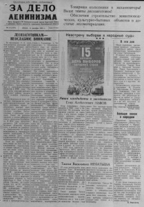 Пролетарии всех стран, соединяйтесь! ЗА ДЕЛО ЛЕНИНИЗМА Орган Северного РК Коммунистической партии Советского Союза и районного Совета депутатов трудящихся Новосибирской области №115 (2026) СРЕДА, 11 декабря 1957 Г. ¡Цена 15 коп. Товарищи колхозники и механизаторы! Выше темпы лесозаготовок! ч ст е а с т к к О и е х б , е л с к е п у с е о л ч м ь и т а м у т р ер н с и о т - а р б л о ы а и м т т о и е в . л ы ьс х тво объ ж е и кт в о о в тн в ов д о о д ЛЕСОЗАГОТОВКАМ— НЕОСЛАБНОЕ ВНИМАНИЕ За последние 2—3 года о б н о а ль нш а и ч н а с л т и во а к к о т л и х в о н з о ов ве р с а т й и т п с в у т р о р в о д н о и ч . о е з - в с б к о Ты и д и м с т п т о и о в в в е о ы н е н м о и е ст ж и р и о в и к о т т у е н л л о ь ь помещениями обеспечил себя колхоз,,Путь к коммунизму “ .В 1957 году в этой артели построена т з ц а е и л р я ь н , н о о о ф в а о б щри е к о хр т а р , а е н м э и л о л е н и к т щт и р е р о , о к с в а т а п а н н и о м ко н в о . го Н д е о п м л о о в хи д м л и я ко т л е х м о п з а н м и и вели строительство колхозы л „ б Н о а Е х о в а щ в , д а е я о „ л П в ж ж ам и б н о з о я л н т ь ь ь б ш “ ы , К и т и ь и х м р р о .В а м в з о а а в р “ с е . о ш р ш н т и а у то строительство животно- одческих, ных и культ п у р р о н и о з - в б о ы д т ст о в в е ы н х объектов в 1958 году. По с н у ы т й и п д у е н л к а т , к р а а ж й д о ы н й а н д а о с л ел ж е е н н быть л с а т с С в т о о н с м о т . е оя о с х в о в ш в а е е ч щ е е с н а я н н и а с е т п р д о н о и я к х т у е о л л б ь ь т б у о р т н е о-п п р о о с с т в а е в т и и л т о ель з н а о д й ачу р —а - обеспечить каждый ленный пункт культурн н ы а м се и о о к т ч а е м а к г и а а . мм и и: 1а и к к о к л е р у а б с а ж н м е ы и м , и ре б ш и у е б г н о л и л и е приняла и сессия районного с с о я в . е В та 1 д 95 е 8 пут г а о т д о у в т п р р у е д д я с щто и и х т построить 330 культурно- бытовых объектов. Кроме н в т н е о о о н г в о н с о т , ыд р ч х в о е и с р п т к а е о и й л м х о ь е н с и щ е тв е о н н п е и р 1 й о з 0 . и а з в В ж в е и о р 1 д в ш 9 о с 5 т е т 8 году должно быть начато с в т о р т Е о н с и л о т и в е о л д ь ч ж с е т е с в к о и п х З р о о д н а в о н о в а р ы л о и в х з . и ж р и о к в л ат ад ь, ы к в а а к ю и т е ся на э п т е о р т сп с е ч к е т т ив з ы а, то можно придти к выводу, что все наши планы могут стать под угрозу срыва. Колхозами района по плану нужно за зиму заготовить 2 х н о 0 а д , к 5 и о т т н ы а с у я с жч е е г к о у д б н п о я о млш з е н и т и м р й ыов , . д П е о р н д о ь м н пе о ы ш го н н е о ко м в л е о х л ж о е з б м а ы , н к а л з о е в т с а о о т р з ь ы аг й н о и то о у в д с ки. В колхозах не ведется должной организаторской з р а а г б о о т т о ы в , ок в с с т т о о я р т он и е м о а т ши л н е н с о о - тракторные станции и их т д д е ию л р к ь е о н к в о т . , ор П ч ы т о о э т т т о н . м а Я у т 1 и 0 с не д и е у к д К а и б у в р р и я заготовлено всего лишь 500 кубометров. Многие р ни ук м о а в ю о т ди с т т е р л а и нну к ю олх п оз о о зи в ци з ю а, и рассуждают так: „Зима большая, время еще есть, наверстаем“ . Это сится к председателям о к т о н л о хозов т. Агрызкову, т. Ча- совникову, т. Шумскому. Ничего еще не сделано п ка р м акти л ч ес е а ског в о к п о о лхо з з а е гот и о м в . Мдо . й Го и р з ько 6 го, п х о о л т е я вод в че к ск а и ж х с б т р р и о г е а н д ны ес х ть об п ъ о ек 1 т —а, 2 н с е к д о о т размещен в примитивных помещениях. Нет в этом к ро о т л н х о о г з о е к и лу н б и а, од б н и о б г л о иот д е о к б и и красного уголка. Что сейчас практически необходимо сделать, чтобы в м ро у д в м ек л 6 а е —б с р а 7 е 