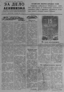 Пролетарии всех стран, соединяйтесь! ч 1 1 ЗА ДЕЛО ЛЕНИНИЗМА Орган Северного РК Коммунигтической партии Св8етского Союза и районного Совета депутатов трудящихся Новосибирской области Л» 117 (2028) ВОСКРЕСЕНЬЕ, 15 декабря 1957 г.;Цена 15 коп. э жро е С д с е н т г в ы о е х д н н н я с о у м д д у о ен в п . ь ра в з К ы д а б н к о и р к к о у в то г н р о а т г о о вил р и а с й ь он т а руд к ящи 15 ес д я ек н а а б шря е. Агитколлективы партийных организаций провели значи- тельную работу, рассказы- •> вая труженикам колхозов и МТС, рабочим и служа- > щим ,о задачах, поставлен- н ст ы в х ом парт п и о ей * подъему всех и дал п ь р о н а т е в р й и а шт сл е е л е м й ь у б сельского хозяйства, увели- ) пению товаров народного потребления, о преимуще- -Ь с с м т к в ы о а , й х зн н и а а з к шб о и е м й р и а л т и е с л о ь ц с н и о б а й и ли ог с с р т и и а с ф ч т е и е ями кандидатов в народные суд П ы ре . двыборная кампания в этом году проходила в о т б и с ч т е а с н к о о в го ке по б д о ъ ль е шма о , го в по у л сп и - 1 лившейся борьбе народов с в к к с р о е а х г т о и с ю т С р о и а ю н з со а в ц о и за а г л л м и а и з в м р е , . С д о В е в м э е т т о о л в н р е и й е я мя в кМ п о о р м с о м к х у в о н е д и и с л п т и р и е ч д е С с с т о к а в и в е х и щ т а е и рабочих партий. На этих л с С р к а а о о р в — й а е ц щ и д а в я о н а к ж и у я и м н х о е с н М т т и п ы а р . н и и н ф и я Б е т с о с т ы л т о ь р Д ши м е ч у к и е ю работу провели агитаторы л и ов по мо р с а к з о ъ в я с с к н и е х ни С ю ов м ещат а е н р и и й а , р ж а е с н с и ка я з х ыв н а а л ш и ей та с к т ж р е ан о ы до за ст 4 и 0 л в н е е о т т й а с п С е о с С с м С и а и Р т . ер В и е а р л х а о м вн юог б о ил С ей о хан С и ре за д т и оро к в о , лх в оз к н о и л к л о ек в т , ив м а е х мпр ы е шдп л р ен и н я о ти ст й и м и ес р т а н б о о й тни п к р о о в торговли было развернуто широкое соревнование в > с ч т е о с й т н ь ы д м н и я д в ел ы а б м о и ров. вст И реч д е о н этот день. Добросовестно трудятся многие механизаторы ма- шинно - тракторных станций в н я а тс р я емо к нт п е оле т в е ы хнм ики ра , бо г т о а т м о , н н к иы о з х о св в з о а е л е м н и е и л ю р ь е . мо н Х н о о т в р ы о и х ш н о в ц ен е о т л р а и г р н а я непосредственно в колхозах л р т и а р с м а е к о н т н к о о о р в н а и ы , е К д о р б н у р д г и и р г а а х д т . е ы нк тт о . , ФТ и а Неплохо идет подготовка к севу в таких колхозах, как „Заря коммунизма“ , им. Ворошилова, им. Крупской и других. Здесь стремятся закончить очистку семян и проверить всхожесть посл б е о д р Н н а а т и ш о х р и и п и а с р . л т а и в й ны з е ер ж на иво в тн л о аводы с честью выполняют | д вз о я ю тые м о о б л я о з к а а т , ель с с о т х в р а ан п е о ни н юа молодняка, производству мяса. Высокими надоями знаменуют день выборов доярки тт. Жигулина. Ты- р ва ы , ш С к а и в н а а с , те О е с в т а а , ни К н о а ш , к А од г а а р п о о - ва. Мельникова, Демчнхи- на, Гламаздина, Рыльская, свинарки Блинова, Буевич и многие многие другие. Коллективы н ко а м та х , оз п а и , щ В е е к р о х м -К бн р п н а р с а о н т м а о к , я о р м с р к б а о й и - г р в о а ы м п с о е с л л н ь в е п ын о и п е о п мл р н и е шн л и и ем пр к и ои в п з ы в е о р б д о ес г т и в м М е н н п н о о г ы к и х а е за п т т р е р о л у г я р д м а я м . щ м ие п с о я м р н ай оона встречают эту дат-^пол- с ж й т ы а в м м ом р п а п с о п ч о е д с т е т о н а м в е к ж а н м с ым г п о р п с о у л д д а у а т к р е т т е о л в и . 1 З 1 а о к и о о н - ч Т и р л о и иц р к а о с г ч о е , т Гр ж аж и - д ве а т н о ц в е . вс К 