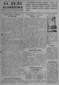 Пролетарии всех стран, соединяйтесь\ ЗА ДЕЛО ЛЕНИНИЗМА Орган Северного РК Коммунистической партии Советского Союза и районного Совета депутатов трудящихся Новосибирской области В наждом колхозе следует иметь на фермах хорошо оборудованные красные уголки, которые будут служить местом учебы и обмена опытом работы животноводов. №123 (2034) ВОСКРЕСЕНЬЕ, 29 декабря 1957 г . Цена 15 коп КРАСНЫЙ УГОЛОК НА ФЕРМЕ м но е К в . о р С д а юы сн д ы а п й о со чи б у и г т о а р т л а ь юок т св ся н е а ж ж и и е ф в е г о р а т - Зрты, журналы, поговорить по душам. Там, где по-настоящему з д а а бо и тя о т т с д я ых о е б ж ус и л в о о в т и н я о х во т д р о у в , л н н и а ы н е ф ныу ер г м о м и л а к х ц и е . н и т О м р н а е и м ю и т ст с м я ал а и с к с п о р в о а о д с - политической и культурно- просветительной работы. В н на и я х п в р е о д п е а т г с а я н п да р , ои к з р в у о ждс к т о в в е а н я н р ст ы а к б е и от “ а . г , азе в т ы ы п , уск „ а б юое т в с ы я е ст л е и н Просторно в красном яке на Чувашинской мо- уо-товарной ферме кол- ги/а „Новая жизнь“ . На стенах лозунги, диаграммы, д л н г н и а я о о е т й м н п е р о и г р а а ц б в з ы с е е о т , ч т т е ы н е с н р к и н . а о к о м т и й П н р фи м д и к е о н х и р я о о м р г д ы о к и я т и , т ч и , т д р о с а р т б юж у е ы обсудить итоги минувшего к дня, послушать агитатора Машу Дьячук или провести д л н о е о ч о н ж с е т н р е и ы е с . д т й в н е К у н ю о н н о ц й р ер еп т с е , а т м и п о ц д о и д е юя го т т е х л о у в ь животноводами в шкр е а л сн с ом б у о г л о ь л ш к и е м фер у м сп ы е , х п о р м о. Доярки В.Шмелева, А.Кош- ходарова, В. Васильева, Г. Белова и другие задушевé¡o исполнили песни, час- 'ушки, танцы. Хорошие условия для к н ск ы у о л й ь в т , у к р о н „П л о х у го о т з ь а о х т к ды и к х м о а . мм с К у о р н з у д и п а з му“ , „Заря коммунизма“ . Готовятся к встрече Нового года ганизация приняли меры К|- Хороший клуб построили устранению недостатков, ¡в селе Гражданцево колхоз- Сейчас у животноводов! ники сельхозартели „Заря т н н в с и и а я й п м р о я и н у ж з и с е п н н е в е н х а а о жж е н а в л е в р й е е я ш м б и о я с х и р . ь л Т б . р у е у с О д л д я з о а д л п а о о в д ь и ъ я е у м в я е п в л р л и о я ч д е е у т н к с и т я е ивн з е о а г с б о т о и т п а о с г т о а о людях, об их воспитании. п В н р о о о т д с у а п шм о н ч о е е м ж у о и т в н н о е о т т шн ер о е п в н и о и д м е о о в к . р з а а в А такие факты, к сожалению, имеются. Не проявляют должной заботы о людях р хо аб за о р т т н е и л к я а х х „Б ф о е р р ь м ба з в а м се и л р ь 41 , им. Ворошилова. Доярки Томиловской и Кардонов- т ск о о в й , м ф ы е л р а м , з н а е па и с м н е ыю х т в х е а д л ер а. Не ведется на этих фермах и культурно-массовая бо Г та д . е, как не на ферм р а а х , с т н р е ы е л д ь п и н р у о ю ж в и од в ч и о ас т т т н ь ь о с в с е о в й д о ч о е а в г с , о з д н о а в л ч р ж и е нм к и о е й т н о и р к ыу р л е а ь б т о у и т р н з ы и . . к н и и О х д у н ч с а и р к д е о я ж т д н е е в клубах .или -библиотеках и- б ж у д д у ь т, пр п и ок д а ет. к А ни р м аб к о т т о н - и н к и и ф т н а а е т л р о о м р в а . н , Т е н а с е к л о ы в е иш д а я т п т о г л г о а о л з ж о е е с т н а ,жи а е у г р и в селах Сургуты, Прибелин- ка, Право-Каёвка. т г и ут й П н р н ы а е в е ле о н у р ч и г и а я н тыи к з в о а а л ц т х и ь о и , за н , ч е т п о м а з р о а последнее время на фермы пришло много молодёжи. Их надо воспитывать, пок гл о я м д м и у т ни в з х м од а". в К н р е а г с о о , чн р о аду в е ы т л н в о з и о е р . в ы У к юл в у 