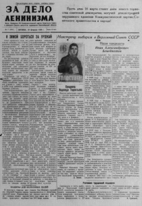 К у л ь т р а б о т н и к и о т ч и т ы в а ю т с я п е р е д н а с е л е н и е м В ч е с т ь Х Ш с ъ е з д а В Л К С М В с ё л а х н а ш е г о р а й о н а п р о х о д я т о т ч ё т ы п е р е д н а с е л е н и е м з а в е д у ю щ и х к л у б а м и , б и б л и о т е к а м и и д р у г и х р а б о т н и к о в к у л ь т у р ы о р а б о т е к у л ь т п р о с в е т у ч р е ж - д е н и й . К о л х о з н и к и , р а б о ч и е и с л у ж а щ и е в с в о и х в ы с т у п л е н и я х в с к р ы в а ю т н е д о с т а т к и и н а м е ч а ю т п у т и к д а л ь н е й ш е м у у л у ч ш е н и ю р а б о т ы . З а в е д у ю щ а я П р и б е л и н - с к и м с е л ь с к и м к л у б о м А. Ф ё д о р о в а р а с с к а з а л а н а с е л е н и ю о р а б о т е к л у б а з а 1957 г о д . — В т е ч е н и е г о д а . — г о в о р и т т . Ф ё д о р о в а , — в к л у б е р е г у л я р н о ч и т а л и с ь л е к ц и и , п р о в о д и л и с ь б е с е д ы н и е . Н а с е л е н и е м е с я ц а м и н е в и д и т к и н о . П р и п е р е п о л н е н н о м з а л е о т ч и т ы в а л с я о с в о е й р а б о т е з а в е д у ю щ и й с е л ь с к и м к л у б о м с е л а Ч у в а ш и т. П е т р о в и з а в е д у ю щ а я б и б л и о т е к о й т . Д ь я ч у к . М н о г о п р и ш л о с ь им п о т р у д и т ь с я , ч т о б ы п о д г о т о в и т ь к с о б р а н и ю н о в о е п о м е щ е н и е к л у б а . Н а д о б ы л о п р и в е с т и е г о в п о р я д о к . С п о м о щ ь ю а к т и в а м о л о д е ж и п о б е л и л и з а л , р а з в е с и л и л о з у н г и , п л а к а т ы , о ф о р м и л и с т е н д ы . З а д о л г о д о н а ч а л а с о б р а н ия п р и ш л и в к л у б к о л х о з н и к и , р а б о ч и е и с л у ж а щ и е . М о л о д е ж ь о р г а н и з о в а л а п о р а з л и ч н ы м т е м а м и в о - т а н ц ы , п о ж и л ы е в е л и б е с е - н р о с а м . Р а б о т н и к и к л у б а п о м о г а л и р е д к о л л е г и я м в ы п у с к а т ь „ б о е в ы е л и с т к и " , о ф о р м л я т ь „ о к н о с а т и р ы " . Н о в р а б о т е к л у б а е с т ь е щ е м н о г о н е д о с т а т к о в . П л о х о р а б о т а л с о в е т к л у б а , х у д о ж е с т в е н н а я с а м о д е я т е л ь н о с т ь , н е т м у з ы к а л ь н ы х и н с т р у м е н т о в и м е б е л и . К л у б о м о ч е н ь м а л о и н т е р е с у ю т с я п а р т и й н а я и к о м с о м о л ь с к а я о р г а н и з а ц и и . Н е б ы в а е т з д е с ь и з а в е д у ю щ и й о т д е л о м к у л ь т у р ы т. Я к о в л е в . Т р е т и й г о д с т р о и т с я н о в ы й к л у б и в с ё е щ ё не в и д н о к о н ц а е г о с т р о и т е л ь с т в а . Н е у д о в л е т в о р и т е л ь н о п о с т а в л е н о к и н о о б с л у ж и в а - д ы о д е л а х к о л х о з а , о р а б о т е . С о б р а н и е о т к р ы л о с ь р о в но в 9 ч а с о в в е ч е р а . Д о к л а д ч и к и в о с н о в н о м г о в о р и л и о н е д о с т а т к а х в р а б о т е к л у б а и б и б л и о т е к и . Н е б ы л о у в я з к и в р а б о т е с о в е т а к л у б а, х у д о ж е с т в е н н а я с а м о д е я т е л ь н о с т ь р а б о т а л а н е д о с т а т о ч н о , п р и ч е м и н т е л л и г е н ц и я с е л а — у ч и т е л я с т о я т в с т о р о н е о т э т о г о д е л а . Г шб л и о т е к а р е д к о п р о в о д и т ч и т а т е л ь с к и е к о н ф е р е н ции , н е у д о в л е т в о р и т е л ь н о о б е с п е ч и в а е т п е р е д в и ж н ы е б и б л и о т е к и к н и г а м и . С. Дикалов. Как мы готовимся к 8 марта Л е н и н г р а д . Н а п р я д и л ы ю - н й - т о ч н о м к о м б и н а т е „ С о п е т с к а я з в е з д а “ ш и р и т с я с о р е в н о в а н и е м о л о д е ж и в ч е с т ь XI I I с ъ е з д а В Л К С М . М о л о д ы е р а б о ч и е б е р у т п о в ы ш е н н ы е п р о и з в о д с т в е н н ы е о б я з а т е л ь с т в а . О д н о й и з п е р в ы х в к л ю ч и л а с ь в с о р е в н о в а н и е п е р е - м о т ч н ц а к о м с о м о л к а Н и н а Г у с е в а . В с е г о л и ш ь ч е т ы р е г о д а р а б о т а е т о н а н а к о м б и н а т е , а е е з а с л у ж е н н о с т а в 
