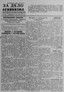 З А Д Е Л О ЛЕНИНИЗМ А О р г а н С е в е р н о г о Р К К о м м у н и с т и ч е с к о й п а р т и и С о в е т с к о г о С о ю а о и р а й о н н о г о С о в е т а д е п у т а т о в т р у д я щ и х с я Н о в о с и б и р с к о й о б л а с т и Г о л о с у я з а ка н ди д ат о в б л о к а к о м м у н и с т о в и б е с п а р т и й н ы х , наш н а р о д б у д ет г о л о со ват ь з а п р е т в о р е н и е в ж и з н ь ист о р и ч ески х решений X X съ е з д а К о м м у н и с т и ч е с к о й п а р т и и , з а усил ение э к о н о м и ч е с к о г о и о б о р он н о го м о г у щ е с т в а н а ш е й Родины, з а е ё процветание, з а д а л ь н е й ш и й п о д ъ ё м н а р о д н о го бла го с о ст о я н и я , з а с ч а ст л и в ую ж и з н ь с о в е т с к и х л ю д е й , з а у к р е п л е н и е м и р а во всём м и р е . М 28 (2062) ВОСКРЕСЕНЬЕ, 2 марта 1958 Г. Цена 15 коп И Н Ф О Р М А Ц И О Н Н О Е СООБЩЕНИЕ О П л ен ум е Ц е н т р а л ь н о г о К омитета К омм уни стич еск ой партии С о в е т с к о г о С о ю з а 25— 26 февраля 1958 года состоялся Пленум Ц ентрального Комитета Коммунистической партии Советского Союза. Пленум за сл уш а л и обсудил доклад то в .Х р у щ е в а Н .С , „ О дальнейшем развитии колхозного строя и реорганизации машинно-тракторных станций*. П л е н у м Ц К принял соответствующее постановление. ПОКОНЧИТЬ С ОТСТАВАНИЕМ ПРОИЗВОДСТВА И ЗАГ0Т0В0Н МОЛОКА В те к ущ е м году нашему району следует сдать молодка государству бол ьш е на ■^18,3 процента, чем в 1957 году. Однако вы п олн е ние плана заготовок молока идёт не вполне уд о вл е т во рительно. Д в у х м е с я ч н о е з а дание выполнено на 20 ф е в раля только на 61,7 процента. Н еко торы е председатели колхозов и сельских С о в е тов, секретари партийных организаций правильно поняли з а д а ч у —в ближайш ие 2 — 3 года догнать С Ш А по производству продуктов животноводства на д у ш у населения и практическими делами отвечаю т на О б р а щение Ц К К П С С и Совета Министров С С С Р ко всем работникам сельского х о зяйства. Колхо з „ П у т ь к к о м м у низму " на 20 февраля в ы полнил д вухме с ячное задание на сто процентов, т о варность молока здесь со- t с та в ляе т 70 процентов. К о л хоз им. Калинина выполнил задание на 95 процентов, товарность — 81 процент. С е л ьхо зар те ль „ З а р я к о м муни зма " выполнила задание на 88 процентов, товар ность молока со ставля ет 91 процент. Совершенно н е уд о в л е тв о рительно выполняет задание по заготовкам и очень низкая товарность молока в к о л х о з е „К р а сн ы й О к т я б р ь " . Задание выполнено на 20 процентов, товарность мо лока составляет всего л и ш ь 40 процентов. К о л х о зы им. М. Горького , „ П а м я т ь К у й б ы ш е в а " , „ П а м я т ь К и р о в а " , выполнили задание на 46— 69 процентов, товарность молока в этих хозяйствах 50— 60 процентов. П о ч е м у ж е в этих к о л хозах ниж е показатель по выполнению плана за го то в о к и товарности м о л о к а ? Д е л о все в том, что в одних о с ущ е с твл яе тся кон т р о л ь за расходом молока внутри хозяйства, в других этого нет и расходуется оно без меры. Б о л ь ш у ю массовую работ у среди населения по прод аж е молока государству провели председатели Граж- данцевского и Ф ёд ор о вско го сельских Со ве то в тт.Гри- горьев и Ка лмы к о в . Граж- данцевский С о в е т провёл во всех населенных п у н к тах сходы граждан, после чего была проведена сессия сельсовета с вопросом о продаже государству прод у к т о в животноводства. Трудящ иес я решили продать молока не менее 700 литров от каждой коровы. Своё обязательство они в ы полняют
