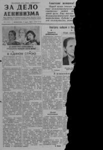 П р о л е т а р и и в с е х ст р а н , с о е д и н я й т е с ь t З А Д Е Л О Л Е Н И Н И З М А Орган С е в е р н о г о Р К К о м м у н и с т и ч е с к о й п а р т и и С о в е т с к о г о С о ю з а и районного С о в е т а д е п у т а т о в т р у д я щ и х с я Н о в о с и б и р с к о й о б л в с т н .V. 31 (2С65) В О С К Р Е С Е Н Ь Е . 9 марта 1958 Г . ' П е н а 15 к оп . Советские женщины! П е р е д н а м и стоит ение к ом м у н и ст и ч е ск о г о с о в е т с к и х л ю д е й по\ эт о й ц е л и. Е щ е теснее К о м м у н и с т и ч е с к о й nap i вителъства, б удьт е в лей к о м м у н и з м а , акт\ Навстречу в ы баомр в Вер; ДА ЗДРАВСТВУЕТ СОЛИДАРНОСТЬ ТРУДЯЩИХСЯ ЖЕНЩИН ВСЕГО МИРА! В ЕД ИНО М С Т Р О Ю М е ж д у н а р о д н ы й ж енский j Е . Новикова, Е . Ж и г у л и н а , день мы отметили к а к день боевого сплочения женщ ин всех стран в борьбе за мир, ’ за с ч а с т ь е наших детей. В авангарде этой борьбы идут женщины нашей с тр а ны. С о в е т с к и е женщины, раскрепощенные В еликой О к т я брьской революцией, проя в л яю т чудеса героизма. Вмес те с отцами и б р а т ь ями боролись с белогвар- дейщиной и интервентами, в годы В ели кой О т е ч е с т венной войны с р аж а л и с ь -за независимость своей Р о д и ны на ф р о н т а х ,г е р о и ч е ск и е дела вершили и в т ы л у . А сейчас, на фронте мирного труда женщины активные участницы строительства коммунизма. Во всех областях народного хозяйства и к у л ь т у р ы , на всех у ч а с т к а х о бщ е с т венной и государственной А деятельности наши женщи- ны вместе с м у ж ч и н а м и на- ^ стойчиво борются за прове- -дение в ж и з н ь мудрой политики К о м м у ни с ти ч е ск о й партии и Со ве тско го прави тельства. С неиссякаемой энергией и творчеством т р у д ятс я они в промышленно сти, на транспорте, стройках, борются за высокие у р о ж а и и подъём ж и в о т н о водства. Ж е н щ и н а у нас у п р а в л я ет государством. Сотни женщин избраны в В е р х о в ные и местные Советы. Немалый вклад в у к р е п ление общественного х о з я й ства к олхозов внесли и женщины-колхозницы и работницы М Т С нашего района, М ы можем назвать д е с ятки таких, чей труд приносит б о л ь ш у ю п о л ь зу общ ем у д е лу . Много лет работают на фермах и добиваются вы со ки х надоев м о ло ка доярки П . Топорище- ва, А. Нескорова, П. Пет- р уш енко , У . Савастеева, О . Ло се ва , О. Демчихина, А , Ковган, А . Коростелева, О. О к у н е в а и многие д р у гие. Добрая слава идёт о свинарках Зинаиде Б л и н о вой, Марии Б у е в и ч , Пе- логее Ш ла ковой , чабане , м Матрене Васи ль евне Атоп- |м а Р 11Я кипой. Отмечены п р а ви те л ьс т венными наградами наши славные трактористки Ф ё к л а Андреева и Антонина Ф у- ллвкина, комбайнер Н а т а л ь я Фёдорова. Со словами благодарности обращаемся мы к н а шим славным работникам просвещения, к воспитателям детей. В день 8 марта отмечены л у ч ш и е из них Л . Е . Абрамович , М . С. Любимова, В. И. Масис , Т. В. Падалко, А. Ф . Мо- гутова и другие. К о л л е к т и в медицинских работников т а к ж е отметил славных т р у ж е н и ц а к у ш е р к у А. К о п ы л о в у , с анитарку Н. Н е ч а е в у и других, а т а к ж е работников детских у ч реждений. Многим женщинам у ч реждений и организаций, предприятий местной промышленности в этот день были в р у ч е ны почетные грамоты райсовета. Среди них доставщик телеграмм Е . Спичкина, письмоносец О. Васильева, продавец Р . Картовенко, портниха А. Косицина, рабочая п ункта заготзерно Д . М е н ь ш и к о ва, наборщица типографии А . Ч е х , мастер кондитерского цеха пищекомбината Т. Р