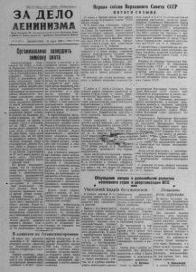 П р о л ет а р и и &%'л ш р й н, соединяйт есь! З А Д Е Л О А Ш Н М Н И З М Й О р г а н С а з е р н а г з Р К К с к к у т с т к ч е с к с й п р т к и C c E f i t K o r o С о ю з а и р а й о н н о г о С о в е т а д е п у т а т о в т р у д я щ и х с я К с в о с и б и р с н о й о б л а с т и - — — - - j . .* 40 (207 1) В О С К Р Е С Е Н Ь Е , 30 марта 1958 г . ( П е н я 15 коп. Первая сессия Верховного Совета СССР п я т о г о с о з ы в а Орагнизован о завершить зимовку скота Воодушевленные Обра щением Ц К К П С С и С о в е та Министров С С С Р ко всем работникам сельского хозяйства и постановлением февральского Пленума Ц К К П С С а дальнейшем развитии колхозного строя и реорганизации М Т С , ж и в о т новоды района широко развернули социалистическое соревнование за выполнение взятых обязательств. Б л а годаря у л у чш е н ию ухода, содержания и кормления скота, внедрению передового опыт^, работники многих ферм в истекшем месяце добились новых успехов в повышении надоев молока. В колхозе им. Калинина надоено в феврале по 168,7 литра молока на корову, в колхозе „ П у т ь к коммунизм у " по 160,2 литра. На третье место поднялась артель „ П у т ь Сталина", а за 25 дней марта здесь надой составил у ж е * но 123 литра на фуражн ую корову. З н а чительно возросли надои в сельхозартели „Заве ты И л ь и ч а ". Если в феврале ко л хоз был в числе отстающих, то по итогам соревнования за 25 дней марта вышел на пятое место. Продуктивность коров в артели растет с каждым днем. Но факты показывают, однако, что за последнее время заметно ослабло внимание к животноводству отдельных руководителей колхозов и партийных организаций, Сократились на- - дои молока в колхозах „ З а р я коммунизма" , „ П а мять Ленина". Мало по- прежнему надаивают молока артели „Н о в а я ж и з н ь " , „Красный О к т я б р ь " , „ П а м ят ь К у й б ы ш е в а " и другие. Здесь мало проводится работы с людьми. Корма з а даются в неприготовленном виде, плохо применяются минеральная (гашенная з о л а ) и витаминная (хвоя)под- кормки. Неудовлетворительно ведется подвозка кормов к фермам. Сено и солома скармливаются с в о за. Не организовано по-настоящему в колхозах и з а паривание грубых кормов. Реш аю т , договариваются на заседаниях правлений о правильном использовании кор мов, особенно соломы, но все эти решения так и ос таются на бумаге. В колхозе „Борьба за мир" некоторое время запаривали корма, затем прекратили.Такое ж е положение и в ряде других колхозов, р у ководители которых до настоящего времени никак не поймут о всей важности рационального использования кормов, что отрицательно сказывается на продуктивность коров. В животноводстве наступил сейчас самый трудный, самый ответственный период завершения зимовки скота. Корма в большинстве колхо зов на исходе,на фермах идет массовый расплод. Задача животноводов — организованно завершить зимовку скота, не допустить с н и ж е ния надоев молока, сохранить все поголовье и подготовить животных к пастбищному периоду. Дл я успешного завершения зимовки скота необходимо принять все меры.Особое внимание руководители колхозов и специалисты сельского хозяйства должны обратить на подвоз к ф у ражным складам грубых кормов, на организацию запаривания в большом количестве соломы, применение минеральной и витаминной подкормки, правильное использование концентратов. Н у ж н о также усилить работу с людьми, от плодотворного труда которых многое зависит в успеш