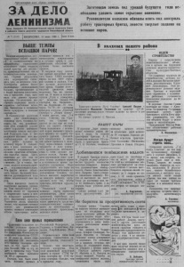 П р олетар ии всех с т р а н, соединяйтесь! З А Д Е Л О ЛЕНИНИЗМА О р г а н С е в е р н о г о Р К К о м м у н и с т и ч е с к о й п в р т и и С о в е т с к о г о С о ю з а и р а й о н н о г о С о в е т а д е п у т а т о в т р у д я щ и х с я Н о в о с и б и р с к о й о б л а с т и Заготовкам земель под урож ай будущего года необходимо уделить самое серьезное внимание. Руководители колхозов обязаны в з я т ь под к о н т р о л ь работу тракторных бригад, довести твердые задания на вспашке паров. № 72 (2105) ВОСКРЕСЕНЬЕ, 15 июня 1958 г. Цена 15 коп. ВЫШЕ ТЕМПЫ ВСПАШКИ ПАРОВ! В а ж н ы е м е р оп р и яти я , о с у щ е с т в л е н н ы е н аш ей п а р т и ей и п р а в и т е л ь с т в о м по д а л ь н е й ш е м у у к р е п л е н и ю к о л х о з н о г о с т р о я , о т к р ы л и новый простор дл я р а с ц в е та про и зв о д и тел ьн ы х сил в со ц и а л и с т и ч е с к о м з е м л е д е лии. П е р в ы е р е з у л ь т а т ы э тих мероп ри ятий с к а з а л и с ь у ж е на весеннем се ве . Х л е б о р о б ы района более рационально и с п о л ь зо в ал и т е х н и к у , органи зо ванн ее и с более в ы с о к и м к а ч е с т в о м , чем в п р ош л о м году , п р о вели с е в ранних я р о в ы х к у л ь т у р . И з к о л х о з о в п о с т у п а ю т о т р а д н ы е в е с т и о х о рош ем со с тоян ии в с х о дов. З а к о н ч е н ы в основном посев к у к у р у з ы и посадка к а р т оф ел я . В б о л ь ш и н с т в е к о л х о з о в давно у ж е о сво бод ила сь о сн о в н а я ч а с т ь т е х н и к и . К а з а л о с ь бы, ч т о р у к о в о д и т е л и этих х о з я й с т в у д е л я т самое с е р ь е з н о е внимание з а го т о в к а м з е м е л ь под у р о ж а й б у д у щ е г о года и н е медленно п о с т а в я т в сю в ы с в о б о д и в ш у ю с я от п о с е в ных работ т е х н и к у на в с п а ш к у паров. К с о ж а л е нию, в ряде к о л х о з о в д о п у с к а е т с я н е п р а в и л ь н а я и в р ед ная п р а к т и к а о т т я г и в а ния подъёма паров. З д е с ь т р а к т о р ы до сих пор не в к л ю ч а ю т с я в п а х о т у , п р о ст а и в аю т . Д а и тем п ы , к а кими вед ет ся в сп аш ка ,кр ай- , не н е у д о в л е т в о р и т е л ь н ы . Э т и ф а к т ы м о ж н о о б ъ я с н и т ь т о л ь к о б е с х о з я й с т в е н н о с т ь ю р у к о в о д и т е л е й к о л х о зов , недооценкой ими п а ров. П а р ы я в л я ю т с я з а л о г о м п о л у ч е н и я в ы с о к и х у р о ж а ев . Они с п о с о б с т в у ю т о ч и щ е н и ю полей от с о р н я к о в и сох р ан ению влаги в п о ч ве, п о в ы ш а ю т у р о ж а й н о с т ь в с е х в ы с е в а е м ы х к у л ь т у р . Н ы н е ш н я я в есна по к а за ла т а к ж е , ч т о на ли чи е г о товы х з е м е л ь дл я р а зм ещ е н и я я р о в ы х намного у м е н ь ш а е т о б ъ е м т р а к т о р н ы х работ, п о з в о л я е т про вес ти с е в с на именьш им н а п р я ж е н и е м и в л у ч ш и е сро ки , а с л е д о в а те л ь н о , о б е с п е ч и т п о л у ч е н и е более в ы с о к о г о у р о ж а я . В т е к у щ е м г о д у к о л х о зам района предстоит в с п а х а т ь бо л ее 13000 г е к т а р о в паров, из них 3200 г е к т а ров ц ел ины и з а л е ж и . У х о д я т л у ч ш и е а г р о т е х н и ч е с к и е сроки . О д н а к о дело с пахотой д в и ж е т с я о ч е н ь медленно. Т а к , по с о с т о я нию на 14 ию н я в с е л ь х о з артели „ П у т ь к к о м м у н и з му “ всп ах ан о т о л ь к о 155 г е к т а р о в , им. К а л и н и н а - 90, им. К р у п с к о й — 70 г е к таров. П о 50— 60 г е к т ар о в всп ах ал и к о л х о з ы „ К р а с н ы й О к т я б р ь * 1и „ Н о в а я ж и з н ь 14. А т а к и е артели, к а к „7-й с ъ е з д С о в е то в , им. Г о р ь кого , им. С та лин а и д р у г и е до сих пор не п о д няли ни одного гектара. Т а к о е п о л о ж е н и е с в с п а ш кой паров в ы з ы в а е т с е р ь е з н у ю т р е в о г у за с