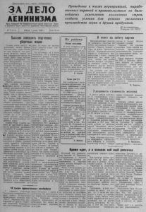 П р о л е т а р и и в с е х с т р а н , с о е д и н я й т е с ь > З А Д Е Л О ЛЕНИНИЗМ А О р г а н С е в е р н о г о Р К К о м м у н и с т и ч е с к о й п а р т и и С о в е т с к о г о С о ю з а и р а й о н н о г о С о в е т а д е п у т а т о в т р у д я щ и х с я Н о в о с и б и р с к о й о б л а с т и № 7 9 ( 2 1 1 3 ) СРЕДА, 2 июля 1958 г. Ц е н а 1 5 к о п . Проведение в жизнь м е р о п ри я т и й , в ы р а б о т а н н ы х партией и пра вит е л ь ст в ом по д а л ь нейшему у к р е п л е н и ю к о л х о з н о г о с т р о я , с оз д а ет у с л о в и я д л я р е з к о г о у в е л и ч е н и я прои з в о д ств а з е р на и д р у г и х п р о д у к т о в. И з п о с т а н о в л е н и я П л е н у м а Ц К КП СС . Быстрее завершить подготовку уборочных машни Т у ч н ы е х л е б а р а с т у т на к о л х о з н ы х п о л я х р а й о н а . Б о г а т ы й с б о р з е р н а о б е щ а ю т о н и . Н е д а л е к т о т д е н ь , к о г д а н а ч н е т с я с т р а д а — с а м о е н а п р я ж е н н о е в р е м я н о л е в ы х р а б о т , п о р а , в е н ч а ю щ а я т р у д х л е б о р о б о в . Х о р о ш о п о т р у д и л и с ь к о л х о з н ы е м е х а н и з а т о р ы и к о л х о з н и к и . Н о в ы р а с т и т ь у р о ж а й — э т о е щ е п о л о в и н а д е л а . Н у ж н о в о в р е м я у б р а т ь е г о , н е д о п у с т и т ь п о т е р ь , ч т о б ы н е п р о п а л т р у д д а р о м . Э т о т в о п р о с д о л ж е н у ж е с е й ч а с с т о я т ь н а п о в е с т к е д н я . О с о б о е в н и м а н и е д о л ж н о б ы т ь у д е л е н о п о д г о т о в к е • 4 д а ф е т н ы х ж а т о к и п о д б о р щ и к о в д л я р а з д е л ь н о й у б о р к и . О с о б е н н о в а ж н о э т о т е п е р ь . Х л е б а с о з р е ю т н ы н ч е п о з ж е , ч е м в п р о ш л о м г о д у , а о с е н ь н е з а с т а в и т с е б я ж д а т ь . Э ф ф е к т и в н о с т ь ж е д в у х ф а з н о г о с п о с о б а у б о р к и н е о с п о р и м а . П р о ш л о г о д н и й о п ы т п о к а з а л , ч т о р а з д е л ь н а я у б о р к а д а е т в о з м о ж н о с т ь з н а ч и т е л ь н о с о к р а т и т ь п о т е р и , п о л у ч и т ь с к а ж д о г о г е к т а р а д о п о л н и т е л ь н о п о 2 — 3 ц е н т н е р а х л е б а , м е н ь ш е з а т р а ч и в а т ь т р у д а н а п о с л е д у ю щ у ю о б р а б о т к у з е р н а . О д н а к о э т о м у у ч а с т к у р а б о т ы д о н а с т о я щ е г о в р е м е ни н е у д е л я е т с я д о л ж н о г о в н и м а н и я . В к а ж д о м х о з я й с т в е и м е е т с я п о 2 — 3 и б о л е е л а ф е т н ы х ж а т о к , н о к р е м о н т у ни о д и н к о л х о з н е п р и с т у п и л . Т а к а я б е с п е ч н о с т ь р у к о в о д и т е л е й к о л х о з о в к с у д ь б е у р о ж а я м о ж е т п р и н е с т и о г р о м н ы й у щ е р б . М е д л и т ь д а л ь ш е с п о д г о т о в к о й т е х н и к и к к о с о в и ц е х л е б о в н е л ь з я . Д о л г п р а в л е н и й и п а р т и й н ы х о р г а н и з а ц и й к о л х о з о в н а р я д у с з а г о т о в к о й г р у б ы х и с о ч н ы х к о р м о в , с т р о и т е л ь с т в о м ж и в о т н о в о д ч е с к и х п о м е щ е н и й , п о д г о т о в к о й с у ш и л ь н о г о х о з я й с т в а в е с т и в ы с о к и м и т е м п а м и р е м о н т к о м б а й н о в и л а ф е т н ы х ж а т о к . Д л я у с п е ш н о г о п р о в е д е н и я ж а т в ы с д е л а т ь н у ж н о м н о г о е . Б о л ь ш у ю р о л ь на у б о р к е у р о ж а я , б е с с п о р но , б у д у т и г р а т ь к о м б а й н ы . П р и в е с т и и х в о б р а з ц о в о е с о с т о я н и е — в а ж н е й ш а я з а д а ч а . О т э т о г о в о м н о г о м б у д е т з а в и с е т ь у с п е х у б о р о ч н ы х р а б о т . П о с о с т о я н и ю на 1 и ю л я Г а р т а с с к а я Р Т С в о с н о в н о м з а к о н ч и л а р е м о н т к о м б а й н о в о г о п а р к а . П о н и м а я , ч т о с в о е в р е м е н н ы й р е м о н т у б о р о ч н о й т е х н и к и — з а л о г у с п е х а на к о с о в и ц е х л е б о в , к а ж д ы й к о м б а й н е р Р Т С р е м 