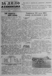 П ролетарии, всех с т р а н, соединяйтесь! ЗА Д Е Л О ЛЕНИНИЗМА В с е с и л ы и с р е д с т в а н а з а в е р ш е н и е у б о р о ч н ы х р а б о т ! К р у г л о с у т о ч н о и с п о л ь з о в а т ь к о м б а й н ы н а к о с о в и ц е , о б м о л о т е в а л к о в . У с и л е н н о в е с т и п о д р а б о т к у з е р н а - Х Й Т и о т г р у з к у е г о н а з а г о т о в и т е л ь н ы е п у н к т ы . № 119 (2153) ПЯТНИЦА, 3 октября 1958 г. Цена 15 коп. Хлеб государству— первая заповедь Ознаменуем X X I съезд КПСС новыми достижениями в труде Т р у ж е н и к и с е л ь с к о г о х о з я й с т в а в эти дни н а п р я г а ют все силы , ч т о б ы б ы с т р е е з а в е р ш и т ь у б о р к у х л е б о в , до ср оч н о в ы п о л н и т ь план х л е б о з а г о т о в о к . И д я н а в с т р е ч у X X I с ъ е з ду К П С С , к о л х о з н и к и с е л ь х о з а р т е л и „ П а м я т ь Л е н и н а * с б о л ь ш и м э н т у з и а зм о м т р у д я т с я на п о л я х , на т о к а х , на с у ш и л к а х . О п е р е ж а я д р у г д р у г а в с о р е в н о вании. они д о б и в аю т с я в ы со ко й про и зв о д и тел ьн о с ти т р у д а . Ч т о по зв о л и л о к о л х о з у за по с лед ню ю п я т и д н е в к у в ы п о л н и т ь задание, п р е д у с м о т р е н н о е по г р аф и к у . У с и л и л с д а ч у хлеба г о с у д а р с т в у в э т у п я т и д н е в к у к о л х о з « П у т ь С т а л и н а * . Д о л ь ш е дали хлеба, чем в Л р о ш е д ш н е дни, к о л х о з ы ' „ Б о р ь б а за ми р* , . П у т ь к к о м м у н и з м у Э т и ф а к т ы г о в о р я т о том, ч т о р у к о в о д и т е л и к о л х о з о в не р а с т е р я л и с ь перед н е п о годой. О н и п р и спо со б или сь о б м о л а ч и в а т ь в л а ж н ы е в а л ки . Д л я п р о с у ш к и п о с т у п а ю щ е г о от ком б ай н о в в л а ж н о г о зерн а п у щ е н ы на п о л н у ю м о щ н о с т ь все с у ш и л к и . В ы в о з к а х леб а г о с у д а р с т в у идет б е с п е р е б о й но. Н о в делом по району л л е б о з а г о т о в к н и д у т мед л е н н ы м и тем п ам и . Р а й о н " р а м н о г о не в ы п о л н и л п я т и дневное задан ие . Р я д к о л х о зов , н а б р а в ш и й с п е р в ы х дней у б о р к и в ы с о к и е т е м пы, т е п е р ь с н и з и л о т г р у з к у зерна г о с у д а р с т в у , а н е к о т о р ы е к о л х о з ы с о в е р ш е н н о п р е к р а т и л и х л е б о с д а ч у . А п т е к а р с к и м и до зам и о т п р а в л я ю т зерн о на п р и е м ные п у н к т ы к о л х о з ы „ З а р я к о м м у н и з м а * , нм. К а л и н и на, „ Н о в а я ж и з н ь * , „ З а в е ты И л ь и ч а * . Р у к о в о д и т е л и к о л х о з о в о пр авд ы ва ли о т с т а в а н и е ненастной погодой, но и т о гда, когда погода б л а г о п р и я т с т в у е т , х л е б все р а в но не п о с т у п а е т . Вы х о д и т , не в погоде дело, а в том, ч т о з д е с ь з а б ы л и о п е р в е й ш ей заповеди , не созд али н а с т о я щ е г о н а п р я ж е н и я на п о л я х , не доби ли сь, ч т о б ы к а ж д ы й ком б ай н о вы й а г р е гат, к а ж д а я с у ш и л к а д е й с т вовали к р у г л о с у т о ч н о и с полной н а г р у з к о й . В к о л х о з а х им. К али нин а , „ Н о в а я ж и з н ь * от к о м б а й новых а г р е га т о в люди р а з б р ед аю т ся по домам л и ш ь т о л ь к о на чина ет н а к р а п ы в а т ь д о ж д ь . Ч е р е з час-дру- гой, когда р аб о та т ь у ж е м о ж н о , у к о м б ай н о в нийого не о к а з ы в а е т с я . Д р а г о ц е н ное в р ем я т е р я е т с я з р я . Н а с т у п и л у ж е о к т я б р ь , *9 на по л ях еще б о л ь ш а я м а с са не уб р а н н о го хлеба. О б с т а н о в к а о б я з ы в а е т п рин ят ь в с е необходимые, меры, ч т о б ы в т е ч е н и е двух-трех дней у б р а т ь в е с ь х леб с полей. В с е в о з м о ж н о с т и д л я э т о г о ес т ь . Э т а п я т и д н е в к а д о л ж н а б ы т ь переломной в ходе х л е б о з а г о т о в о к . Р а 