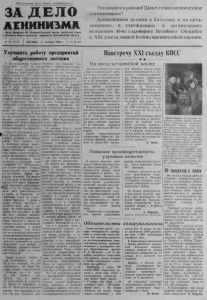 П р о л е т арил всех с т р а н , соединяйтесь! З А Д Е Л О ЛЕНИНИЗМА Орган Северного Р К Ком м ун ис тическо й партии Советского Союза и районного С ов е та д е п у т а т о в тр удящихся Новосибирской области М .1 ЗД (2154) П Я ТН ИЦ А , 17 октябр и 1958 г . # Т р у д я щ и е с я района! Ш и р е с о ц и а л и с т и ч е с к о е с о р е в н о в а н и е ! Д о с т о й н Ы м и д е л а м и в к о л х о з а х и на п р е д п р и я т и я х , в у ч р е ж д е н и я х и о р г а н и з а ц и я х в с т р е т и м 41-ю г о д о в щ и н у В е л и к о г о О к т я б р я и X X I с ъ е з д н а ш е й К о м м у н и с т и ч е с к о й п а р т и и . Ц ? н а 1 5 к о п. Улучш ить работу предприятий общественного питания В постановлении Со вета Министров С С С Р и ; -ЦК К П С С о мерах да льн ейш е го; развит» я советской тор говли Говорится, что" орга низаций Дела обпщстнемно- [;о литания о тстаёт от раст у тцйх гготребн о ст е й й асел е - нгг.я. В ряде мест далеко нёдиста’го'И'но столовых, чай ных ; кое где плохо з а б о тят с я ой ’ у л у ч ш е н и и о б с л у живания посетителей. З а ч а с т у ю ассортимент блюд однообразен и невысокое ка-, чество приготовляемой пнпсн, нет хорошей посуды и столовых приборов.В этом ж е постановлении было з а писано • у л у ч ш и т ь работу иредприятяй общественного питания, 'поднять к у л ь т у р у с?бслу жнвания тр у д я щ и х с и . С л ед ует поговорить о ра- щ ю т е предприятий общ е с т венного питания и в нашем районе. Надо сказать, что за последнее время з а м е т ны у л у ч ш е н и я работы с то ло вых районного центра и села Биазы. Намного расши рился ассортимент блюд.По 7— 8 разнообразных блюд готовится и столовой села Северного. " И о б с л у ж и в а ние стало л у ч ш е . О т к р ы т кондитерский цех, в продаж у поступают торты, п и ро ж ки , пончики. Но вместе с этим надо отметить такие факты,'что в меню записывав ш а я несколь ко дней подряд одни и те ж е блю д а .О ч ен ь мало чего приготовляется из рыбы, из баранины, нет молочных блюд, за и с к л ю чением сметаиы, А разве в районе нельзя з а к у п и т ь в достатке *1яеа, или у нас вдруг не стало р ы бы ? П р о д у к ты эти з а к у п и т ь в районе есть полная в о з м о ж ность, да и из тех з а п а с о в , к о торые имеются у наших з а готовительных организаций, столовые мож н о и н уж н о обеспечи ват ь . Тем более, чт о заготконтора райпотребсоюза намного перевыполнила плаш закупо к мяса. Р а й п о требсоюз, наверное, в силах . разрешить э то т допрос. А I»а- мясные, рыбныеш молоч ны‘ё блюда спрос в .с т о л о вых- большой. Д авн о открыта чайная в суле Потю кано во , но там та к и нет порядка. Ни райпотребсоюз, ни Ново-Тро- иркое сельпо (председатель т. Кап ли н ) т а к и не дадут ей, как говорят, ума. Ч айная эта на • т р а к т у , там Проезжают за с у т к и со т ни людей, но половина из них не п о л ь з у е тс я у с лу гами чайной. Вся причина в том, чт о там нет твердого распорядка дня, большие пе ребои с продуктами,и з а ч а с тую . кроме чая,цет ничего. Ж а л о б ы , на эту чайную пос ту п аю т без конца, но мер никаких пе принимается. Н е л ь з я мириться и с т а ким. фактом, “ что закрыта чайная в селе В е р х - К р а с ноярка. Населённый Пункт большой и питаться в с т о л о в у ю ходило много тру-, дящнхея. З ак а зы в ал и обеды на дом. Тепер ь ж е они э т о го лишены. Закры ти е ч а й ной 'о б ъ я с н я ю т плохим, не- п'рис иособл е ниым пом е щен и- ем, по. пока ничего с у щ е с т венного, не принято п р а вл е нием Верх-Красноярского сельпо (председатель т. ВиГИ ЛЯНС КИ Й ) . Не лишним будет, если о