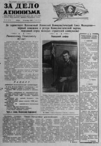 П р о л е т а р и и всех с т р а н , соединяйтесь! ЗА Д Е Л О Л Е Н И Н И З М А О щ а н Северного Р К К о м м у н и с т и ч е с к о й партии Сове тск о г о С о ю з а и районное» С о в е т а д е п у т а т о в т р у д я щ и х с я Новосибирской о б л а с т и М 130 (2164) СРЕДА, 29 октября 1958 Г. Пена 15 К О П . Да здравствует Всесоюзный Ленинский Коммунистический Союз Молодежи- верный помощник и резерв Коммунистической партии, передовой отряд молодых строителей коммунизма! Л е н и н с к о м у К о м с о м о л у 4 0 л е т Сегодня вся наша страна отмечает 40-летие В Л К С М . Советский народ гордится комсомолом- верным помощником Коммунистической партии. Весь путь комсомола насыщен боевыми и трудовыми подвигами. В годы гражданской войны и интервенции комсомол с оружием в руках отстаивал завоевания Октябрьской революции. В период мирного строительства молодые патриоты восстанавливали народное хозяйство, строили новые з а воды, шахты, города. А когда гитлеровская Г е р мания вероломно напала на нашу страну, передовой авангард молодежи бесстрашно сражался на фронтах и в тылу врага. Замечательными успехами в борьбе за восстановление и дальнейшее развитие народного хозяйства ознаменована деятельность комсомола в послевоенные годы. Героические дела комсомола н всей советской молодежи по заслугам оценены партией и правительством: В Л К С М награжден пятью орденами. Много славных трудовых подвигов совершила молодежь нашего района. И, как всегда, в авангарде шли комсомольцы. О своих делах сегодня — в день 40-летия Всесоюзного Ленинского Коммунистического Союза Молодежи районная комсомольская организация рапортует советскому народу, Коммунистической партии: Р А П О Р Т районной к о м с о м о л ь с к о й о ргани зации В честь 40-летия В Л К С М комсомольцы и молодежь Северного района в текущем году: подняли 1500 гектаров целинных и залежных земель; в период хлебоуборки 45 комсомольско-молодежных агрегатов в трудных погодных у сло виях убрали более 8000 гектаров зерновых культур; заготовили под урожай будущего года 5500 гектаров зяби; силами молодых доярок надоено 17000 центнеров молока; проведено 90 комсомольско-молодежных воскресников; собрано 100 тонн металлолома; посажено 3000 фруктовых деревьев; в селе Биаза построен стадион. Несть и слава Ленинскому Комсомолу! Передовой шофер ф ф Торжественные вечера, посвященные юбилею С. С Е В ЕРНО Е Сегодня в районном Доме к у л ь т у р ы с о с т о и т с я т о р ж е с т в е н н ы й пленум р а й к о м а В Л К С М , посвященный 40-летию Ленинского К о м с о м о л а . % В р а б о т е п л е н у м а п р и м у т у ч а с т и е предс т а в и т е л и о т всех комсомольских организаций района, бывшие комсомольцы 1920— 1930 годов. С „докладом о2 боевом п у т и Ленинского К о м сомола и его зас л у г ах в ы с т у п и т с е к р е т а р ь райкома В Л К С М т . К и селев. К о л л е к т и в х у д о ж е с т венной с а м о д е я т е л ь н о с т и районного ц е н т р а в ы с т у п и т с к о н ц е р т н о й программой, посвященной юбилею. Е, Чалков. Шофер Тартасской Р Т С комсомолец Владимир Павлов с самого начала хлебоуборки возил хлеб в колхозе „ П у т ь Сталина*. В сырую погоду, когда комбайны не работали, он переключался на вывозку силосной массы. На своем стареньком „ЗИС-5* за время пребывания в колхозе сделал 359 рейсов с грузом, вывез 5204 центнера зерна и 4180 центнеров зеленой травы для силоса, сэкономив при этом 317 килограммов бензина. По количеству 
