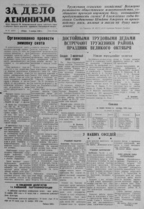П р о л е т а р и и всех с т р а н, соедин яйтес ь! ЗА Д Е Л © ЛЕНИНИЗМА Орган Северного Р К К о м м у н и с т и ч е с к о й партии С о в е т с к о г о Союза и районного С о в е т а д е п у т а т о в т р у д я щ и х с я Новосибирской о б л а с т и Т р у ж е н и к и с е л ь с к о г о х о з я й с т в а ! В с е м е р н о р а з в и в а й т е о б щ е с т в е н н о е ж и в о т н о в о д с т в о , с о з д а в а й т е п р о ч н у ю к о р м о в у ю б а з у , п о в ы ш а й т е п р о д у к т и в н о с т ь с к о т а ! В б л и ж а й ш и е г о д ы д о г о н и м С о е д и н е н н ы е Ш т а т ы А м е р и к и п о п р о и з в о д с т в у м я с а , м о л о к а и м а с л а н а д у ш у н а с е л е н и я ! ( И з Призы во в Ц К К П С С к 41-й годовщине Великого О к т я б р я ) № 1 3 3 (2167) СРЕД А . 5 ноября 1958 г. Цена 15 коп. Организованно провести з и м о в к у с ко т а В ж и в о тн о в од с т в е н а с т у пил о т вет ст венны й период— зи м ов к а с к о т а . О т того, н а с к о л ь к о правильно и орга низованно п р о в е д у т к о л х о зы района зимне-стойловое содержание ско та , б у д е т з а в и с е т ь дальнейший рост по г о л о в ь я и его п р о д у к т и в ность. О п ы т прошлого года по к а з а л ,ч т о в тех х о з яй ст в а х , где в о в р ем я подготовили и з а бо тл и во у теп лил и пом е щения, сво е вр ем енно пе р е вели дойное стадо на с т о й ло во е содержание , подвезли корма к фермам и по-хоз я й с к и их расходовали , ж и вотноводы д о би ли сь хоро ших р е з у л ь т а т о в в п о в ы шении п р о д у к ти вно с ти к о ров. В ы с о к и е надои ио л учади зимой к о л х о з ы „ З а р я к о м м у н и з м а ” , „ П у т ь к к о м м у н и з м у ” , „ П а м я т ь К и р о в а ” , „ Б о р ь б а за м и р ” и другие . В таких ж е с е л ь х о з а р т е л я х , к а к им. М . Г о р ь к о г о , „7-й с ъ е з д С о в е т о в ” . „ К р а с ный О к т я б р ь ” надои были крайне низкие . Э т о р е з у л ь та т того, ч т о зде сь из-за плохой организации под возки кормов с к о т недокармли в а л с я , поили ж и в о т н ы х хо лодной водой. В нынешнем году в б о л ь ш ин с т ве к о л х о з о в ж и в о т ные разм ещ ены в до бро т ных п о м ещ ен и я х , д о с т а т о ч но з а го то вле но г р у б ы х к о р мов, намного б о л ь ш е п р о ш логоднего з а л о ж е н о силоса. З н а ч и т е л ь н о л у ч ш е обстоит дело в ряде х о з я й с т в и с водо снабж ен ием . Д л я по в ы ш е н и я надоев зимой ес т ь все у с л о в и я . • Н ео бх оди м о т о л ь к о ор га н и з о в а т ь образцовое содер ж ан и е ж и в о т н ы х , строго со б лю д а ть распорядок дня и рацион кормления. З а л о г вы со ки х у д о е в — полноценное, разн о об р аз ное ко р м л е н и е . Н е с л е д у е т за бы ва т ь , ч то о б е спе чение к р у т о г о роста молока в зимний период дело н е л е г кое. Э т а задача м о ж е т б ы т ь у с п е ш н о решена л и ш ь при том у с л о в и и , если за ее в ы полнение в о з ь м у т с я председатели ко л хо зо в , сп ец и алисты, партийные п к о м сом ол ьс кие организации,все работники ж и во тн о вод ст ва . Бо р ь б а за п р а в и л ь н ую организацию зимне-стойлового содержани я дойного стада до л ж н а вес ти сь по вседневно в кажд ом х о з я й стве. Н е л ь з я с ч и т а т ь нор м а л ь ным по л ож ен ие , когда ск о т ко рми тся с воза. Н е и з ж и та эта порочная пр а ктик а и нынче. Н е т запаса кормов на фермах в ко л х о за х им. М . Г о р ь к о г о , „ П а м я т ь Л е ни на” . Д о 50 центнеров с е на имеется на фермах в а р тел ях им. К алинина и „ К р а с ный О к т я б р ь ” . Сей час , пока нет бо л ьш и х сн е ж н ы х заносов, самое бл а гоприятное время для подвозки к о р м о в к местам зим овки . Задача руко вод и тел ей к о л х о з о в — 