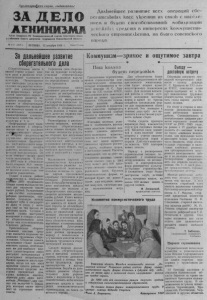 П р о л е т а р и и Т в с е х с т р а н , с о е д и н я й т е с ь ! ЗА Д Е Л О ЛЕНИНИЗМА {Ц ган Северного Р К Коммунис тической партии С ове тскою Согез« и гайснного Совете д е пу та тов трудящихся Новосибирской области № Н 7 (218') Д а л Ь н е й ш е е р а з в и т и е в с е х операций с б е р е г а т е л ь н ы х к а с с у к р е п и т их с в я з Ь с н а с е л е ние д\ и б у д е т с п о с о б с т в о в а т ь м о б и л и з ац и и д ен еЖ нЫ х с р е д с т в в и н т е р е с а х к о м м у н и с т и ч е с к о г о с т р о и т е л ь с т в а , на б ла го с о в е т с к о г о народа. ПЯТНИЦА. 12 декабря 1958 I . Цена !5 коп. За дальнейшее равзите , . дела С б е р е г а т е л ь н ы е ка ссы в нашей стране играют в а ж н у ю роль в р а зви тии соци а л и с ти ч е с к о й эко н о м и ки и к у л ь т у р ы . П р и в л е к а е м ы е ими свободные средства н а селения госуд ар ст во и с п о л ь з у е т для уд о в л е т в о р е н и я всё во зр а с таю щ и х п о т р е б ностей с о в е т с к о г о народа и д а л ь ней ш е го р азви тия на родного х о з я й с т в а . П о с т у пи вш и е в сб е р е г а т е л ь н ы е к а с с ы с б е р е ж е н и я в кл ад чи к о в я в л я ю т с я одним из д о полнител ьных и с т о ч н и к о в финансирования со ц и а л и с т и ч е с к о г о х о з я й с т в а , н а уки , к у л ь т у р ы и т. д. Н еп р еры вн ый рост в к л а дов населения в сберега- т ел н ы е кассы в у с л о в и я х социа^нс- и ч е с к о г о о б щ е с т ва -“ я р к о е св и д е те л ь с т в о у л у ч и к ния материального б л а го со с то ян и я т р у д я щ и х с я , си с т е м а т и ч е с ко г о новы т е н и я реальных доходов раб очих , к о л х о з н и к о в , со в е т с к о й интеллигенции. О б этом говорит _ ко. ж е рост числа в кл ад чи ко в . К нача л у 1957 года в сберкассах б ы л о о т к р ы т о 36,8 милли ока «.ч ек в но вкладам. З а 10 м е с я ц е в этого года они намного у в е л и ч и л и с ь . Т о л ь к о в нашем районе в к л а д чи к а м и в сб ер ка сс ах с о с т б я т 2600 т р у д я щ и х с я . О б щ а я с умм а вклада с о с т а в л я е т два миллиона триста т ы с я ч рублей. В к л а д ч и к а м и у нас с о с т б я т ко л х о зн и ки , рабочие, пенсионеры, с л у ж ащ и е . Б о л ь ш у ю п о л ь з у приносят себе и г о с у д а р с т в у д а ж е те люди, у к о т о рых ещё не т а к вы со к а за р аботная плата. Сегодня в к а ш е й газете в ы с т у п а ю т в к л а д ч и к и и г о в о р я т о п о л ь зе с б ер е га тел ь н о го дела. Среди них е с т ь пенсионеры, т е х н и ч к и , рабочие. П р и в л е к а е м ы е с б е р е г а т ел ь н ы м и ка сс ам и ср е д ст ва я в л я ю т с я подлинно на родными тр у д о в ы м и с б е р е ж е н и ям и . С б е р е г а я деньги, т р у д я щ и е с я с т а в я т задачей н а копи ть с у м м ы , нео бход и мые им для наиболее п о л ного уд о в л е т в о р е н и я своих р а с т ущ и х м а те риа л ьн ых и к у л ь т у р н ы х потребностей . М о ж н о привести много п р и меров, когда т о т или иной в к л а д ч и к к а ш е г о района на с б е р е ж е н н ы е средства п о строил пре красный дом, к у п и л ш в е й н у ю м аш и н у , д о р о г у ю д о х у , д а ж е а в т о м о би л ь „ М о с к в и ч к а к сд е л а л это в к л а д ч и к т. Б о н д а рев, который т а к ж е в ы с т у пает на страниц ах нашей газеты. Коммунизм— зримое и ощутимое завтра П ер е д о в а я свои с б е р е ж е ния на хранение в г о с у д а р ст в е н н ы е с б ер е га тел ь н ы е к а ссы , т р у д я щ и е с я п о л у ч а ют определённый доход в виде процентов. С б е р е г а те л ь н ы е кассы принимают р а з л и ч н ы е виды в кл ад о в : до в о с т р е б о в а н и я , с р о ч н ы е , у с л о в н ы е , на т е к у щ и е сче та , вы и г р ы ш н ы е . Г о с у д а р с т в о по лно стью гар ан ти р ует б е з у с