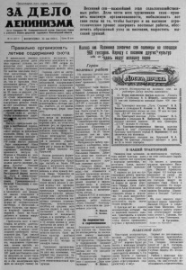 П р о л е т а р и и в с е х ст ра н , со е д и н я йт е с ь ! ЗА Д Е Л О ЛЕНИНИЗМА о р г а н С е в е р н о г о Р К К о м м у н и с т и ч е с к о й п а р т и и С о в е т с к о г о С ою са и р ай о н н о го С о в е т а д е п у т а т о в т р у д я щ и х с я Ново си би р с ко й о б л а с т и № 6 2 (2 2 5")) ВОСКРЕСЕНЬЕ, 24 мая 1959 г. Весенний сев— важнейший этап сельскохозяйствен^ н ы х работ. Дело чести всех тр у ж е н и к о в с е л а — проявить максимум .организованности, м о б и л и зо в а т ь все свои с и л ы на то, что бы быстрее и на высоком агротехническом уровне завершить посевные работы , обеспечить образцовый уход за посевами, в ы р а с т и т ь в ы сокий урожай . Цена 15 коп. Правильно организовать летнее содержание енота В прошедшую зимовку животноводы района добились хороши:: успехов, повсеместно скот вышел на пастбища более упитанным. По многим колхозам получено значительно больше молока и мяса. На 54 тонны больше молока получи ли, чем в прошлом году, колхозники артели „ П у т ь к коммунизму", на 27 тонн— в колхозе им. Крупской, па 25 тонн— в колхозе „ З а ря коммунизма". Эти успе хи стали возможными за счет лучшего кормления и содержания дойного стада, за счет увеличения численности коров на фермах и лучш ей организации труда. Летний сезон в разгаре. Чтобы использовать дешё- вые^чщша, нужны опытные пастуетг. Пастух— центральная фигура в пастбищный период. Имена лучш их пастухов знают далеко за пределами колхозов. Вновь на к ули ковские солонцы выходит с нагульным молодняком в 180 голов пастух колхоза „Заря коммунизма" Илья Иванович Драган. На влади- мировские пастбища отправляются пастухи тт. Фурцев и Федоров из колхоза им. Крупской. С большим желанием пасет молодняк пастух к о л хо за '„За веты Ильича" Николай Бойко. Не первый год пасет дойное стадо пастух Веселовской фермы колхоза „ П у т ь к коммунизму" Филипп Максимович Харитонов, Гражданцевской— Василий Тимошенко и многие другие. В колхозе им. Крупской в ближайшие дни покидают зимние помещения и уходят в летний лагерь дойные гурты Чебаковской фермы на тахтометьевские пастбища, а Витинской—к озеру К у л ь ч а к , где имеются хороший травостой и водопой. Здесь же будут работать и пункты и скусственного осеменения. Приблизить скот к пастбищам, не делать длительных перегонов в сёла, в ы вести скот в лагеря— необходимое требование сегодняшнего дня. При умелой пастьбе скота, с разбивкой пастбищ на отдельные загоны, чередование стравливания, ночная пастьба, использование зелёного конвейера вполне возможно за 120 дней пастбищного сезона получить не менее ты ся чи литров молока на коров у и ста килограммов привеса на каждую голову н а гульного молодняка, что обеспечит получение не менее 1800—1900 литров годового надоя и 230—250 килограммов живого веса. Перевод скота на лагерное содержание предохраняет его от появления т я жёлых заразных и глистных заболеваний, оздоравливает места зимнего содержания. Не допустить содержания в зимних помещениях кр уп ного рогатого скота, овец и свиней летом— важное условие сохранности поголовья. За лето нужно успеть отремонтировать скотные дворы, очистить их от навоза, а территории ферм запахать. Нельзя считать нормальным, когда на отдельных фермах не полностью занумерован скот, не отпилены кончики рог, не произведена расчистка копыт, не произведено взвешивание нагульного скота. Непростительно затягивается формиро