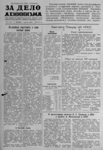 П р о л е т а р и и в с е х стр а н , соединяйте сь: З А Д Е Л О ЛЕНИНИЗМА О р г а н С е в е р н о г о Р К К о м м у н и с т и ч е с к о й п а р т и и С о в е т с к о г о С о ю з а н р а й о н н о г о С о в е т а д е п у т а т о в т р у д я щ и х с я Н о в о с и б и р с к о й о б л а с т и № 9 4 (2282) ПЯТНИЦА, 7 августа 1959 г. Цена 15 коп. П о с т а в л е н н а я п а р т и е й перед т р у ж е н и к а м и с е л Ь с к о г о х о з я й с т в а з а д а ч а — д о г н а т Ь в ближ а й ш и е годЫ С о е д и н е н н ы е Ш т а т Ы А м е р и к и по п р о и з в о д с т в у м я с а , м о л о к а и м а с л а на д у ш у н а с е л е н и я —в Ы з в а л а невиданнЫй п о д ъ е м т в о р ч е с к о й и н и ц и а т и в ы р а б о т н и к о в Ж и в о т н о в о д с т в а . О б р а з ц о в о е проведение з и м о в к и с к о т а п о м о Ж е т с ч е с т Ь ю р е ш и т Ь э т у з а д а ч у . По- хозяйски подготовить к зиме скотные дворы В т е к у щ е м году в к о л х о зах района пойдет в з и м о в к у скота намного бо л ьш е , чем в п р о ш л о м . Э т о в о з л а г а ет на р уковод ителей к о л х о зо в з а д а ч у — по-хозяйски о р г а н и з о в а т ь под го то вку с к о т н ы х дворов к зиме. С е й ч а с в ко лхо зах идет го р я ч а я пора— за го то вка кормов, чер е з два-три дня на чнетс я у б о р к а у р о ж а я . Э т и р аботы т р е б у ю т б о л ь ш о го н а п р яж е н и я , бо л ьших усили й всех к о л хо зн ико в . Н о и в то ж е врем я н е л ь з я о т к л а д ы в а т ь на поздние сроки п о д го т о в к у ж и в о т н о в о д ч е с к и х ферм к зим нем у п щ р д у . Надо организовать та к , чтобы сп р авиться со всеми работами в срок и ка чес твенно . Д о б и т ь с я , чтоб ы в зимнее время у в е л и ч и в а л и с ь надои молока, росли привесы мясного с к о та. А это во зм о ж н о т о л ь к о при у с л о в и и обеспечения ж и в о т н ы х в достатке кор мами и добротными помещениями. По-хозяйски п р о я в л я ю т з а б о т у о развитии ж и в о т н о водства в колхозах „ З а р я к о м м у н и з м а " , им. М . Г о р ь ко г о , „ Н о в а я ж и з н ь " . В этих ко л хо за х стро ят нов ы е ж и в о тн о в о д ч е с к и е пом ещ ен и я , приводят в пор я д о к старые дворы. Х у ж е в колхозах „ З а в е т ы И л ь и ч а " , „ Б о р ь б а за м ир", ^ ^ ^ ■ У Д я т ь К и р о в а " . В колхо- ' ^ Г ^ „ П а м я т ь К и р о в а " типо в ы е дворы недооборудова- ны. П р о ш л у ю з и м о в к у ж и в отные ч у в с т в о в а л и себ я в этих дворах х у ж е , чем в примитивных. Э т о п о с л у ж и ло р е з к о м у сн и ж ен и ю прод у к т и в н о с ти . И сейчас зде сь не принимают мер к у т е п л е н и ю и оборудованию д в о р о в— потолки не з а с ы паны, а о механизации ферм и речи не в е д у т . Н е о б е с п е ч и в а ю т полного размещения ж и в о тн ы х помещ ени я в колхозах „ Б о р ь б а з а м и р " и „ З а в е т ы И л ь и ч а " . Н е п о н я т н о , к а к д у м аю т в этих ко л хо за х зимовать. Б о л ь ш у ю тр е в о г у в ы з ы в а е т о т с у т с т в и е в ряде ко л х о з о в птичников. Н е т помещений для зим овки птиц в колхозах имени М . Г о р ь к о г о , „ П а м я т ь К и р о в а " , а в ко лхо зах „ П у т ь к к о м м у н и з м у " и „7-йсъезд С о в е т о в " птичники переоборудованы для другого скота. Видимо ,в этих ар те л я х не х о т я т заниматься птицеводством. Х о т я сейчас в колхозах трудно с рабочей силой и эти трудности у в е л и ч и в а ю т ся с наступлением массовой уб о р к и у р о ж а я — все ж е необходимо решительно вы править положение с подготовкой ферм. Най ти в о з м ож но сти у к р е п и т ь с т р о и те л ь н ы е бригады, не ко то рые работы в о з л о ж и т ь на работников животноводства . В с е ск о тн ы е дворы к нач а л у стойлового периода с л ед у е т хоро
