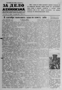 П р ол ет а р и и в с е х стран, соединяйт есь! З А Д Е Л О ЛЕНИНИЗМА Орган Северного Р К К о м м у н и с т и ч е с к о й па рти и Советско го Союза и районного С о в е т а д е п у т а т о в т р у д я щ и х с я Новосибирской о б л а с т и З я б ь — одна из основ высокого у р о ж а я второго года семилетки. Поэтому сейчас нужно так организовать дело, чтобы в каждом хозяйстве в лучшие сроки вспахать зябь и тем самым и склю чи т ь сев яровых к у л ь т у р по неподготовленной почве. № 112 (2300) С Р Е Д А , 16 сен т я бр я 1959 г. Цена 15 коп. В сентябре выполнить план по взмету зяби Бюро обкома КПСС и облисполком рассмотрели данные о ходе подъема зяби в колхозах и совхозах области. Отмечено, что управление сельского хозяйства, инспекторские группы райисполкомов, а также райкомы, горкомы; и райисполкомы не принимают необходимых мер по обеспечению выполнения плана подъема зяби под яровой клин 1960 года и допускают большое отставание с проведением этой большой сельскохозяйственной работы. На 5 сентября в колхозах и совхозах области поднято зяби лишь 248 тыс. га или 9,5 иро.Ц. плана. Особенно большую тревогу ^ ^ т ы з ы в а ю т крайне* медленные ^ ^ Щ м п ы зяблевой вспашки в районах Воеточноцентральной и Варабинсгсой зон, где недостаточная обеспеченность зябью создает чрезмерную напряженность на весеннем севе и приводит к значительному снижению урожайности. В Венгеровском районе план вспашки зяби выполнен лишь на 1;8 проц., в Доволенском — 1,7, Здвинском— 2,9, Кар- гатском— 2,1, Колыванском— 2, Татарском— 1,9, Болотнин- ском— 0,9, Маелянинском— 0>8, Сузунском— 1,3 проц. Низкие темпы вспашки з я би некоторые руководители пытаются объяснить отвлечением всех сил и средств на уборку урожая. Но, как по- .^^йазывает опыт, там, где организуют работу, разумно используют технику, одновременно убирают хлеб и готовят почву под урожай будущего года*. Например, в колхозе «Новая жизнь» Новосибирского района убрано зерновых 95,4 проц.. 'сдано хлеба государству 105,4 проц. и вспахано зяби 1.320 гектаров, или 38,2 проц. к плану. Ночью, когда комбай- нй и жатки не работают, а также в дождливую погоду тракторы переключались на вспашку. Большие возможности у с корить подъем зяби открыло применение на косовице хлебов и подборке валков сдвоенных жаток п комбайнов. Так, в совхозах Ленинском п Мильтюшихпнском работалп агрегаты из сдвоенных ж а ток, комбайны с двумя подборщиками, что позволило совхозам переключить значительное количество тракторов на очистку полей от соломы, ее. скирдование, на вспашку зяби п выполнение- других работ. В Черепановском и Ко- ченевском районах уборка сдвоенными жатками,* комВ обкоме КПСС и о б л и сп о л к о м е байиами с двумя подборщиками позволила поставить на вспашку зяби значительное количество тракторов и обеспечить за пятидневку прирост вспашки зяби на* 11— 14 процентов. Следовательно, низкие темпы вспашки зяби объясняются главным образом тем. что во многих колхозах и совхозах на эти работы мало переключено тракторов, причем значительная часть из них работает только в одну смену, в ночное время тракторы . на подъеме зяби, как правило, не работают. Значительно сдерживает вспашку зяби тот факт, что на огромных массивах солома не скирдуется и не убирается. Партийные, советские органы плохо осуществляют контроль за работой машинно- тракторного парка колхозов и совхозов и мирятся с крайне неудовлетвор