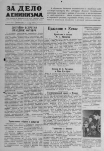 З А Д Е Л О ЛЕНИНИЗМА Орган Северного РК Комиунигтичэ ской партии Советского Союза и оайоннпге Совета депутатов тр кдящикся Новосибирской области К 120 ,2308) | В О С К Р Е С Е Н Ь Е , 4 о к т я б р я 1959 г. Цена is коп. В о б с т а н о в к е б о л ь ш о г о п о л и т и ч е с к о г о и т р у д о в о г о п о д ъ е м а и д у т н а в с т р е ч у 4 2 -й го д о вщ и н е В е л и к о й О к т я б р ь с к о й р е в о л ю ц и и т р у д я щ и е с я р а й о н а . В к о л х о з а х и на п р е д п р и я т и я х л ю д и т р у д я т с я с о д н и м ж е л а н и е м —до ст ой н о в с т р е т и т ь в с е н а р о д н ы й п р а з д н и к , п о р а д о в а т ь Р о д и н у н о в ы м и д о с т и ж е н и ям и в к о л х о з н о м х о з я й с т в е, в м е ст н о й п р о м ы ш л е н н о с т и . достойно ВСТРЕТИМ ПРАЗДНИК ОКТЯБРЯ В о б с т а н о в к е б о л ы и о г а п о л и т и ч е с к о г о и т р у д о в о г о п о д ъ е м а и д у т н а в с т р е ч у 4 2 - 0 г о д о в щ и н е В е л и к о й О к т я б р ь с к о й р е в о л ю ц и и т р у д я щ и е с я р а й о н а . В к о л х о з а х и на п р е д п р и я т и я х л ю д и т р у д я т с я с о д н и м ж е л а н и е м — д о с т о й н о в с т р е т и т ь в с е н а р о д н ы й п р а з д н и к , п о р а д о в а т ь Р о д и н у н о в ы м и д о с т и ж е н и я м и в к о л х о з н о м х о з я й с т в е , в м е с т н о й п р о м ы ш л е н н о с т и . П р а з д н о в а н и е В е л и к о г о О к т я б р я с о в п а д а е т с п о д г о т о в к о й к п р е д с т о я щ е м у П л е н у м у Ц К К П С С . Э т о ' Л е щ е б о л е е у с и л и в а е т в ы - ^ ^ ж и е п а т р и о т и ч е с к и е ч у в с т в а т р у ж е н и к о в д е р е в н и . О н и б е р у т п о в ы ш е н н ы е о б я з а т е л ь с т в а , и , р а з в е р т ы в а я с о ц и а л и с т и ч е с к о е с о р е в н о в а н и е , д е л а ю т в с е , ч т о б ы с ч е с т ь ю с д е р ж а т ь с в о е с л о в о . Д о с т о й н о н е с у т з н а м я с о ц и а л и с т и ч е с к о г о с о р е в н о в а н и я к о л х о з н и к и с е л ь х о з а р т е л и и м . К а л и н и н а . О н и п е р в ы м и в р а й о н е з а к о н ч и л и у б о р к у у р о ж а я , б о л ь ш е в с е х с д а л и х л е б а г о с у д а р с т в у , о б е с п е ч и л и в с ю п о с е в н у ю п л о щ а д ь в т о р о г о г о д а с е м и л е т к и Д о б р о т н ы м и с е м е н а м и , у с и л е н н о в е д у т в с п а ш к у з я б и и п о д г о т о в к у к з и м о в к е о б щ е с т в е н н о г о ж и в о т н о в о д с т в а . Ч е с т ь и с л а в а п е р е д о в и к а м к о л х о з а и м . К а л и н и н а ! Т в е р д о д е р ж а т с в о е с л о в о х л е б о р о б ы к о л х о з а „ П а м я т ь Л е н и н а " , „ З а р я к о м м у н и з м а " . В э т и х к о л х о з а х с б о л ь ш и м и д о с т и ж е н и я м и з а к а н ч и в а е т с я с е л ь с к о х о з я й с т в е н н ы й г о д — п е р в ы й г о д с е м и л е т н е г о п л а н а . П р е д п р а з д н и ч н о е с о р е в н о в а н и е , б о р ь б а з а д о с т о й н у ю в с т р е ч у о ч е р е д н о г о П л е н у м а Ц К К П С С в ы д в и н у л и н о в ы х п е р е д о в и к о в м е с т н о й п р о м ы ш л е н н о с т и . В к о л л е к т и в а х р а й п р о м к о м - б и н а т а , к о н т о р ы к о м м у н а л ь н ы х п р е д п р и я т и й , л е с н о г о х о з я й с т в а м н о г и е р а б о т н и к и д а ю т с в е р х п л а н о в у ю п р о д у к ц и ю х о р о ш е г о к а ч е с т в а . С о р е в н о в а н и е ш и р и т с я с к а ж д ы м д н е м . В с е э т о о б я з ы в а е т п а р т и й н ы е , п р о ф с о ю з н ы е и к о м с о м о л ь с к и е о р г а н и з а ц и и в с е м е р н о п о д д е р ж и в а т ь и н и ц и а т и в у т р у д я щ и х с я , о б о б щ а т ь и р а с п р о с т р а н я т ь о п ы т п е р е д о в и к о в , п р и д а в а т ь ш и р о к о й г л а с н о с т и и т о г и с о р е в н о в а н и я . Т а м , г д е н е р у к о в о д я т п о - н а с т о я щ е м у с о р е в н о в а н и е м , в с е г д а и м е ю т с я н е у д а ч и , о т с т а в а н и е п о 