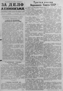П р ол етар и и всех с т р а н , соединяйтесь! ЗА Д Е Л О ЛЕНИНИЗМА Орган С е в е р н о г о Р К К о м м у н и с т и ч е с к о й п а р т и и С о в е т с к о г о С ою а в и районного С о в е т а д е п у т а т о в т р у д я щ и х с я Н о во сиб ир ской о б л а с т и № 1 3 1 ( 2 3 1 0 ) | ПЯТНИЦА, 30 октября 1959 г. Цена 15 коп. В Ц е н т р а л ь н о м Ко митете К П С С и С ов ете М и н и с т р о в С С С Р О М Е Р А Х ПО У Л У Ч Ш Е Н И Ю П Е Р Е Р А Б О Т К И С К О Т А И П Т И Ц Ы Центральный Комитет К П С С и Совет Министров С С С Р рассмотрели вопрос о мерах по у л у ч шению переработки скота и птицы. В принятом ими постановлении говорится, что в короткие сроки необходимо создать широкую сеть экономичных, небольших по мощности, технически оснащенных мясоперерабатывающих предприятий и обеспечить переработку скота и птицы, как правило, в местах выращивания и откорма, а также в крупных потребляющих центрах. Центральный Комитет К П С С и Совет Министров С С С Р обязали Ц К компартий союзных республик, крайкомы и обкомы партии, Советы М и нистров республик, исполкомы краевых и областных Советов депутатов трудящихся и совнархозы обеспечить в 1960— 1963 годах ввод в действие производственных мощностей по переработке скота и птицы о объеме, предусмотренном ко н трольными цифрами семилетнего плана на 1959— 1965 годы. Д л я создания надлежащих у с ловий хранения мяса и других скоропортящихся продуктов Советам Министров союзных республик, Центросоюзу и совнархозам предложено увеличить прирост холодильных емкостей за 1960—1965 г о ды в 2,9 раза. Признано необходимым в дальнейшем строительство мясокомбинатов осуществлять преимущественного мощностью но выработке 30— 50 тенн мяса в смену, с доставкой скота в радиусе 50— 150 километров. Постановление обязывает Ц К компартий союзных республик, крайкомы и обкомы партии, С о веты Министров республик, исполкомы краевых и областных Советов депутатов трудящихся и с о в нархозы решительно у л у чш и т ь в колхозах и с о в хозах нагул и откорм скота, предназначенного для продажи и сдачи государству н обеспечить более равномерную в течение года поставку с к о та на переработку с тем, чтобы создать условия для л учш его снабжения населения мясом и мясопродуктами и более полного использования производственных мощностей мясной промышленности. Т А С С . Т р е т ь я с е с с и я Верховного Совета СССР О п р е б ыв а нии т о в а р ища Н. С . Х р у щ е в а в Р у м ы н с к о й Н а р о д н о й Р е с п у б л и к е По приглашению Ц е н т рально го Комитета Р у м ы н ской Рабочей партии, Со в е та Министров и Президиума Великого национального собрания Р умынской Н а родной Республики, Первый секретарь Ц К К П С С и Председатель Совета М и нистров Союза С С Р товарищ Н . С. Х р у щ е в с 19 по 25 октября находился с неофициальным визитом в Румынской Народной Москву. Республике и провел здесь кратковременный отдых. Во время пребывания s Румынской Народной Р е с публике товарищ Н . С . Х р у щев имел встречи и беседы с руководителями партии и правительства республики, которые проходили в исключительно теплой, сердечной обстановке. 25 октября Н. С. Х р у щев отбыл из Бухареста и в тот же день прибыл в 6 М И Л Л И О Н О В П О С Е Т И Т Е Л Е Й В Д Н Х Ежедневно В Д Н Х С С С Р в Москве посещают многие тысячи москвичей, экскурсантов из различных областей страны, зарубежные гости. За 4 месяца со дня открытия В Д Н Х здесь у ж е побывало больше 6 миллионов посет
