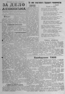 П р о л е т а р и и в с е х с тр а н , с о е ди н я йт е с ь ! О с г а н Се ее р нс го РК К с к м у к и с т и ч е с к с й г а р т к и С о в е т е к е г с Союза и районного С о в е т а д е п у т а т о в трудящихся Новосибирской обл ас ти № 11 (2355) | ВОСКРЕСЕНЬЕ, 24 января 19(H) г. ; Ц ен а 15 коп Ш и р е деЦ К Выполнить решения кабръского Пленума нашей партии —это значит, что колхозы района в 1960 jT году должны произвести и ' продать государству мяpi” : социалистическое итоги на производственных совещаниях, показывать в бюллетенях, в стенкой и районной печати, в беседах агитаторов, на досках по-, казателей, в лозунгах, в световых газетах, х у д о ж е ственной самодеятельности. При этом важно показыза,молока на 25— 30 процентов больше, чем предусмотрено планом второго года семилетки. И надо сказать, что такие возможности и резервы у нас есть. Сейчас в колхозах вырабатываются практические мероприятия, которые обеспечат выполнение у к а з а ний партии. В мероприятиях необходимо предусмотреть правильное, разумное и' наиболее полное использование наших . резервов. t c/ie того, как будет на- чена линия, должна последовать большая организаторская и политическая работа в массах. Основным методом достижения высоких показателей в производстве было и остаётся социалистическое соревнование. Партийным организациям и правлениям колхозов необходимо организовать политическую работу так, чтобы каждый колхоз, каждая ферма, к а ж дая доярка, свинарка, телятница, чабан, птичница приняли на себя высокие обязательства по перевып о л н е н и ю планов производства мяса, молока, шерсти, яиц и других продуктов. Надо, чтобы об этих обязательствах знали все колхозники и все активно и настойчиво добивались их выполнения. Необходимо, чтобы договоры на соцсоревнование были заклю че ны м е ж д у соседними к о л хозами, фермами и отдельными работниками ж и в о т новодства. Но социалистическое соревнование может быть живым, действенным и по- настоящему всенародным только в том случае, если его результаты знают все соревнующиеся, если организована широкая гласность этих результатов. Поэтому необходимо итоги соревнования подводить на фермах не реже одного раза в декаду, межд у фермами и колхозами не реже одного раза в месяц, обс уждат ь Во имя : будущего человечества вать не только передовиков, но и отстающих. С целью поощрения передовиков соревнования в каждом колхозе должно быть переходящее красное соревнование! знамя для фермы, переходящие флажки для отдельных работников; передовиков надо заносить на Дос ки почета, о б ъ я в л я т ь благодарное гь, премировать ценными подарками. Важно т а к ж е проводить вечера чествования отдельных работников животноводства, устраивать вечера женщин, вечера вопросов и ответов, читательские конференции по изучению опыта передовых животноводов области, страны, проводить взаимопроверки и т. д. Вся эта большая и крайне необходимая работа должна вестись не кампанейски, а повседневно, настойчиво, с неослабевающей а к тивностью и энергией. Мы с удовлетворением отмечаем, что колхозы им. Крупской , „ Память К иро ва " , „Борьба за мир", „ З а ря коммунизма", „ П у т ь к комм ун и зм у" в 1959 году добились значительного у в е личения производства продуктов животноводства. Это го колхозы добились благодаря именно большой политической и организаторской работе правлений и партийных организаци