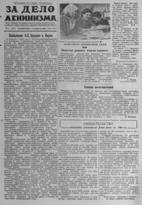 П р о л е т а р и и в с е х ст р а н , с о е д и н я й т е с ь ! З А Д ЛЕНИНИЗМА О р г а н С е в е р н о г о Р К К о м м у н и с т и ч е с к о й п а р т и и С о в е т с к о г о С о ч н а и р а й о н н о г о С о в е т а д е п у т а т о в т р у д я щ и х с я Н о в о с и б и р с к о й о б л а с т и № 2 0 (2364) ’В О С К Р Е С Е Н Ь Е , 14 февраля I960 Г.: Цена 15 коп. Пребывание H.G. Хрущева в Индии 11 февраля в Дели по п ути в Индонезию с кратким визитом по приглашению правительства Индии прибыл Председатель Совета Министров ' С С С Р Никита Сергеевич Х р ущ е в . На центральном делийском аэродроме Палам главу Советского правительства и с о провождающих е г о ' лиц встречали президент Индии Раджендра Прасад, вице- президент Радхакришнан, премьер - министр Индии Джавахарлал Н ер у , представители индийской общественности, десятки тысяч жителей Дели. На аэродроме Раджендра Прасад и И. С. Х р ущ е в обменялись речами. Затем И. С. Х р у щ е в в сопровождении президента Раджендра Прасада и премьер-министра Джава- харлала Н е р у в открытой автомашине проследовал в отведенную ему резиденцию— дворец Раштрапати Бхаваи. По пути следования на празднично ук р а шенных улицах Дели Н. С. Х р ущ е в а горячо приветствовало около миллиона ж и телей индийской столицы. В этот ж е день в Дели в центральном зале парламента Индии состоялось совместное заседание обеих палат—совета штатов и на- I родной палаты. Д еп утаты парламента, представители дипломатического корпуса, индийские и иностранные журналисты стоя, громом аплодисментов приветствовали появление в зале заседания посланца советского народа Н. С. Х р ущ е в а . От имени депутатов ин дийского парламента главу Советского правительства тепло приветствовал председатель совета штатов, вице-президент Индии Р а д хакришнан, речь которого неоднократно прерывалась аплодисментами. Затем с большой речью выступил Никита Сергеевич Х р ущ е в , в честь которого депутаты индийского парламента устроили продолжительную овацию. С краткой приветственной речью к Н. С. Х р у щ е в у обратился председатель народной палаты Айянгар. Никита Сергевич Х р у щ е в тепло прощается с Р а д х а к ришнаном, Айянгаром и депутатами парламента и в сопровождении премьер-министра Н е р у направляются на международную сел ь скохозяйственную вы с тав ку . Т ы с я ч и жителей Дели и крестьян из различных ш татов страны собрались на территории международной сельскохозяйственой вы с тав ки. Бурей аплодисментов и приветственными возгласами встретили присутствующие появление у главного входа открытой автомашины, в которой находились Никита Сергеевич Х р у щ е в и премьер-министр Индии Джавахарлал Неру. Гости направляются в здание павильона „Индия сегодня “ . П а в и л ь о н отражает достижения, которых добился индийский народ за годы независимости. Никита Сергеевич Х р ущ е в внимательно рассматривает схемы и диаграммы, рассказывающие о жи зни в индийской деревне, о мероприятиях правительства по увеличению сельскохозяйственного производства в стране, об усилениях молодого независимого государства в области индустриализации. После осмотра советского павильона Н . С. Х р у щ е в Д ж . Н е р у под бурные аплодисменты покидают т е р риторию международной сельскохозяйственной вы ставки и направляются во дворец президента. 12 февраля жители столицы Индии— Дели ус тро или на площади торж е ст венный гражданский прием