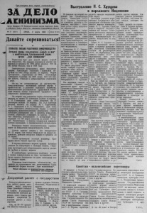 П р о л е т а р и и все х с т р а н , с о е д и н я й т е с ь ! ЗА Д Е Л О ЛЕНИНИЗМА О р г а н С е в е р н о г о Р К К о м м у н и с т и ч е с к о й п а р т и и С о в е т с к о г о С о ю з а и р а й о н н о г о С о в е т а д е п у т а т о в т р у д я щ и х с я Н о в о с и б и р с к о й о б л а с т и № 27 (2371) СРЕДА, 2 марта 1960 Г. Цена 15коп. Давайте соревноваться! ОТКРЫТОЕ ПИСЬМО РАБОТНИКОВ ЖИВОТНОВОДСТВА Остяцкой фермы сельхозартели „Борьба за мир" к животноводам Гражданцевской фермы артели „Заря коммунизма" Радо с тн ым б ы л для нашей фермы первый год семилетки . Н а к а ж д у ю ф у р а ж н у ю к о р о в у мы надоили в среднем по 1984 литра молока. Э т о на 242 литра б о л ьш е , чем в 1958 году. З а м е ч а т е л ь н о по тр уди ли с ь наши передовые доярки . Александра И в а н о в н а Гламаздина п о л у ч и л а по 2341 л и т р у молока от коровы, М а р и я Г р и г о р ь е в н а Х а р и т он о в а— по 2088, А ле кс ан др а Д а вы д о в н а С у р к о в а — по 1922 литра. В о т что з н а ч и т за б о та , старание и добросовестное отношение к д е л у . Н о мы не ус п о к а и в а е м с я на достигнутом. В о о д уш е в л ё н н ы е постоянной заботой партии и пр а ви тел ьства о развитии с е л ь с ко г о хозяйства , вдохновлённые до с ти ж е н и ям и т р у ж е н и к о в Р я з а н ской области, полны стремления т р уд и ть ся ещё энергичнее, плодотворнее. Н а второй год семилетки берём о б я за т ел ь с т в о надоить не менее 22 центнеров молока на к о р о в у , А . И . Гламаздина дала слово п о л у ч и т ь по 27 центнеров молока от коро вы . П о 22,5 центнера решили надоить на к о р о в у М . Г . Харитонова , Н . Г , П л ю ш к и н а и И . А . И в а ш к е в и ч . Д л я того, чтоб ы выпо лн и ть о б я з а т е л ь с т в а , будем в чистоте с о д е р ж а т ь ж и в о т н о в о д ч е с к и е помещения, строго соблюдать распорядок дня и рационы кормления, словом, образцово у х а ж и в а т ь за скотом . О б е с п е чим ж и в о тн ы х минеральной и витаминной под кормкой . О т 100 коров п о л у ч и м не менее 98 т е л я т . П о заб о ти м с я о полном сохранении народивш е г о с я молодняка, о своевременной с л у ч к е коров. Р а з в е р н е м боево е социали сти чес кое соревнование за по вы ш е н и е проду кти вно с ти скота. С е й ч а с к а ж д а я дояр к а у нас о б с л у ж и в а е т 10— 11 коров. К а к т о л ь к о о б о р у д у ю т на ферме а в топоение, доведем н а г р у з к у доярки в среднем до 15 к о р о в . Л е т о м органи зуем зе лен ый конвейер. С к о т будем пасти т о л ь к о к р у г л ы е с у т к и . В период з а го т о в к и к о р м о в примем ак тивное у ч а с т и е на с е н о у б о р к е и з а кл а д к е силоса. П о м о ж е м з а го то в и т ь дл я о бщ е ствен ного ск о та в д о с та т к е г р у б ы х и со ч н ы х кормов . В х л е б о у б о р к у органи зуем под борк у , ч и с т к у и с у ш к у зерноотходов на т о к у , постараемся, ч т о бы не пропал бесполезно ни один ки лограмм э то го ценного корма. П р ини м ая о т в е т с т в е н н ы е о б я з а т е л ь с т в а , в ы зы ваем на соре внование в а с , ж и во тн о в од о в Граж- данцевской фермы ко л х о з а „ З а р я к о м м у н и з м а “ . П и с ь м о о б с у ж д е н о н а п р о и з в о д с т в е н н о м с о в е щ а н и и р а б о т н и к о в ж и в о т н о в о д с т в а . Досрочный р а с ч е т с го с у д а р с т в о м Б о л ь ш у ю р а з ъ я с н и т е л ь н у ю р аб от у среди насел е н и я в е д у т д е п у т а т ы Н ово-Т роиц кого с е л ь с к о го С о в е та . В р е з у л ь т а т е б о л ьш и н с т в о ж и т е л е й дер е в е н ь этого С о в е т а прои з в о д я т досрочный ден е ж н ы й расчет с г о с у дарством. Т а к , на 80— 90 процент ов внесены п л а т е ж и