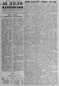 НАВСТРЕЧУ 90-ЛЕТИЮ СО ДНЯ РОЖДЕНИЯ В. И, ЛЕНИНА В д е н Ь — п о 6 н о р м В в е р х п о р е ч к е Т е р м я к — л е в о м у п р и т о к у Т а р т а с е а , в 3 0 к и л о м е т р а х о т К а с м а н к и , ж и в у т и т р у д я т с я л е с о з а г о т о в и т е л и к о л х о з а и м . К р у п с к о й . Л е с о р у б ы п о д р у к о в о д с т в о м б р и г а д и р а Н . Т. П о в е т к и н а з а з и м у с в а л и л и с к о р н я , в ы в е з л и к м е с т а м с п л а в а и у в я з а л и в п л о т ы 1 2 0 0 к у б о м е т р о в х о р о ш е г о с т р о е в о г о л е с а . П р о д о л ж а я л е с о з а г о т о в к и , о н и в м е с т е с т е м у с и л е н н о г о т о в я т с я к т о м у , ч т о б ы с р а з у ж е п о с л е в с к р ы т и я р е к и с п л а в и т ь в е с ь з а г о т о в л е н н ы й л е с н а ц е н т р а л ь н у ю у с а д ь б у к о л х о з а . В с т а в в м е с т е с о в с е м и т р у ж е н и к а м и р а й о н а на л е н и н с к у ю т р у д о в у ю a a x i y , к о л х о з н ы е л е с о р у б ы д о б и в а ю т с я в ы с о к о й п р о и з в о д и т е л ь н о с т и т р у д а . Н а л е с о п о в а л е М . Т . П о в е т к и н , Д . Ф . К р а с н о в , В. Ф. А ф а н а с ь е в , А. Н . Ф ё д о р о в и д р у г и е д о в е л и д н е в н у ю в ы р а б о т к у д о п о л у т о р а - д в у х н о р м . Т р е л ё в щ и к и Н . Н . К о н т а р е в и Н . А . Т у г а н а - ш е в е ж е д н е в н о д а ю т на т р е л ё в к е л е с а п о 5 —6 н о р м : п р и з а д а н и и 4 к у б о м е т р а о н и т р е л ю ю т з а д е н ь п о 21 и б о л е е к у б о м е т р о в . Т р а к т о р и с т ы А . В. К р а с н о в и С . С . Т р и б у н а л о в д н е в н ы е н о р м ы н а в ы в о з к е л е с а в ы п о л н я ю т на 1 5 0 —2 0 0 п р о ц е н т о в , у с п е в а я д е л а т ь з а д е н ь п о 5 — 6 р е й с о в с л е с о с е к и д о р е ч к и , к м е с т а м с п л а в а . З а с л у ж и в а е т х о р о ш е й п о х в а л ы д о б р о с о в е с т н ы й т р у д б р и г а д н о г о п о в а р а И . В. Г о р н о с т а е в а , к о т о р ы й , з а б о т я с ь о т о в а р и щ а х , е ж е д н е в н о п р и г о т о в л я е т д л я н и х в к у с н ы е и п и т а т е л ь н ы е б л ю д а . П. А л е к с е е в , п р е д с е д а т е л ь к о л х о з а им . К р у п с к о й . В с е р о с с и й с к и й с у б б о т н и к В . И. Л е н и н н а В с е р о с с и й с к о м с у б б о т н и к е р а б о т а е т н а п е р е н о с к е д р о в в о д в о р е К р е м л я 1 м а я 192 0 г о д а . А р х и в Н М Л Б Е С Е Д А О Л Е НИ Н Е З р и т е л ь н ы й з а л с е л ь с к о г о к л у б а б ы л п е р е п о л н е н . С ю д а с о б р а л и с ь ж и т е л и с е л а Ч е б а к и н а б е с е д у о Л е н и н е и п о с м о т р е т ь к о н ц е р т . З а в е д у ю щ а я н а ч а л ь н о й ш к о л ы Н и н а И в а н о в н а И в а ш к е в и ч п р о в е л а б е с е д у н а т е м у : „ 9 0 - л е т и е с о д н я р о ж д е н и я В. И . Л е н и н а " . П о с л е б е с е д ы с и л а м и к о л л е к т и в а х у д о ж е с т в е н н о й с а м о д е я т е л ь н о с т и б ы л п о с т а в л е н к о н ц е р т . В п о с т а н о в к е С о в е т с к о е с т р о и т е л ь с т в о В ы е з д н о е з а с е д а н и е исп олк ом а Н а д н я х Ф е д о р о в с к и й и с п о л к о м с е л ь с к о г о С о в е т а п р о в е л в Н о в о - Е л и з а р о в о в ы е з д н о е з а с е д а н и е . Р а с с м о т р е н в о п р о с о з а в е р ш е н и и з и м о в к и о б щ е с т в е н н о г о ж и в о т н о в о д с т в а в L i ie c T t й б р и г а д е к о л х о з а и м . М . Г о р ь к о г о . П р и с у т с т в о в а л и п о ч т и в : е к о л х о з н и к и э г о й б р и г а д ы . Б р и г а д и р п о л е в о д ч е с к о й б р и г а д ы т. З у б о в с о о б щ и л и с п о л к о м у , ч т о в н а ч а л е з и м о в к и к о р м о в в б р и г а д е б ы л о в п о л н е д о с т а т о ч н о д о м а я . Н о р а с п р е д е л я л и с ь о н и б ы в ш и м б р и г а д и р о м М . С к о - р о б о г а т о в ы м б е з у ч е т а к о р м о в о г о б а л а н с а . В р а ц и о н н е в к л ю ч а л а с ь с о л о м а , с е н о с к 