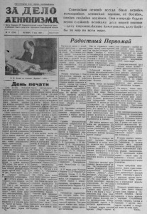 ЗА ЛЕНИНИЗМА. | О р г а н С е в е р н о г о Р К К о м м у н и с т и ч е с к о й п а р т и и С о в е т с к о г о C o t o s a . и р а й о н н о г о С о в е т а д е п у т а т о в т р у д я щ и х с я Н о в о с и б и р с к о й о б л а с т и № 5 4 ( 2 3 9 8 ) ЧЕТВЕРГ, 5 мая| i 9 6 0 Г. Ц е н а 15 к о п . С о в е т с к а я п е ч а т Ь в с е г д а бЫла вернЫм помощником ленинской п а р т и и , е ё б о е в Ь т , самЫм силЬнЫм оруЖием. Она и впредЬ б у д е т в е рно слуЯситЬ в е л икому д е л у нашей п а р т и и —д е лу с т р о и т е л ь с т в а к о м м у н и з м а , д е лу борЬ- бы з а мир во в с ё м мире. Радостный Перво м ай В. И. Ленин з а чте ние м „ Пр а в д ы" . 1918 г. — * * - (ень печати Д е н ь п е ч а т и — б о л ь ш о й п р а з д н и к м н о г о т ы с я ч н о й а р м и и ж у р н а л и с т о в и р а б с е л ь к о р о в , п р а з д н и к с о в е т с к о г о н а р о д а . С о в е т с к а я п е ч а т ь в с е г д а б ы л а в е р н ы м п о м о щ н и к о м н а ш е й п а р т и и . Э т о с а м о е с и л ь н о е о р у ж и е , п р и п о м о щ и к о т о р о г о К о м м у н и с т и ч е с к а я п а р т и я г о в о р и т с н а р о д о м н а н у ж н о м е й я з ы к е . Н а ш и с о в е т с к и е г а з е т ы и ж у р н а л ы я в л я ю т с я п р о д о л ж а т е л я м и с л а в н ы х т р а д и ц и й б о л ь ш е в и с т с к о й „ И с к р ы " и „ П р а в д ы " , с о з д а т е л е м и н а с т а в н и к о м к о т о р ы х б ы л В. И . Л е н и н . И с к л ю ч и т е л ь н о в е л и к а р о л ь б о л ь ш е в и с т с к о й п е ч а т и б ы л а в п е р в о й р у с с к о й р е в о л ю ц и и , в г о д ы с т о л ы п и н с к о й р е а к ц и и и н о в о г о п о д ъ е м а р е в о л ю ц и о н н о г о д в и ж е н и я . Н е о ц е н и м ы е е з а с л у г и на в с е х э т а п а х с о ц и а л и с т и ч е с к о г о с т р о и т е л ь с т в а . Н а ш а с о в е т с к а я п е ч а т ь я в л я е т с я в с е н а р о д н о й т р и б у н о й д л я о б с у ж д е н и я в а ж н е й ш и х г о с у д а р с т в е н н ы х , х о з я й с т в е н н ы х и к у л ь т у р н ы х в о п р о с о в . З а г о д ы с о в е т с к о й в л а с т и о н а н е и з м е р и м о в ы р о с л а . В н а с т о я щ е е в р е м я в с т р а н е в ы х о д и т 7 6 8 6 г а з е т . Э т о п о ч т и в 10 р а з б о л ь ш е , ч е м д о р е в о л ю ц и и . О б щ и й р а з о в ы й т и р а ж в ы р о с п р о т и в 1 9 1 3 г о д а в 2 0 р а з . Т и р а ж о д н о й т о л ь к о „ П р а в д ы " с о с т а в л я е т 6 м и л л и о н о в э к з е м п л я р о в . .. ф с т п е ч а т и м о ж н о ' п о д т в е р д и т ь и н а п р и м е р е н а ш е й о б л а с т и . Н а к а н у н е 191 7 г о д а у н а с в ы х о д и л о т о л ь к о д в е г а з е т ы н е б о л ь ш и м т и р а ж о м . С е й ч а с в ы х о д и т 7 г а з е т , б о л е е д в а д ц а т и м н о г о т и р а ж н ы х , ж у р н а л ы , и з г о д а в г о д у в е л и ч и в а е т с я п р о д у к ц и я к н и ж н о г о и з д а т е л ь с т в а . Г а з е т ы и з д а ю т с я и в к а ж д о м р а й о н е . Р а с т е т и х т и р а ж . О б л а с т н а я г а з е т а „ С о в е т с к а я С и б и р ь " и м е е т т и р а ж 1 3 0 j т ы с я ч э к з е м п л я р о в . Д о п о л у т о р а т ы с я ч э к з е м п л я р о в в о з р о с т и р а ж н а ш е й р а й о н н о й г а з е т ы „ З а д е л о л е н и н и з м а " . С к а ж д ы м г о д о м р а с ш и р я е т с я е е с е л ь - к о р с к и й а к т и в , у в е л и ч и в а е т с я п р и т о к п и с е м . Е с л и в 1 9 5 9 г о д у в р а б о т е г а з е т ы п р и н и м а л о у ч а с т и е 4 3 7 с е л ь к о р о в и п о с т у п и л о 1 8 0 0 п и с е м , т о т о л ь к о з а 4 м е с я ц а э т о г о г о д а в с п и с к а х с е л ь к о р о в 2 5 7 ч е л о в е к и п о с т у п и л о у ж е 6 0 0 п и с е м . Г а з е т а с т а л а п о л н е е и в с е с т о р о н н е о с в е щ а т ь ж и з н ь р а й о н а , п о д д е р ж и в а т ь ц е н н ы е н а ч и н а н и я т р у ж е н и к о в , о с в е щ а т ь в о п р о с ы с о ц и а л и с т и ч е с к о г о с о р е в н о в а н и я , о п ы т п е р е д о в и к о в . В д е н ь п 
