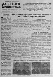 П р о л е т а р и и в с е х с т р а н , с о е д и н я й т е с ь ! Д Е Л О ЛЕНИНИЗМА. О р г а н С е в е р н о г о Р К К о м м у н и с т и ч е с к о й п а р т и и С о в е т с к о г о С о ю з а и р а й о н н о г о С о в е т а д е п у т а т о в т р у д я щ и х с я Н о в о с и б и р с к о й о б л а с т и № 58 (2402) ПЯТНИЦА, 13 Маи 1960 г. Цена 15коп. Трудящиеся Советского Союза! Выполним и перевыполним семилетний план! Добьемся нового мощного подъема экономики, ку л ь т у р ы и благосостояния народов нашей страны, дальнейшего укрепления могущества социалистической Родины! Вперед, к новым победам в коммунистическом строительстве! Из Призывов ЦК КПСС к 1 Мая 1960 года О зеленим наши с ё л а ^ ^ ^ . х о р о ш е й инициативой « Т у п и л и т р у ж е и и к и Чистоозерного района и коллектив завода „Сибсель- м аш “ — решили заложить аллеи Ильича, озеленить сёла, территорию завода. Они обратились с таким призывом к трудящимся всей области. Инициатива эта поддержана во всех районах, в том числе и трудящимися нашего района. Коллективы предприятий и учреждений взяли конкретные обязательства по посадке деревьев. Т ак , коллектив конторы коммунальных предприятий решил посадить не менее 1000 деревьев, отдела к у л ь т у р ы —600, районной больницы—300, райпотребсоюза и Северного сельпо— 600 деревьев. П о 100—150 деревьев посадят работники маслозавода, конторы связи, заготскот, ветучас тка и т.д. Только в районном центре этой весной и осенью долж но быть посажено 5 тысяч деревьев. Хорошее стремление. И надо, чтобы это стремление у ж е осуществлялось, а мы пока ведем только разговоры. Нигде не начата работа. А время у х о дит. В с я работа должна быть проведена в течение декады— до 20 мая. Посадочного материала в районе больше, чем достаточно. Необходимы только организация и конкретное р уководство. Коллективам учреждений., которые принимали участие в прошлом году в посадках и огораживании посадок по улице Сталина, надо позаботиться об очистке этих сквериков, подправить изгороди, заменить непри- ж и в ш и е с я и поломанные деревца. Многие трудящиеся в с т у пили сейчас в соревнование за >асоту своего города и сеЩ^ Надо в клю читься в это благородное дело и нам, северянам. У нас есть силы и возможности для того, чтобы своевременно выполнить свои обязательства по озеленению своих сёл. Сибирская красавица б е рёза, стройный тополь, ароматная черемуха, нежная рябина должны ш ум е т ь листвой против каждого дома, во всех сёлах н аш е го района. Не пожалеем д л ^ т о г о си л . " ' Превратим наши сфла в зелёный сад. П у с т ь в с ю д у р а б о т а к и п и т не с т о п н а я , н а с т у п и л а с т р а д а б о е в а я п 4 5 г е к т а р о в з а д е н Ь М е х а н и з а т о р ы и к о л х о з н и к и н а ш е й а р т е л и н а п р а в л я ю т все у с и л и я к т о м у , ч т о б ы б ы с т р е е с п р а в и т ь с я с с е в о м о с н о в н о й п р о д о в о л ь с т в е н н о й к у л ь т у р ы п ш е н и ц ы . М е ж д у п о с е в н ы м и а г р е г а т а м и и д ё т у п о р н а я б о р ь б а з а п е р в е н с т в о . В п е р в ы е ж е д н и с е в а о т л и ч и л с я т р а к т о р и с т А н а т о л и й Д м и т р и е в и ч К у п - р и с о в и с е я л ь щ и к и б р а т ь я А л е к с а н д р и Б о р и с К а л и н и н ы . П р и з а д а н и и 3 6 г е к т а р о в о н и п о с е я л и з а д е н ь с ц е п о м д в у х с е я л о к 4 5 г е к т а р о в п ш е н и ц ы . Э т о о т л и ч н ы й п о к а з а т е л ь . Е с л и т а к у ю в ы р а б о т к у б у д у т д а в а т ь н а с е в е и д р у г и е , т о с п о с т а в л е н н о й з а д а ч е й м ы с м о ж е м с п р а в и т 