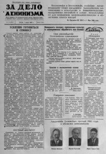 П р о л е т а р и и в с е х ст р а н , со единяйтесь! ЗА Д Е Л О Л ЕНИНИ ЗМ А О р га н С е в е р н о г о Р К К о л ш у н н с т и ч е в к с й п а р т и и С о в е т с к о г о С о ю з а и р а й о нн о го С о в е т а д е п у т а т о в т р у д я щ и х с я Н о в о с и б и р с к о й о б л а с т и № 66 (2410) СРЕДА, 1 июня 1960 г. Цена 15 к о п . К о л х о з н и к и и колх о зницы , с е л Ь с к и е меха^ н и з а т о р Ы ! Ш и р е в н е д р я й т е к о м п л е к с н у ю м е ханизац ию в зем лед елии и Ж и в о т н о в о д с т в е , о в л а д е в а й т е т е х н и к о й и л у ч ш е и с п о л Ь з у й т е е ё для п о в ы ш е н и я п р о и з в о д и т е л ь н о с т и и об легчения с в о е г о т р у д а ! Из Призывов ЦК КПСС к 1 Мая 1960 года УСИЛЕННО ГОТОВИТЬСЯ К СЕНОКОСУ О с т а е тс я немного в р е м е ни до н а ч а л у с е н о кош ен и я % i за кладки силоса для о б щ е ственного ж и в о тн о в од ства колхозов . Обили е в л а ги, свое вр ем енны е весенние дожди создают все у с л о в и я для х о р о ш е г о травостоя в этом году. Кормодобывание — в а ж н е й ш а я с е л ь с к о х о з я й ст венна я кампания. О г в с е сторонней подготовки к ней и организованного провед е ния зависи т даль нейш е е развитие ж ивотноводства , п о выш е ние его п р о д у к т и в ности. Предстоит выполн и ть б о л ьш о й о бъем работ. Д о ста точно с к а за т ь , что к о л хозы д о л ж н ы за го то ви т ь 216 т ы с я ч центнеров сена, 483 т ы с я ч и центнеров силоса. Е с т ь все в о зм ож но сти у с п еш н о р еш и т ь э т у задачу . К о л х о з ы района достаточно оснащены сеноуборочной техникой. Н а их в о о р у ж е нии о ко л о ста т р а к торо в и более 150 сенокосилок , дос та точно конных и т р а к то р ных граблей. В б л и ж а й ш и е дни для продажи колхозам д о л ж н ы п о с т у п и т ь силосоу б о р о ч н ы е комбайны. Н е о т кл а д ы в а т ь на позднее врем я работы, с в я з а н ные с своевременной з а кладкой силоса и се н о ко ш ени ем . Э т о б уд е т залогом полного о бе сп е че н и я скота кормами. Надо с е й ч а с в к а ж д о м ко л хо зе р а з в е р н у т ь работы по р ем он ту се но у б о р о ч н о й техники , п о с та в и т ь на это дело опы тных механизаторов и ко л х о зн ы х к у з н е ц о в . П р а в и л ь н о п о с т у паю т р у ко вод и тел и к о л х о за „ П а м я т ь К и р о в а " (предсе д а тел ь т. Ч у р к и н . ) Там почти в с е т р ак торны е с е н о к о с и л к и отремонтированы . К р о м е того, с е л ь х о з а р те л ь дополнительно приобрела н о в у ю с е н о у б о р о ч н у ю т е х н и к у . К у п и л и н о в у ю сено у б о р о ч н у ю т е х н и к у т а к ж е к о л х о з ы „ З а в е т ы И л ь и ч а " , им. К р у п с к о й , „7 й с ъ е зд С о в е т о в * и „ Б о р ь б а з а мир". О д нако с л е д у е т отметить, ч то бол ьш и н с гао к о л х о з о в н е уд о в л е т в о р и тел ь н о в ед у т работы по подготовке к кормодсбы ванию . П л о х о организован ремонт т р а к то р ных и конных сенокосилок, не г о т о в я т к за кла д к е силоса траншеи, не начата работа по созданию з в е н ь е в и брггад. Б о л ьш ой объем работ па косовице в ряде х о з яй ст в придется вы п о л н я т ь в р у ч н у ю . П о э то м у с л е д у е т заблаговременно подг о тови ть в е с ь р у ч н о й и н вентарь: ко сы , грабли, в и л ы . Потребкооперация долж н а по лно стью о б е с п е ч и т ь запросы ко л х о з о в в этом инвентаре. В кажд ом ко л х о з е надо ор гани зовать работу на з а го тов к ах корм о в та к , чтобы у м е л о с о ч е т а т ь и и с п о л ь зо в а т ь все имеющиеся средства , всю т е х н и к у и до би т ь с я т а к о г о п о л ож е н и я , ч т о бы корма немедленно вы в о зил и сь к местам зим овки с к о т а . Н а подвозке надо и с п о