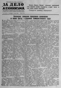 П р о л е т а р и и в с е х ст р а н , со е д и н я й т е с ь 1 З А Д Е Л О ЛЕНИНИЗМА О р г а н С е в е р н о г о Р К К о м м у н и с т и ч е с к о й п а р т и и С о в е т с к о г о С о ю з а и р а й о н н о г о С о в е т а д е п у т а т о в т р у д я щ и х с я Н о в о с и б и р с к о й о б л а с т и К о л х о з „ П а м я т ь Л е н и н а " выполнил пол у го д ов о й п л а н п р о д а ж и м о л о к а г о с у д а р с т в у и в е д е т с д а ч у в с ч е т п л а н а второго п о л у год и я . С л е д у й т е п р и м е р у п е р е д о в ы х ! № 67 (2411) П Я Т Н И Ц А , 3 июня 1960 г. Цена 15 коп. мая в 'Большом Кремлевском дворце продолжило свою «■работу Всесоюзное совещание передовиков соревнования за звание бригад и ударников ко мм у нистического труда. Бурными аплодисментами встретили собравшиеся Т т о варищей А .Б . Аристова,Л.И. Брежнева, Н. Г . Игнатова, Ф . Р . Козлова, О .В . К у у с и нена, Д . С. Полянского, М . А . Суслова, Е . А . Фур- цеву, Н. С. Хрущева, Н .М . Шверника, Г1. И. По с п е лова. На утреннем * заседании прения по докладу председателя В Ц С П С В. В. Гришина начались выступлением первого секретаря Ц К В Л К С М С . П. Павлова. — Приветствие]^ ’ п а р т и и - это программа дальнейшего развития замечательного движения за “ коммунистическое отношение к труду, — говорит тов. £Павлов. — Оно вдохновляет советских людей на новые победы и успехи. И каждый борец за коммунистический труд говорит сейчас: „М ы j слышим, партия, твое призывное слово! Мы идем и придем к победе коммунистического труд а !1*. Оратор подчеркивает, что нашему поколению выпало особенное счастье: мы ж и вем и работаем в такое время, когда коммунизм стал практической задачей повседневной жизни и борьбы. Под горячие аплодисменты собравшихся тов. П а в лов говорит, что всеми победами наш народ обязан Коммунистической партии, её Центральному Комитету, который возглавляет выдающийся ленинец, борец за коммунизм, за мир во всем мире Никита Сергеевич Хр ущ е в . В Никите Сергеевиче замечательно воплотились л у чш и е черты нашего народа-7- преданность ■йлу коммунизма, государственная мудрость и простота. Н аш народ единодушно называет Н и ки ту Сергеевича Х р ущ е в а первым ударником коммунистиче ского труда. Затем с речами выс тупи ли мастер рудообоготитель- ной фабрики Магнитогорского металлургического комбината Н. И вано в , прядильщица Купавинской тонкосуконной фабрики М о сковской области Н. И. ф > ж н е в а , Герой Социалистического Труда, знатный Всеозюнео совещание передовиков соернв оавния за звнаиебригад и ударников коммунистического труда горняк Донбасса Н. Мамай и другие. После перерыва, председательствующий председа* тель В Ц С П С В. В. Гришин предоставляет слово Перво му секретарю Центрального Комитета К П С С , Председателю Совета Министров С С С Р тов. Никите Сергеевичу Х р ущ е в у . Когда ш у м оваций стих, товарищ Х р у щ е в начинает с вою речь. Она в ы с л у ш и вается с огромным вн и м а нием. Товарищ М. С. Хр ущ е в приветствует участников Всесоюзного совещания передовиков соревнования бригад и ударников комм у нистического труда от имени Центрального Комитета Коммунистической партии Советского Союза и Советского правительства и ж е лает им, а в их лице всей многомиллионной армии передовиков промышленности, строительства, транспорта, сельского хозяйства дальнейших успехов в т р у де на благо советской Р о дины, во имя построения коммунизма. Ударников и бригады коммунистическ