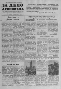 П р о л е т а р и и , в с е х с т р а н , с о е д и н я й т е с ь.> ЗА Д Е Л О ЛЕНИНИЗМ А О р г а н С е в е р н о г о Р К К о м м у н и с т и ч е с к о й п а р т и и С о в е т с к о г о С о ю з а и р а й о н н о г о С о в е т а д е п у т а т о в т р у д я щ и х с я Н о в с с и б и р с к о й о б л а с т и № 70 (2114) ПЯТНИЦА, 10 июня 1960 г . К о л х о з н и к и и к о л х о з н и ц ы , р а б о т н и к и с о в х о з о в и с п е циа ли сты с е л ь с к о г о х о з я й с т в а ! Сме л е е в н е д р я й т е в с е л ь с к о х о з я й с т в е н н о е п р о и з в о д с т в о д о ст иж е ни я н а у к и и т е х н и к и ! Н а ст ойчи в о д о би в айте с ь с ниже ния с е б е ст о и м о с т и п р о д у к ц и и ! Из Призывов Ц К КПСС к 1 Мая 1960 года Ц е н а 15 к о п . П о п о л н я т ь фермы с к о т о м В о б я з а т е л ь с т в а х т р у д я щ и х с я района на 1960 г о д — в т о р о й г о д с е м и л е т к и — за- п и с а н о : у в е л и ч и т ь п о г о л о в ь е к р у п н о г о р о г а т о г о с к о т а на 26 п р о ц е н т о в , в т о м чи с л е к о р о в — на 19 п р о ц е н т о в . У в е л и ч и т ь п о г о л о в ь е д р у г и х в и д о в с к о т а на 4 0 — 50 с л и ш н и м п р о ц е н т о в . Э т о п о з в о л и т в п о л т о р а — два раза б о л ь ш е п р о ш л о г о д н е г о п р о да ть г о с у д а р с т в у п р о д у к т о в ж и в о т н о в о д с т а . О б я з а т е л ь с т в а р е а л ьн ы . О н и р а з р а б а т ы в а л и с ь с у ч е том и м е ю щ и х с я в о з м о ж н о с т е й и р е з е р в о в в к о л х о з а х . О д н и м из в а ж н ы х р е з е р в о в п о п о л н е н и я ж и в о т н о в о д ч е с к и х ферм я в л я е т с я з а к у п с к о т а у н а с е л е н и я . В п р о ш л о м г о д у в э т о м н а п р а в л е н и и х о р о ш о п о р а б о т а л и к о л х о з ы им. К р у п с к о й , „ З а р я к о м м у н и з м а " и д р у г и е , п о т о м у и с у м е л и о н и в п е р в о м к в а р т а л е н ы н е ш н е г о г о д а п е р е в ы п о л н и т ь сво и о б я з а т е л ь с т в а п о п р о д а ж е г о с у д а р с т * ' ' Ус. В Э ТО М Г О Д У К С . . . . о З Ы ж е н а м е ч а л и з а к у п и т ь у н а с е л е н и я б о л е е т р е х т ы с я ч г о л о в к р у п н о г о р о г а т о г о с к о т а . И н а д о п р я м о с к а з а т ь , ч т о с п р о в е д е н и е м э т о й в а ж н о й р а б о т ы д е л о о б с т о и т не со в се м б л а г о п о л у ч н о . Н а 50 п р о ц е н т о в в ы п о л н и л и с в о и п л а н ы по з а к у п у к о л х о з ы „ П а м я т ь Л е н и н а " и „ Б о р ь б а з а м и р “ . П е р в ы й з а к у п и л и п о с т а в и л на ф е р м у 65 т е л я т , в т о р о й ж е и з 164 г о л о в на ф е р м у п о с т а в и л в с е г о л и ш ь 35. Б о л е е чем п о 3 0 0 т е л я т н е о б х о д и м о з а к у п и т ь к о л - Н А В С ТР ЕЧ У ПЛЕНУМУ ЦК К П С С ★ ★ х о з а м „ П у т ь к к о м м у н и з м у " , „ З а в е т ы И л ь и ч а " , им. К р у п с к о й . О ф о р м и л и ж е д о г о в о р ы на 7 0 —80 г о л о в , а на ф е р м а х т о л ь к о п о л о вина из з а к у п л е н н ы х . Д а л е к и о т в ы п о л н е н и я пл ана з а к у п а к о л х о з ы им. К а л и н и н а , „ П у т ь С т а л и н а " . Х о р о ш о вели э т у р а б о т у с на чала г о д а в к о л х о з е „ П а м я т ь К и р о в а " и „ Н о в а я ж и з н ь " , а п о т о м п о ч е м у - т о р у к о в о д и т е л и п р е д а л и з а б в е н и ю с т о л ь в а ж н о е дело . П о с о с т о я н и ю на 5 и ю н я к о л х о з а м и рай о н а з а к у п л е но т о л ь к о 977 т е л я т — 30 п р о ц е н т о в к п л а н у . С т а к и м п о л о ж е н и е м м и р и т ь с я н е л ь з я . З а к у п с к о т а — р е з е р в в в ы п о л н е н и и плана п о г о л о в ь я , в в ы п о л н е н и и о б я з а т е л ь с т в п о п р о д а ж е г о с у д а р с т в у п р о д у к т о в ж и в о т н о в о д с т в а . Э т у и с т и н у не с л е д у е т з а б ы в а т ь п р а в л е ниям к о л х о з о в и п р е д с е д а т е л я м с е л ь с к и х С о в е т о в , к о т о р ы е т а к ж е о б я з а н ы о к 